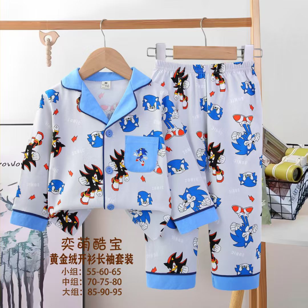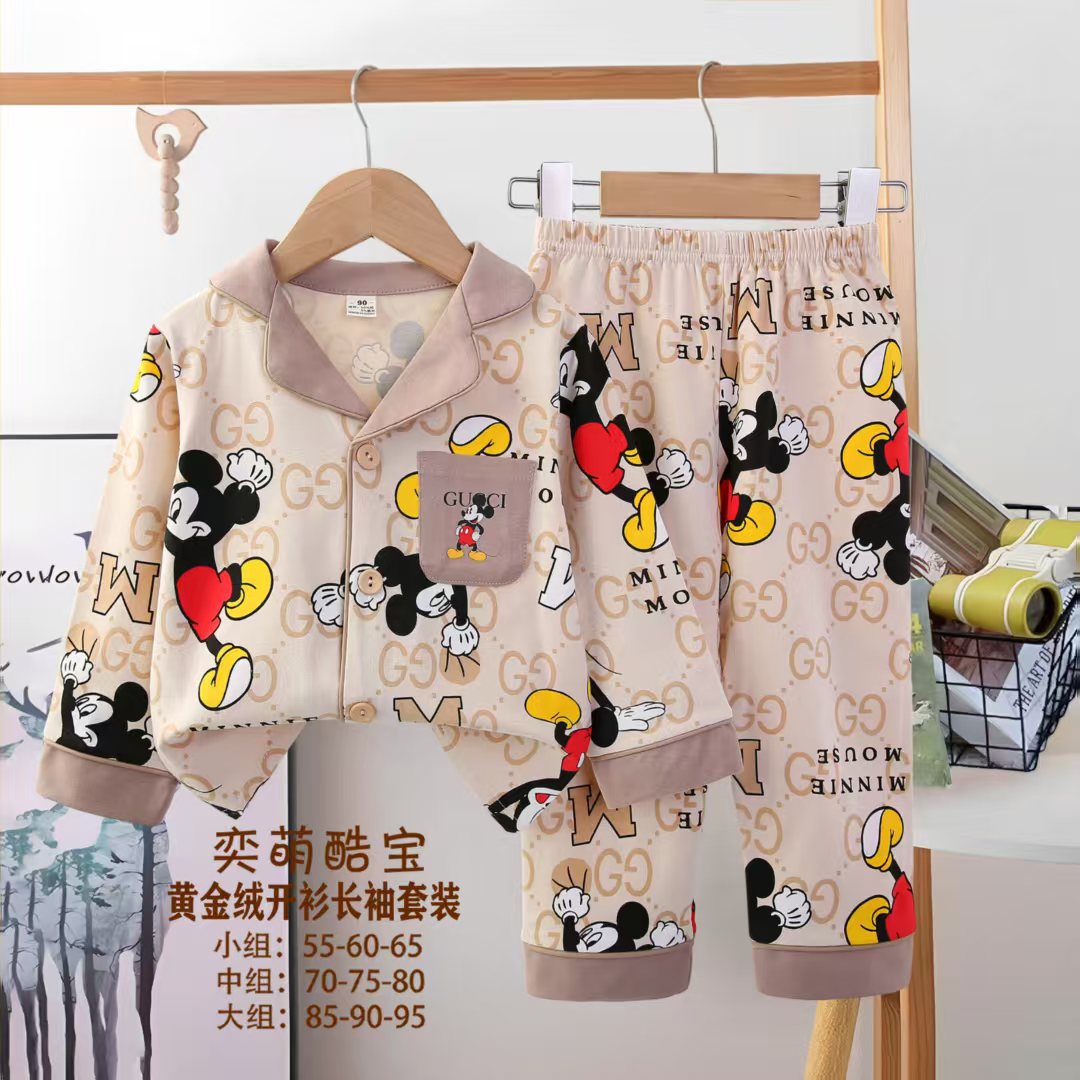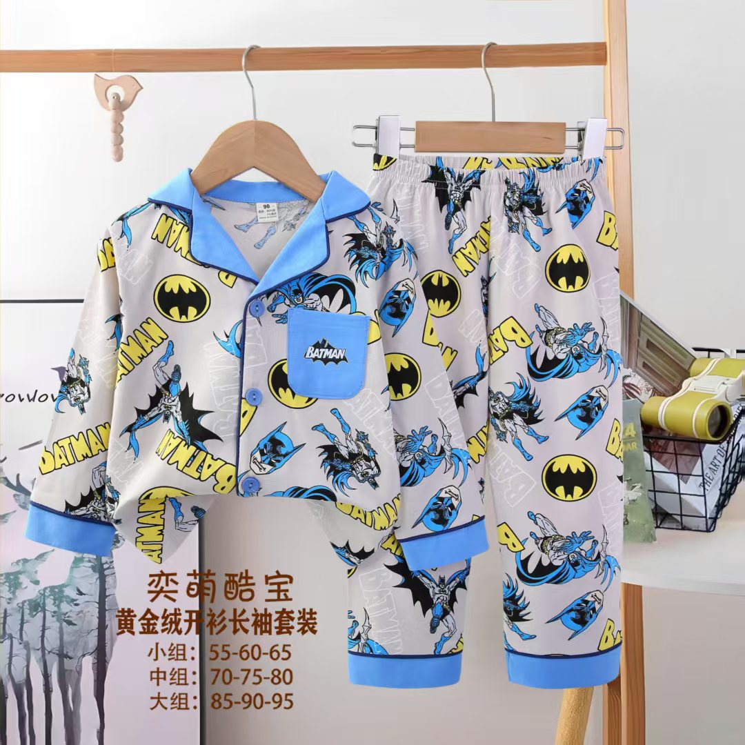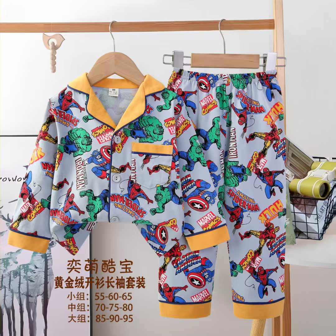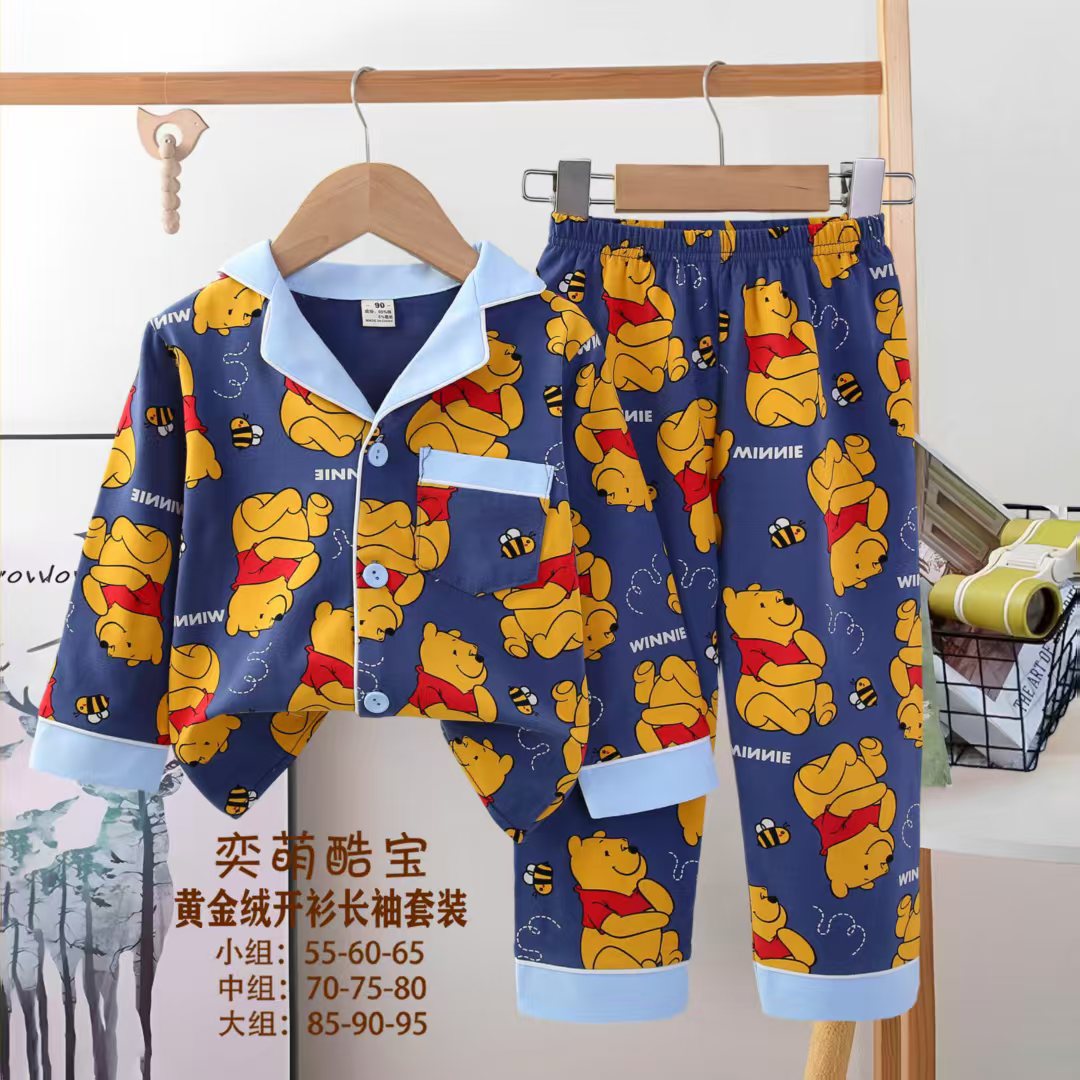 2025 아동 의류 아동 잠옷 가을 오픈 버튼 긴팔 바지 소년과 소녀 가정 의류 세트 공장 직접 공급스토어 가기