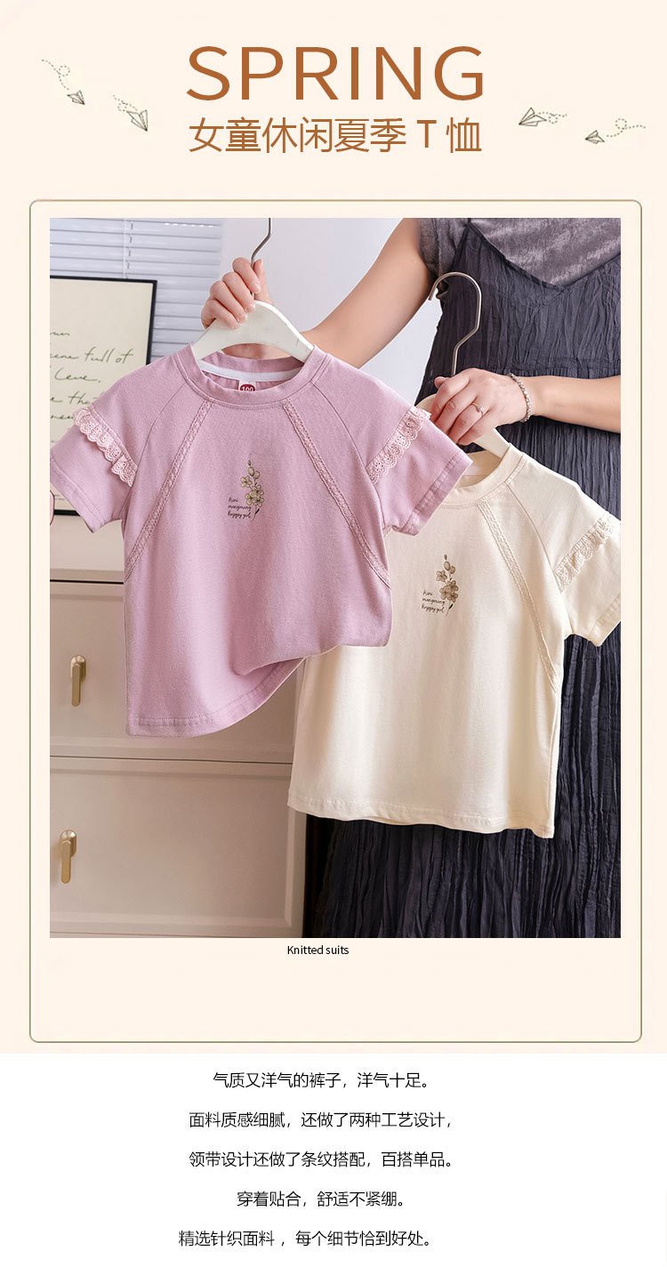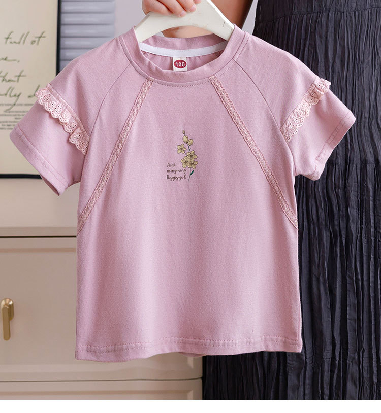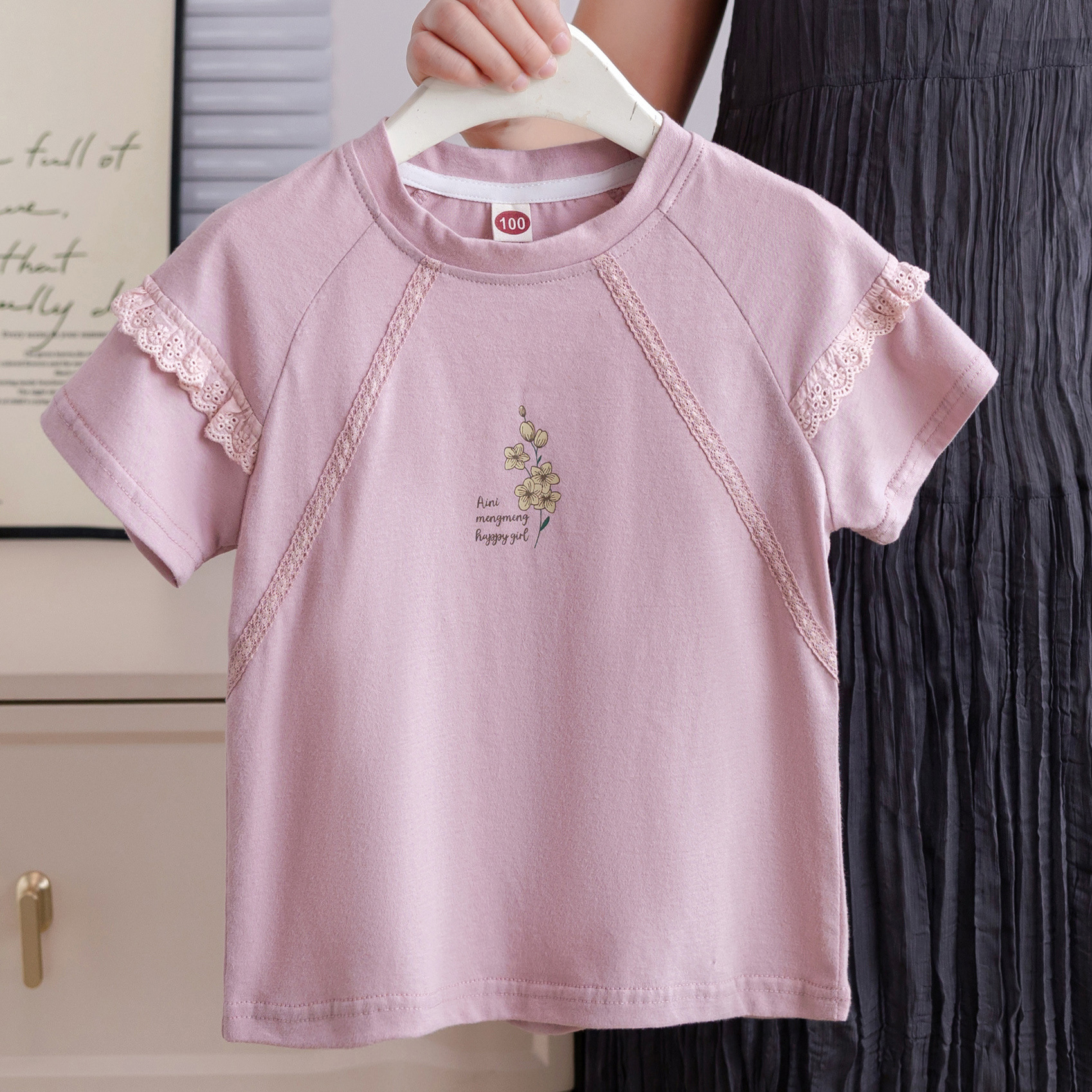 여아 여름 반팔 티셔츠 2026 신상 아동용 한국 스타일 상의 루즈핏 얇은 스타일 중대형 아동복 여아 의류