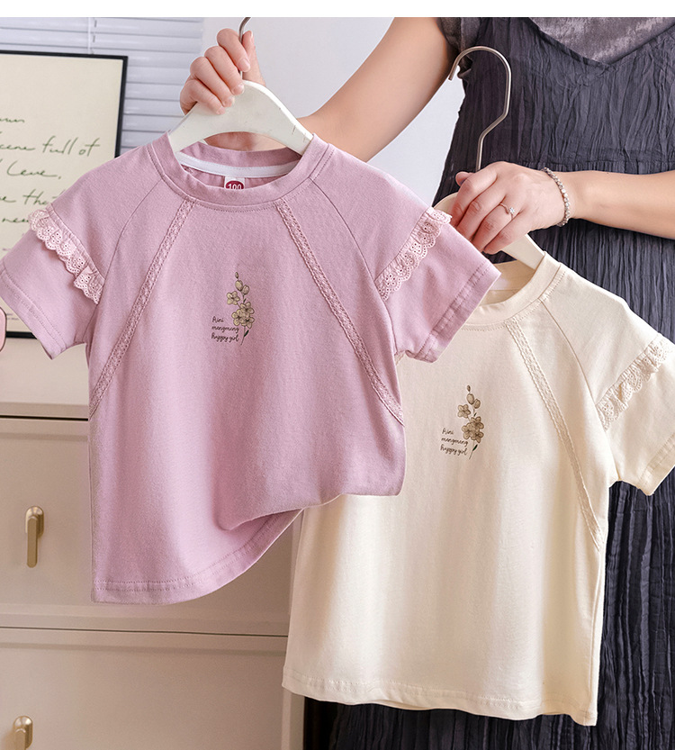 여아 여름 반팔 티셔츠 2026 신상 아동용 한국 스타일 상의 루즈핏 얇은 스타일 중대형 아동복 여아 의류스토어 가기
