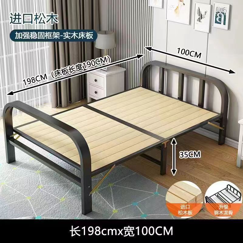 단단한 나무 싱글 접이식 침대 가정용 간단한 사무실 점심 시간 낮잠 침대 임대실 휴대용 다기능 철제 침대