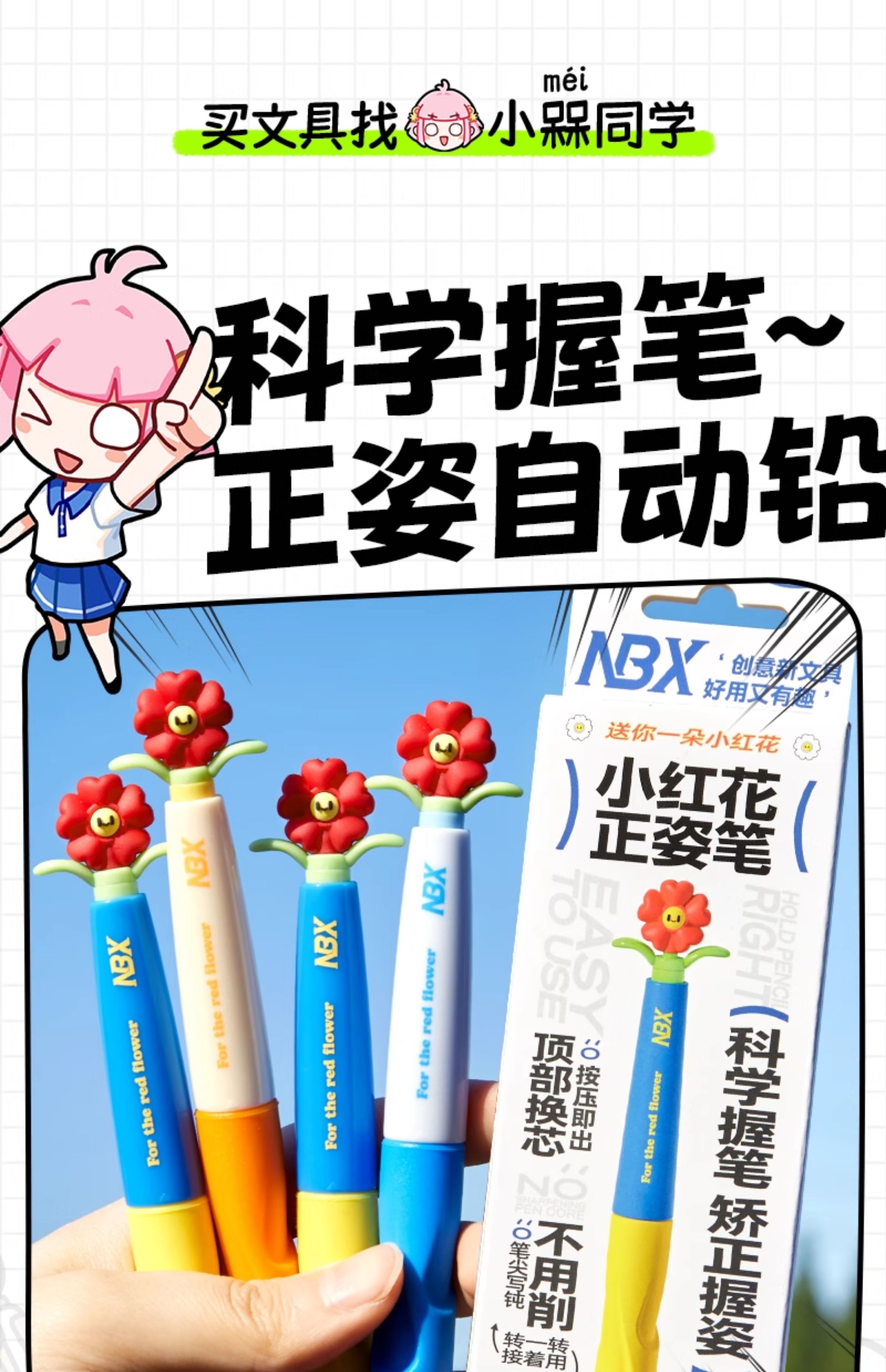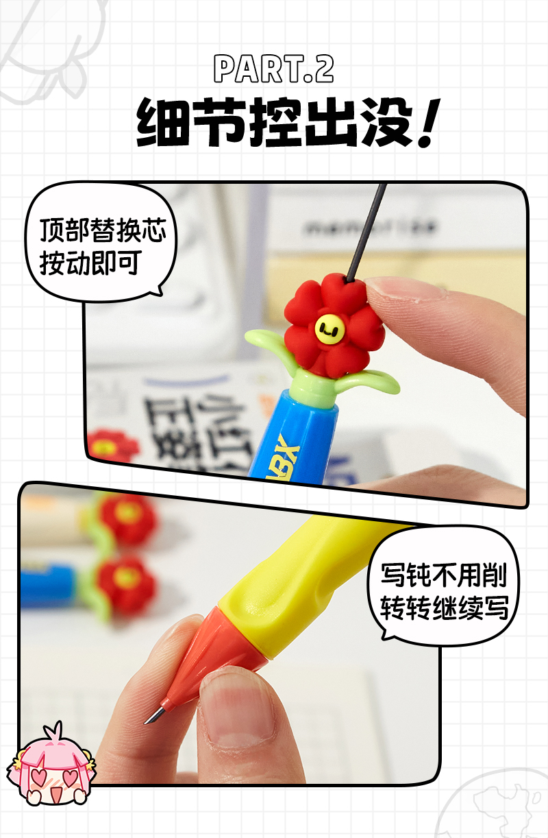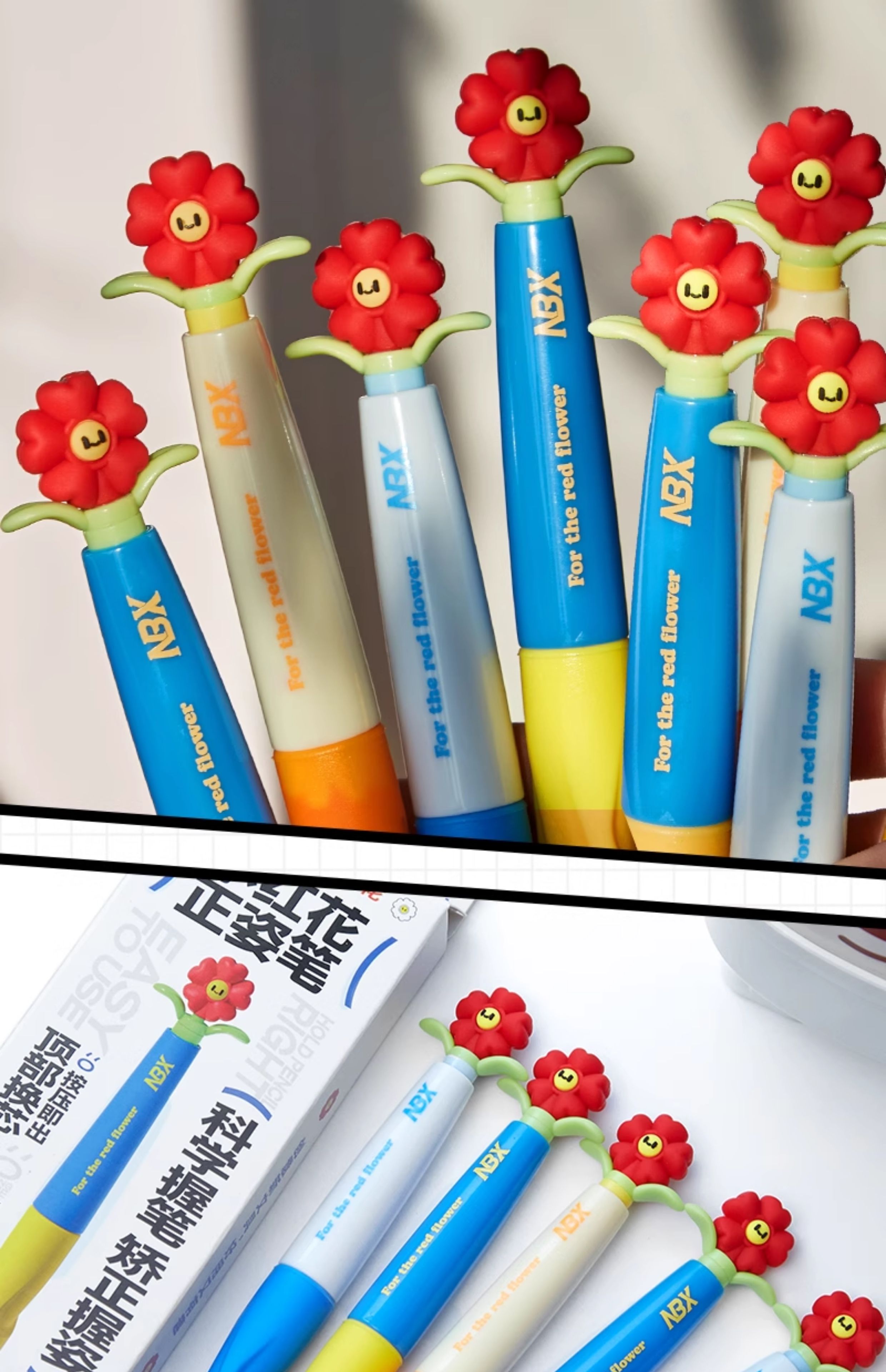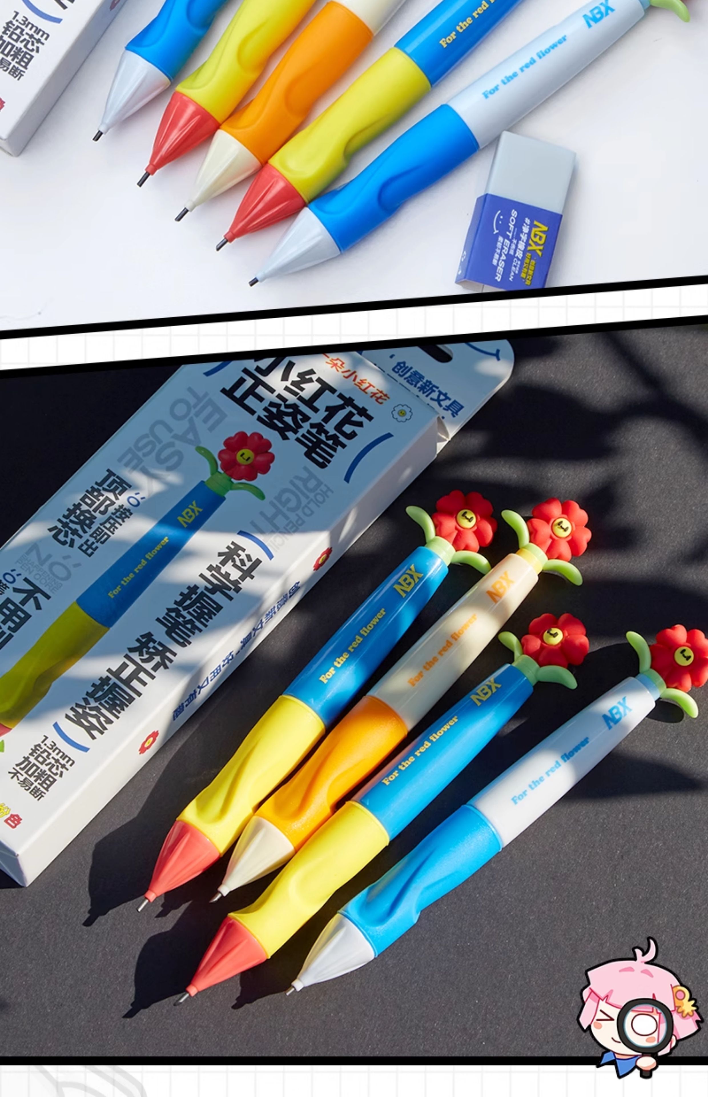 • [업그레이드된 리필, 깨지기 쉽지 않음] 작은 빨간 꽃 Zhengzi 펜 - 다채로운 색상 + 2B 교체 코어 + 지우개