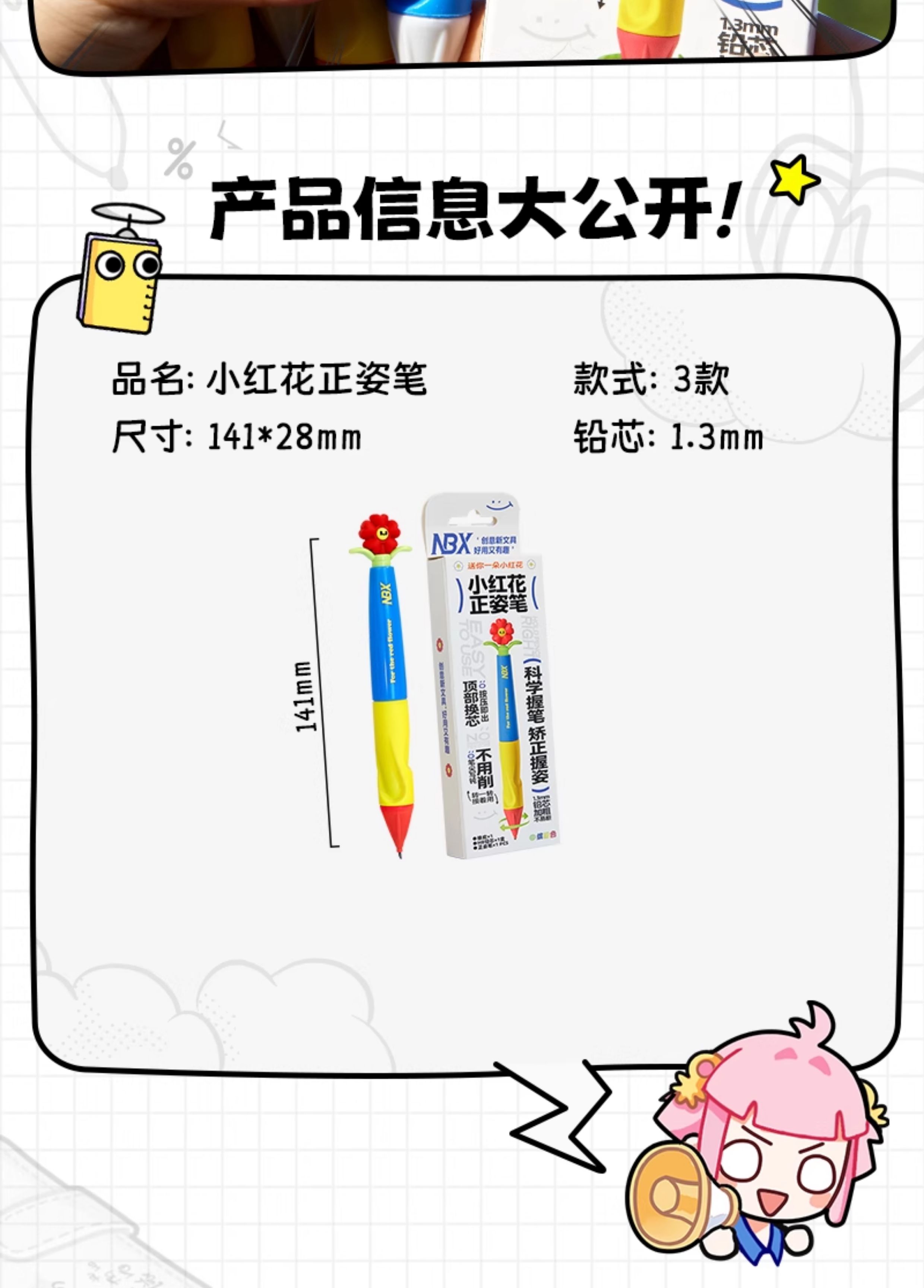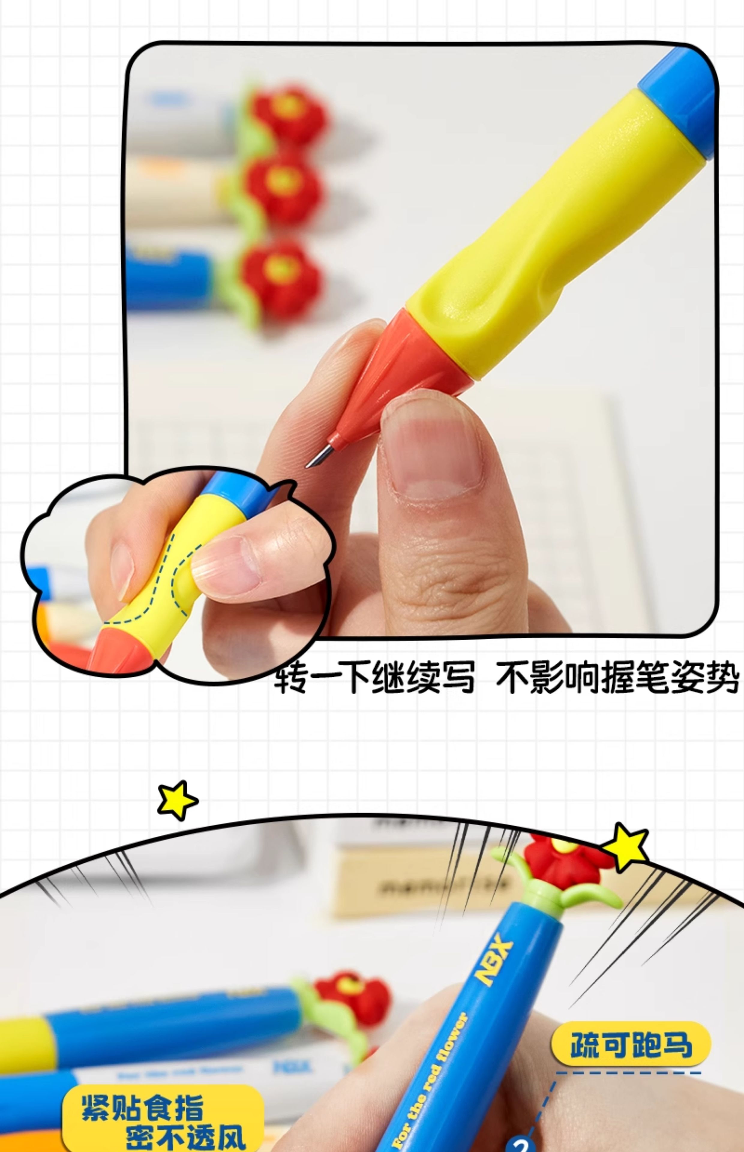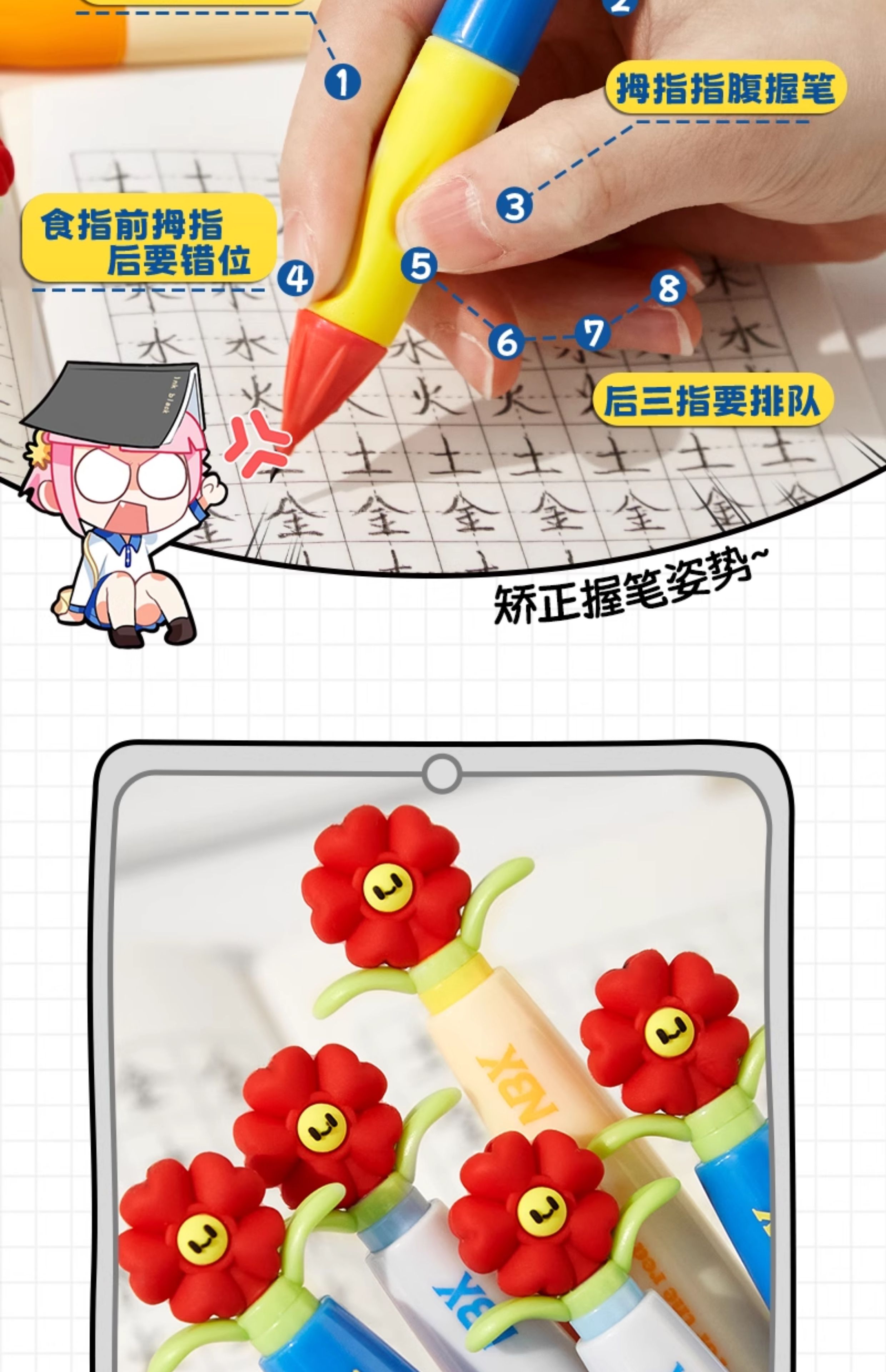 • [업그레이드된 리필, 깨지기 쉽지 않음] 작은 빨간 꽃 Zhengzi 펜 - 다채로운 색상 + 2B 교체 코어 + 지우개