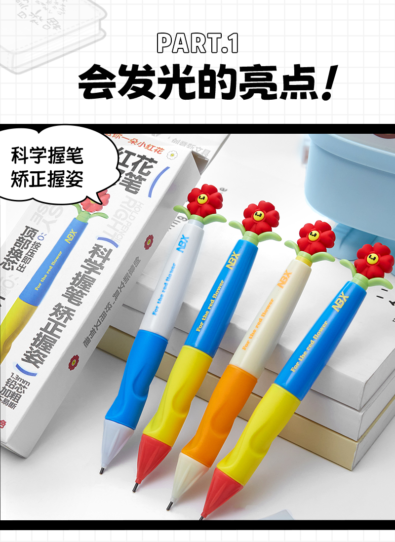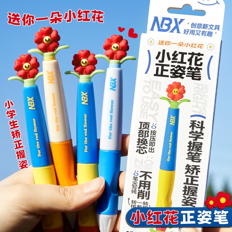 초등학생을 위한 작은 붉은 꽃 자동 연필 2b 1학년 및 2학년 hb 어린이 유치원 초보자 무독성스토어 가기