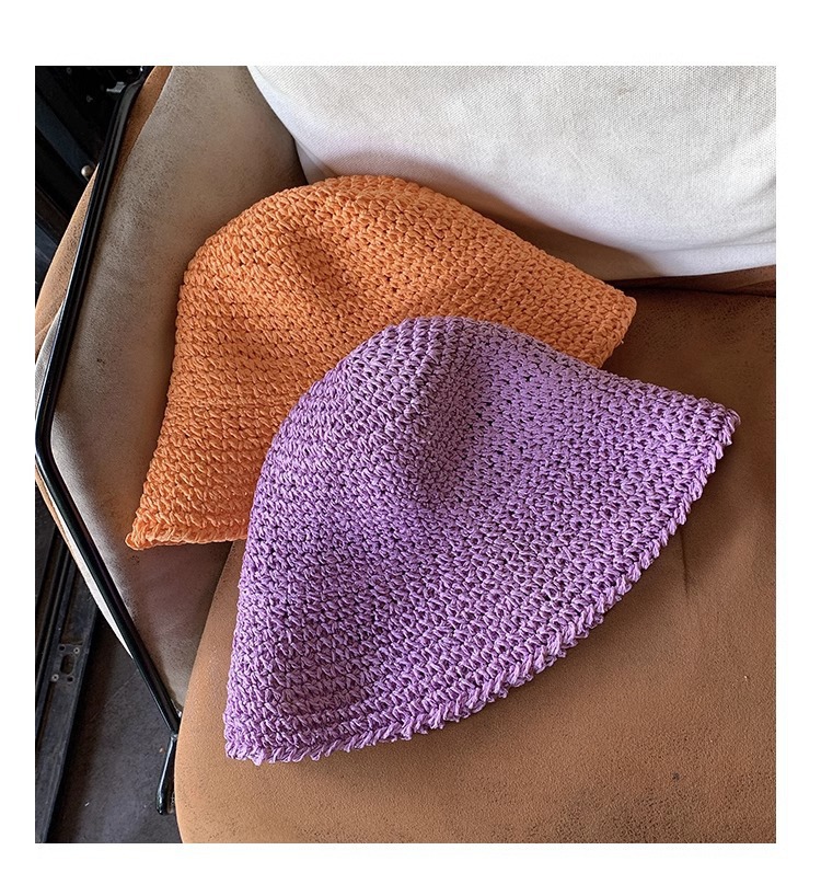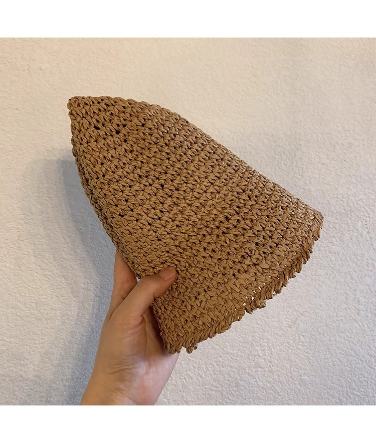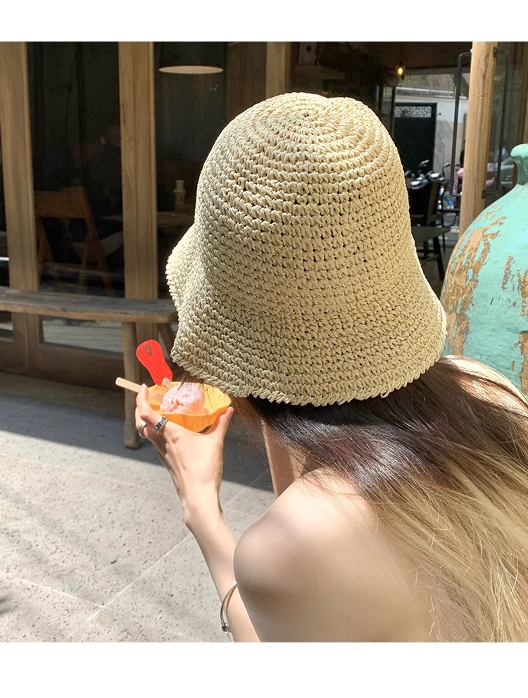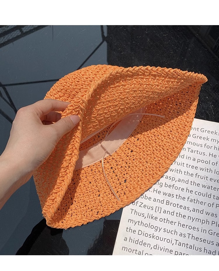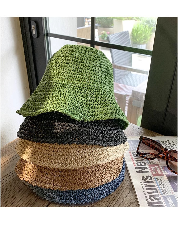 일본식 간단한 밀짚 양동이 모자 여성의 여름 통기성 햇빛 밀짚 모자 해변 휴일 접이식 선 스크린 어부 모자