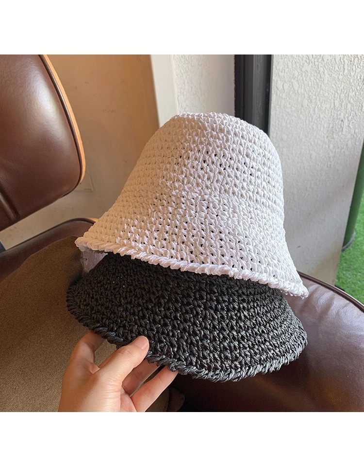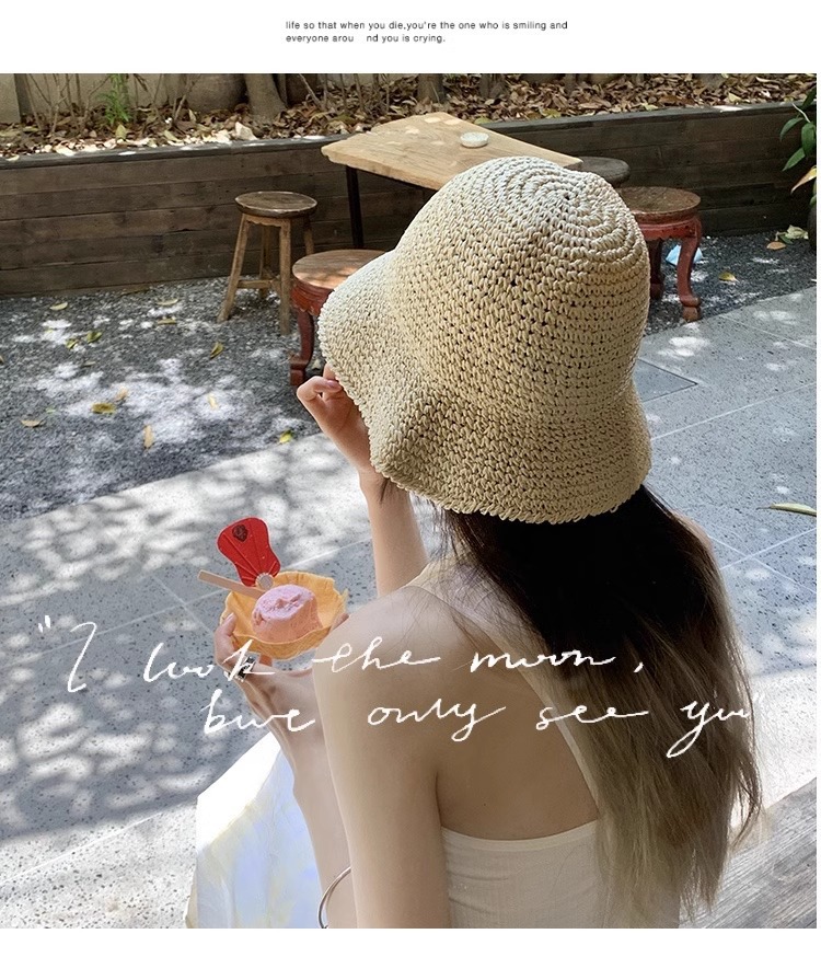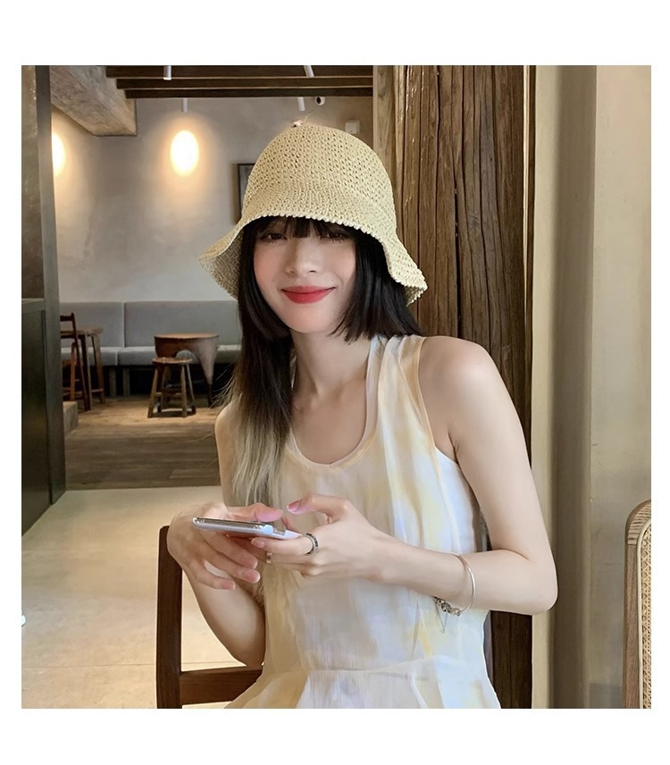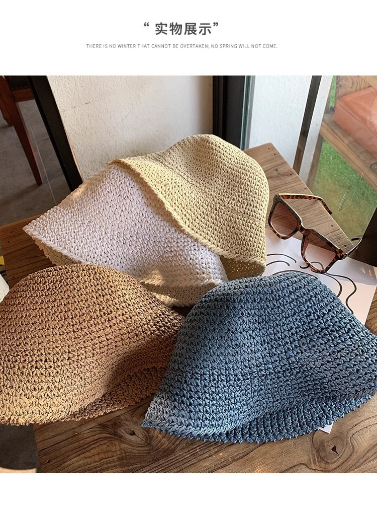 일본식 간단한 밀짚 양동이 모자 여성의 여름 통기성 햇빛 밀짚 모자 해변 휴일 접이식 선 스크린 어부 모자스토어 가기