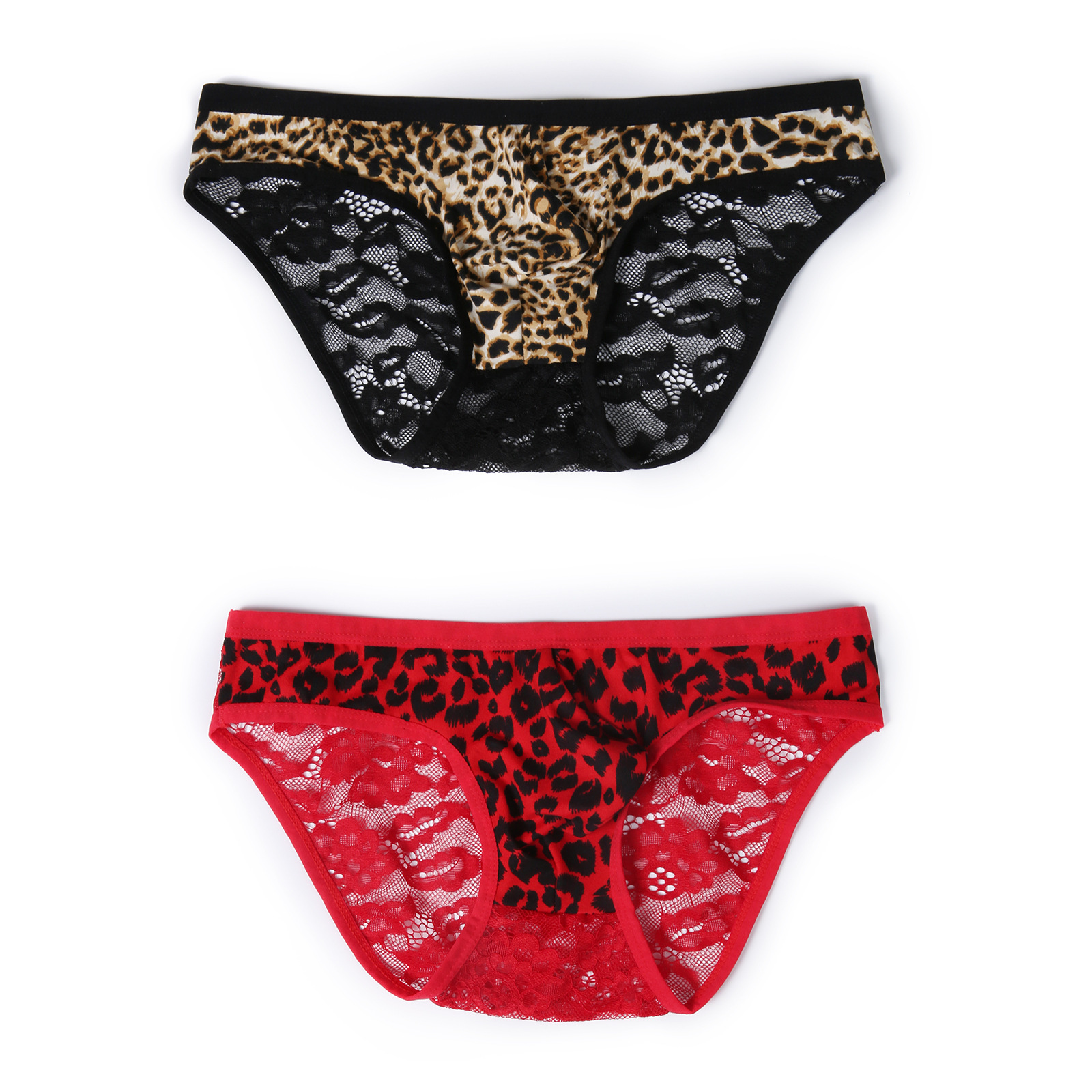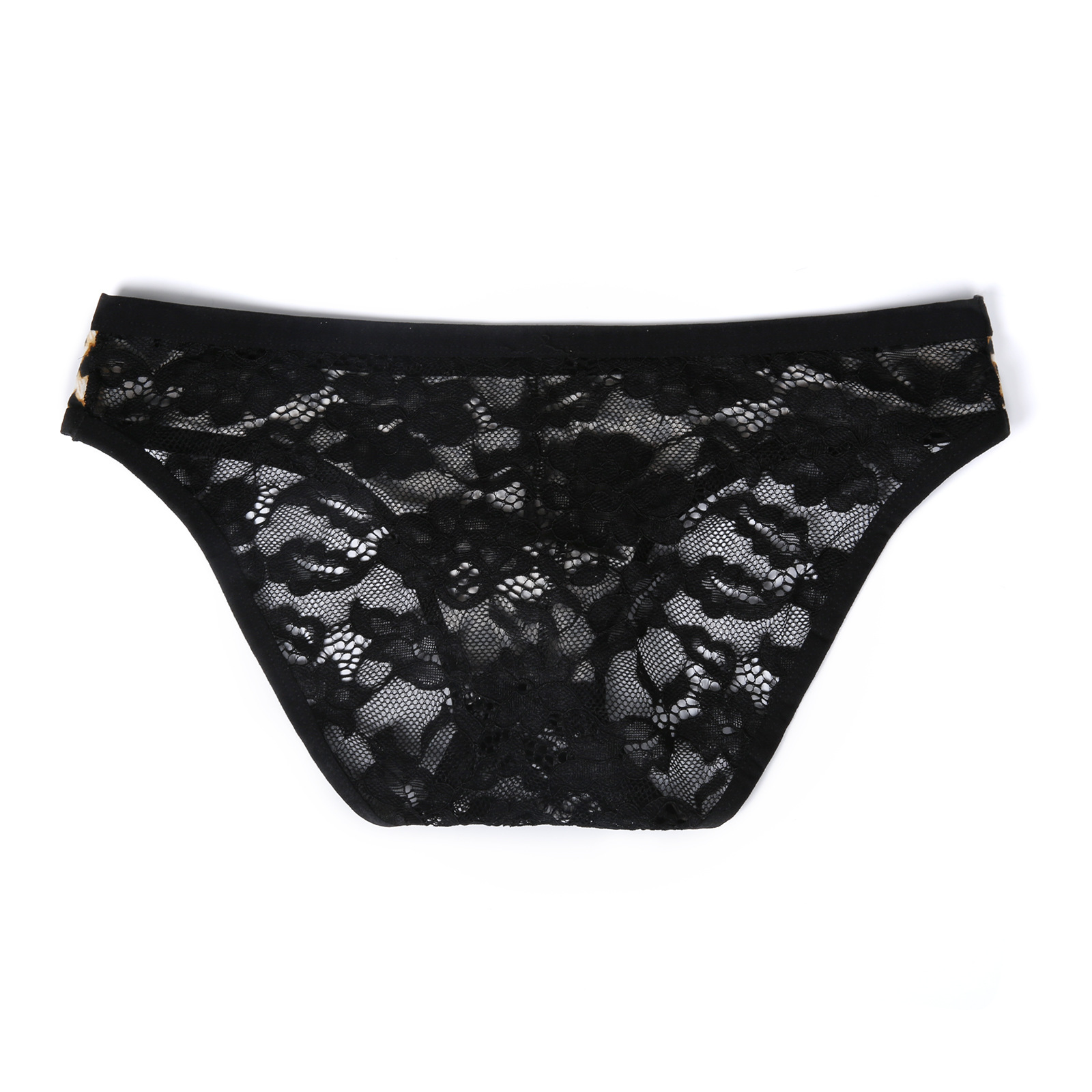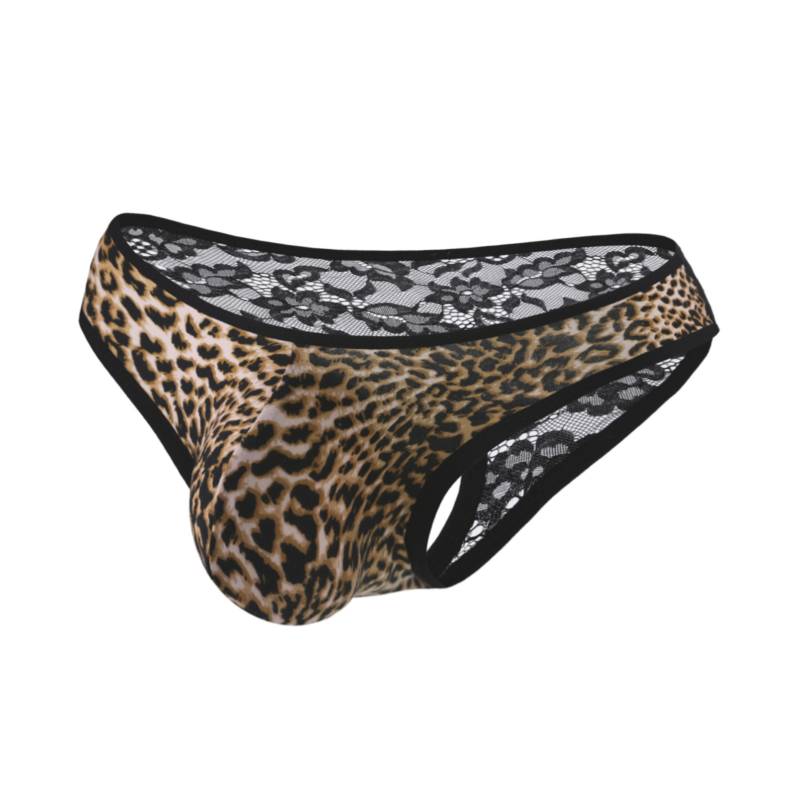 男士性感蕾丝内裤低腰拼接豹纹透视弹性凸袋三角裤一件代发