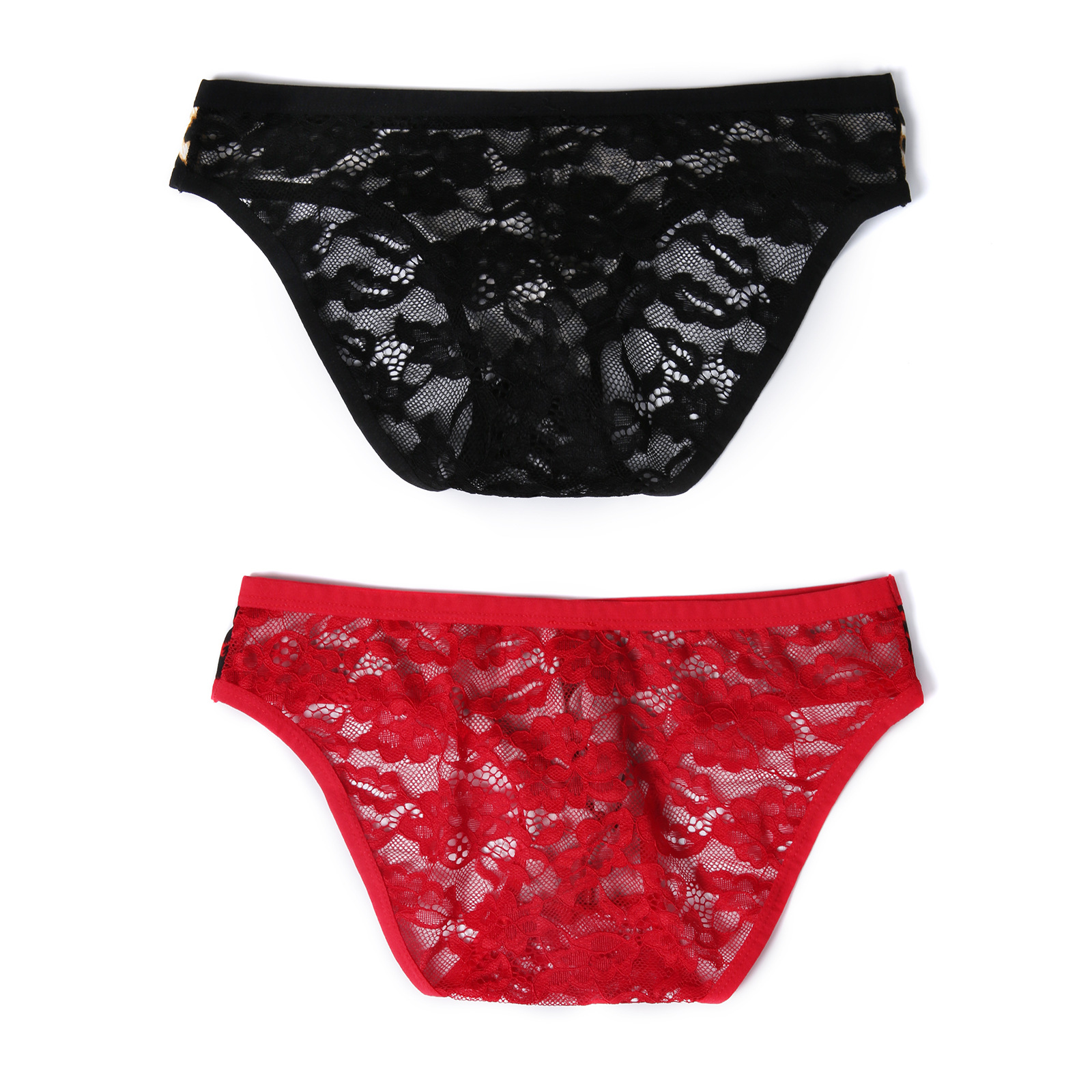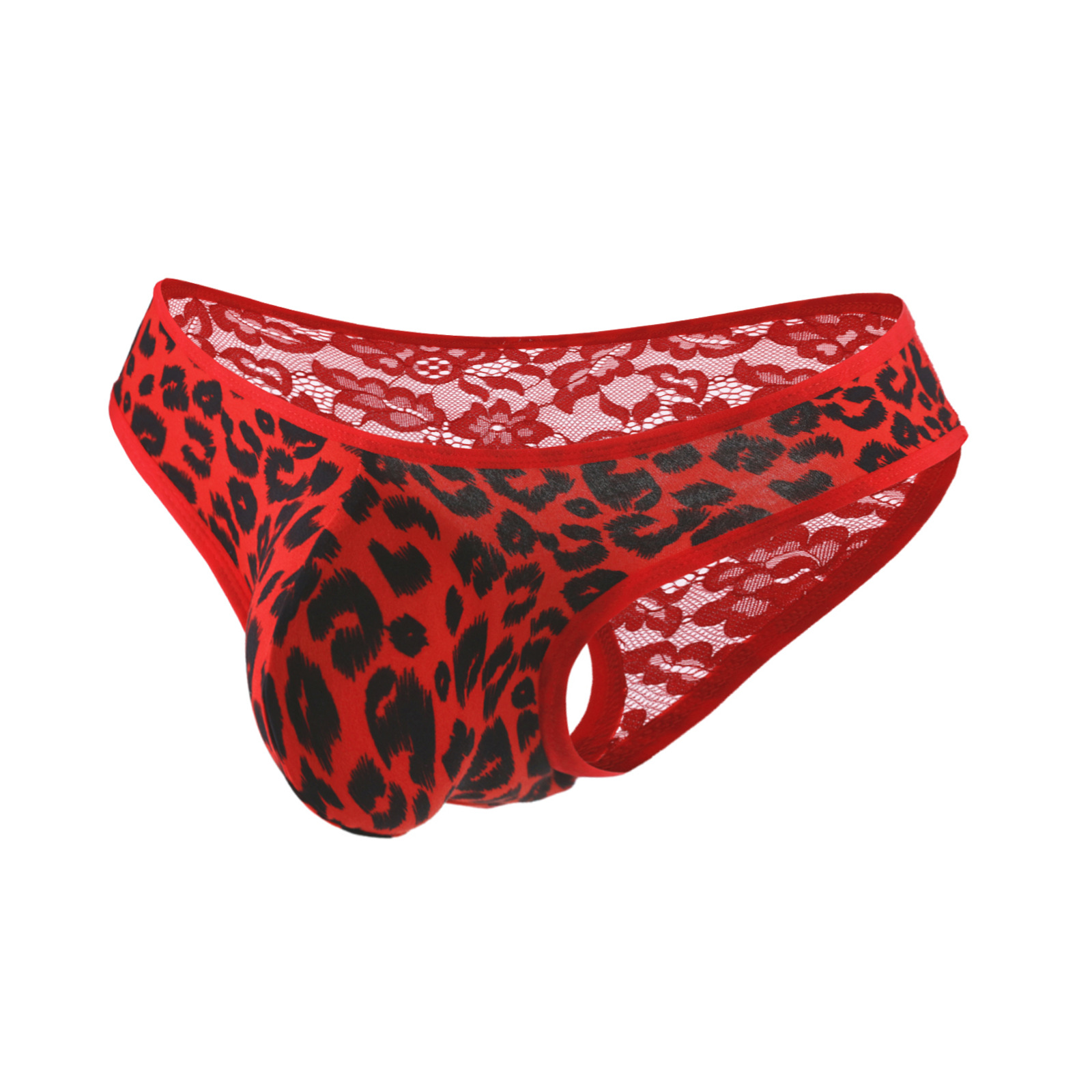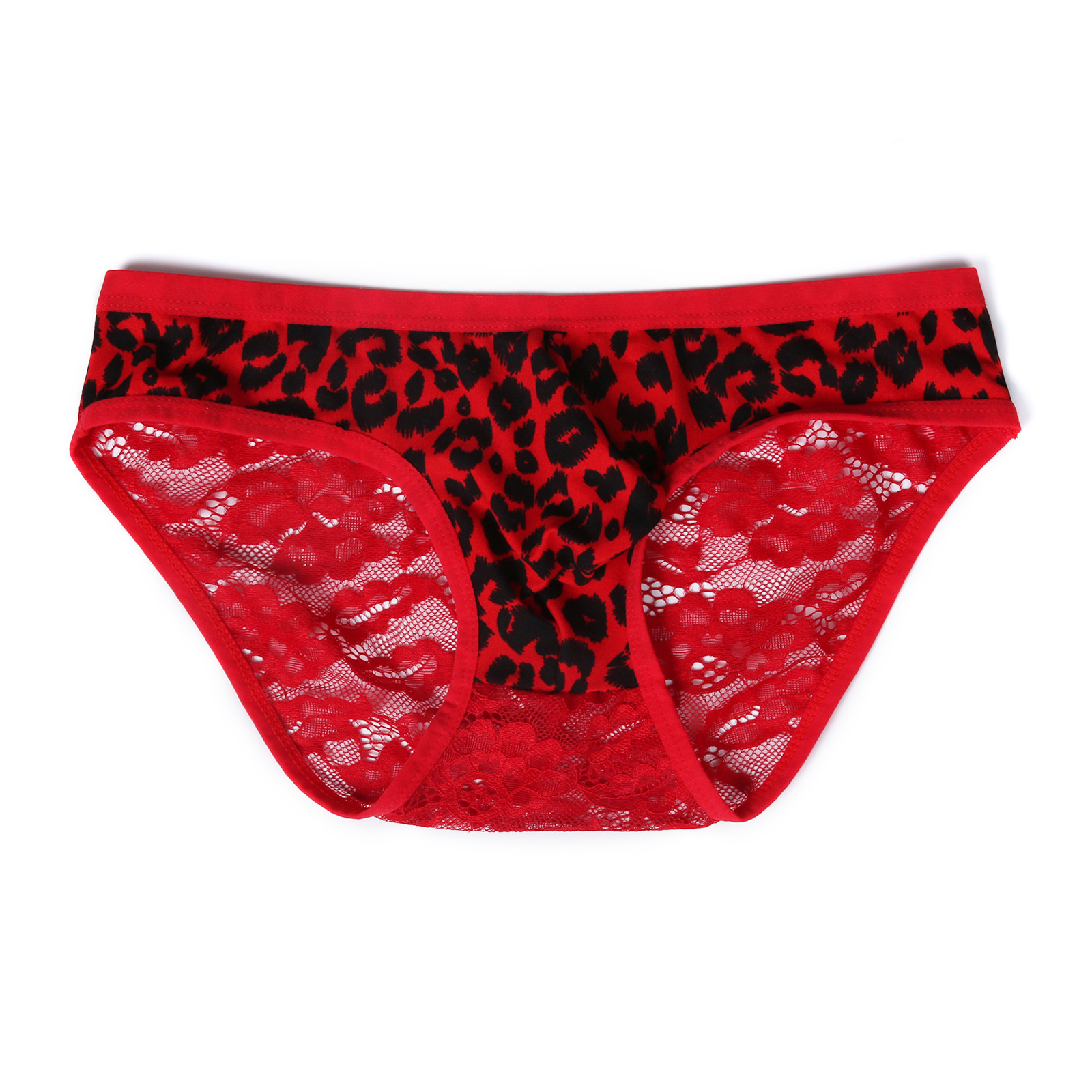男士性感蕾丝内裤低腰拼接豹纹透视弹性凸袋三角裤一件代发