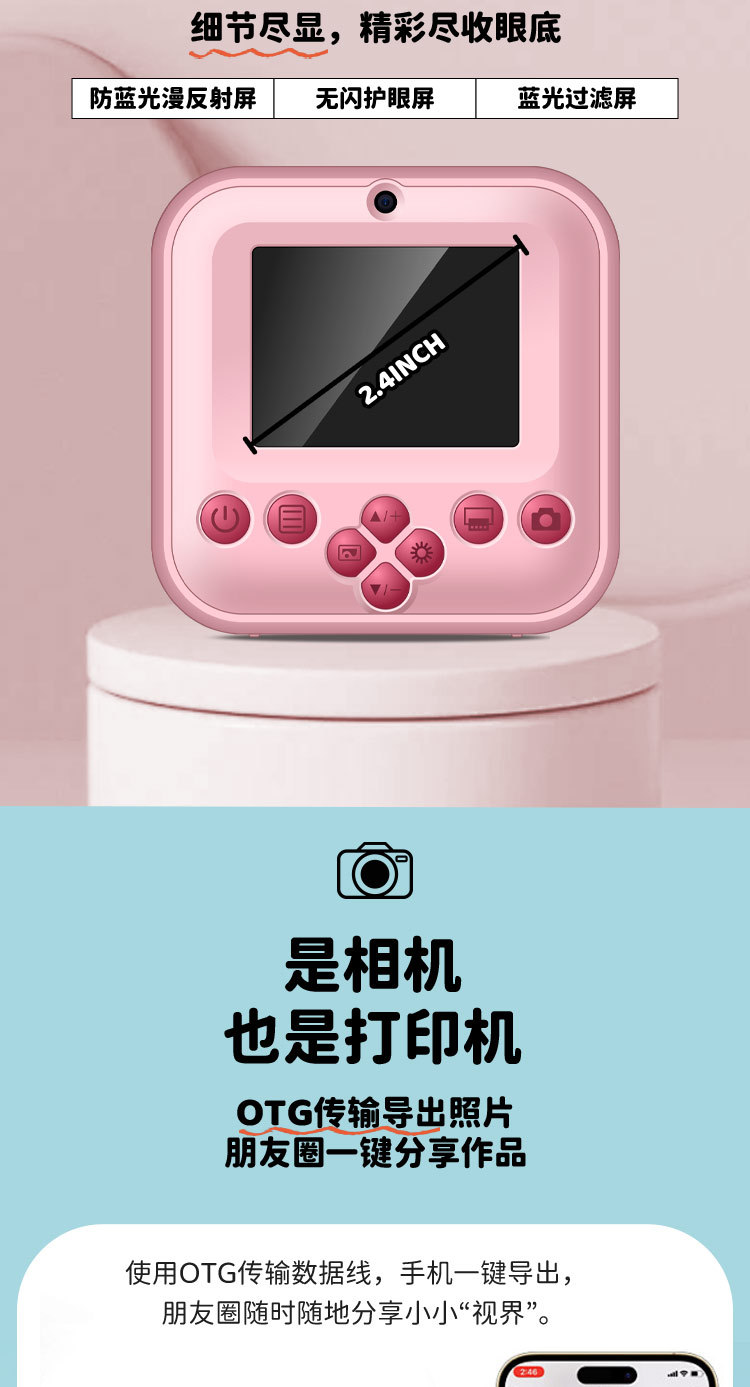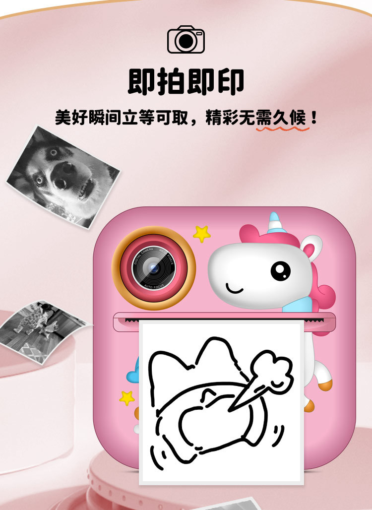 국경 간 새로운 어린이 디지털 고화질 사진 인쇄 카메라 만화 미니 폴라로이드 어린이 디지털 카메라
