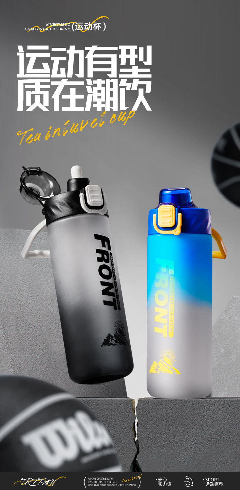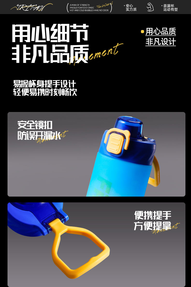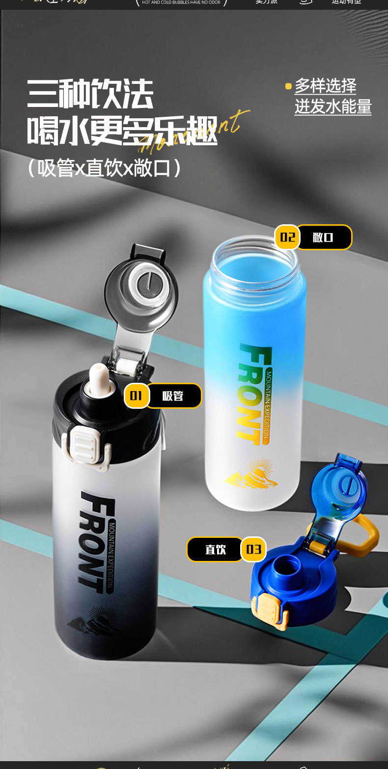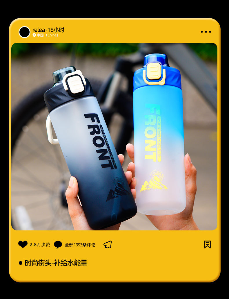 새로운 스페이스 컵 젖빛 그라데이션 대용량 스포츠 플라스틱 물병 더블 마시는 빨대 범용 물 컵 휴대용 손잡이스토어 가기