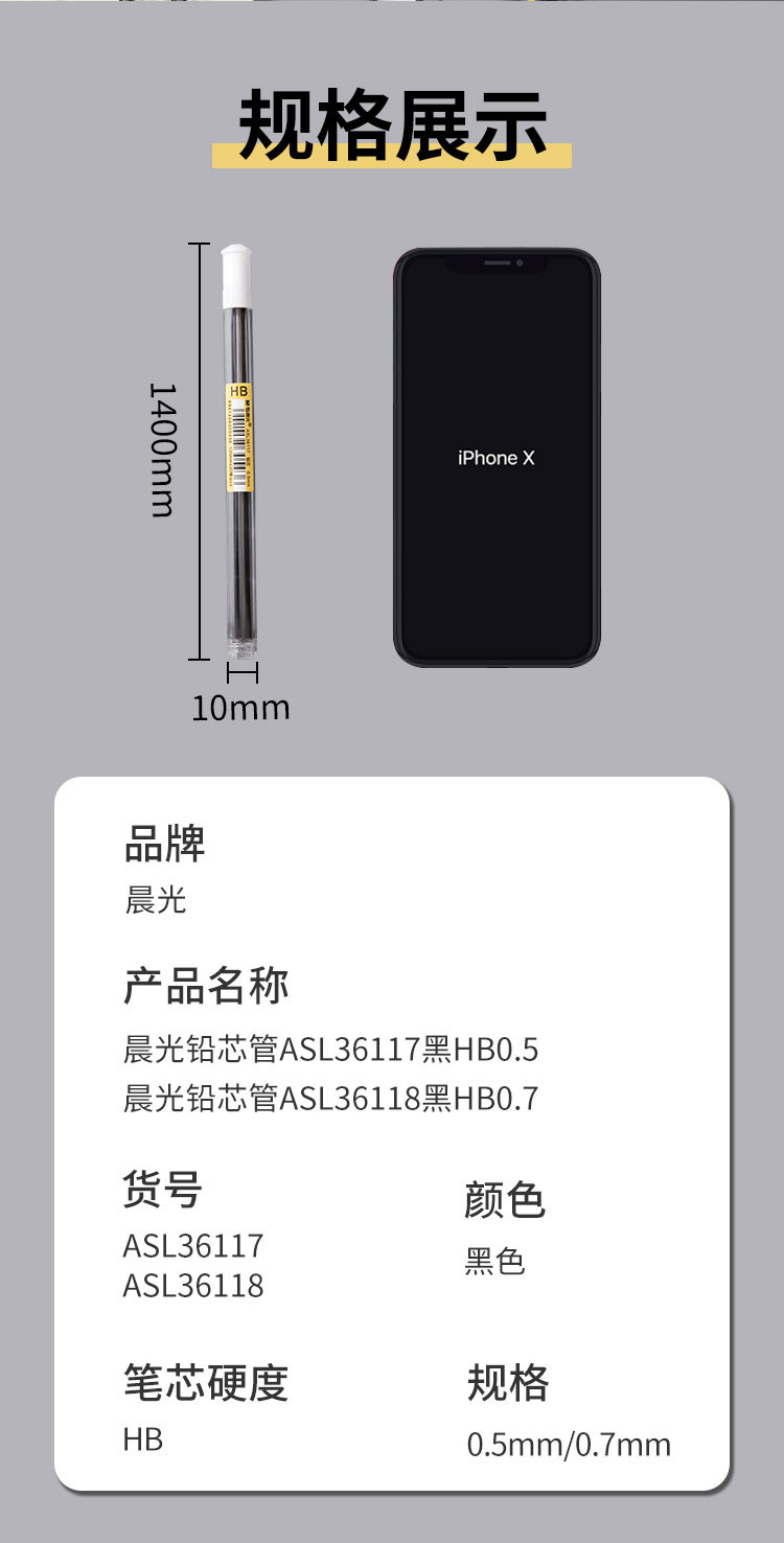 Chenguang ASL36118 학생용 자동 연필 수지 심 HB는 깨지기 쉽지 않고 부드럽고 쓰기 쉽습니다. 0.7m 연필심