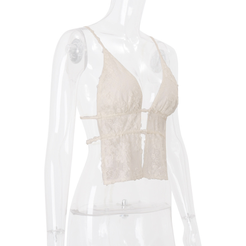 Ins 유럽과 미국 스타일 2025 봄 새로운 섹시한 순수한 욕망 레이스 스플 라이스 스트랩 복고풍 가슴 랩 캐미솔 여성스토어 가기