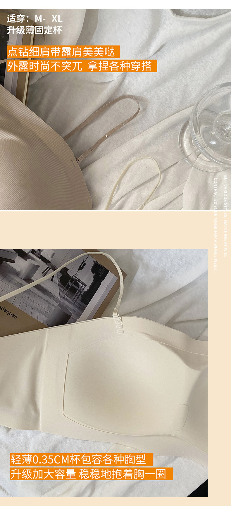 스트랩리스 1551 디스코는 끈이없는 원활한 원피스 고정 컵 BC 얇은 컵 아름다운 백 원피스 브래지어에서 떨어질 수 없습니다.스토어 가기