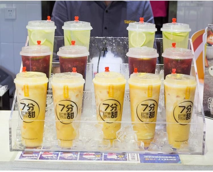 냉동 음료, 갓 짜낸 주스, 밀크티 컵 디스플레이 스탠드, 요거트 과일 차 노점 야시장 데스크탑스토어 가기