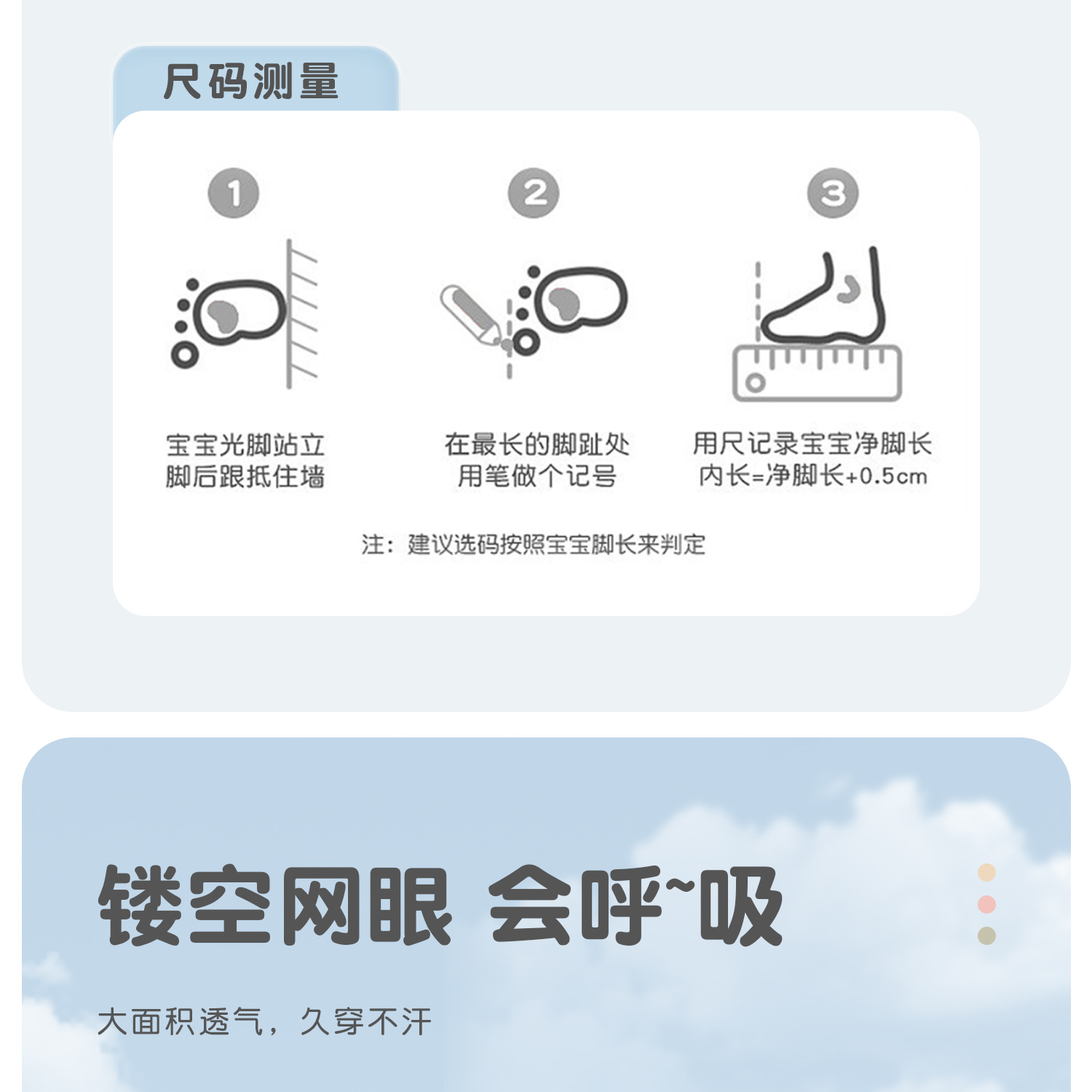• S 사이즈: 발 길이 8-11cm 권장, 6-12개월 아기에게 적합