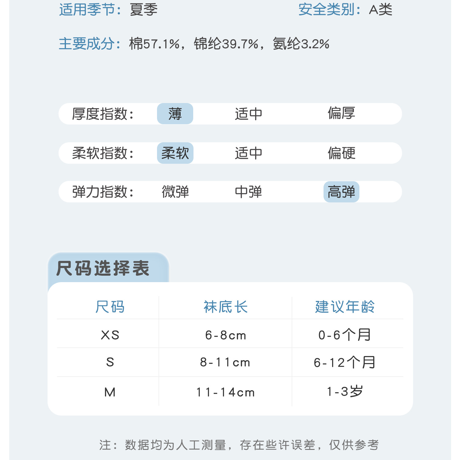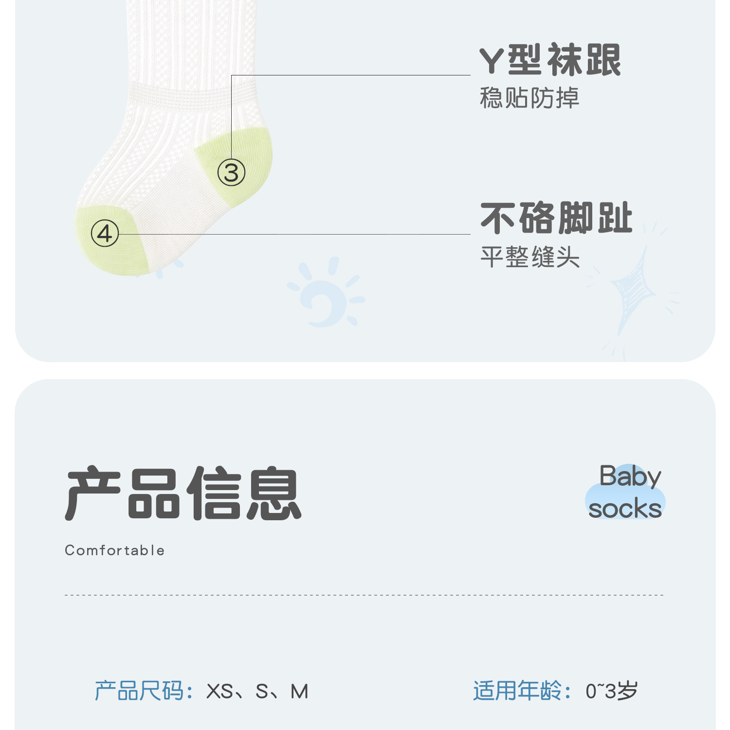 • XS 사이즈: 발 길이 6-8cm 권장, 0-6개월 아기에게 적합