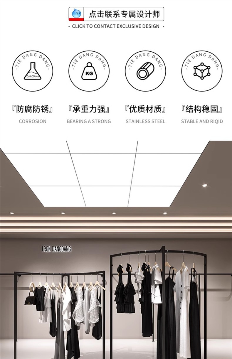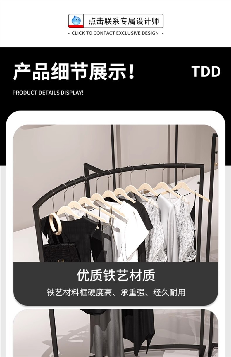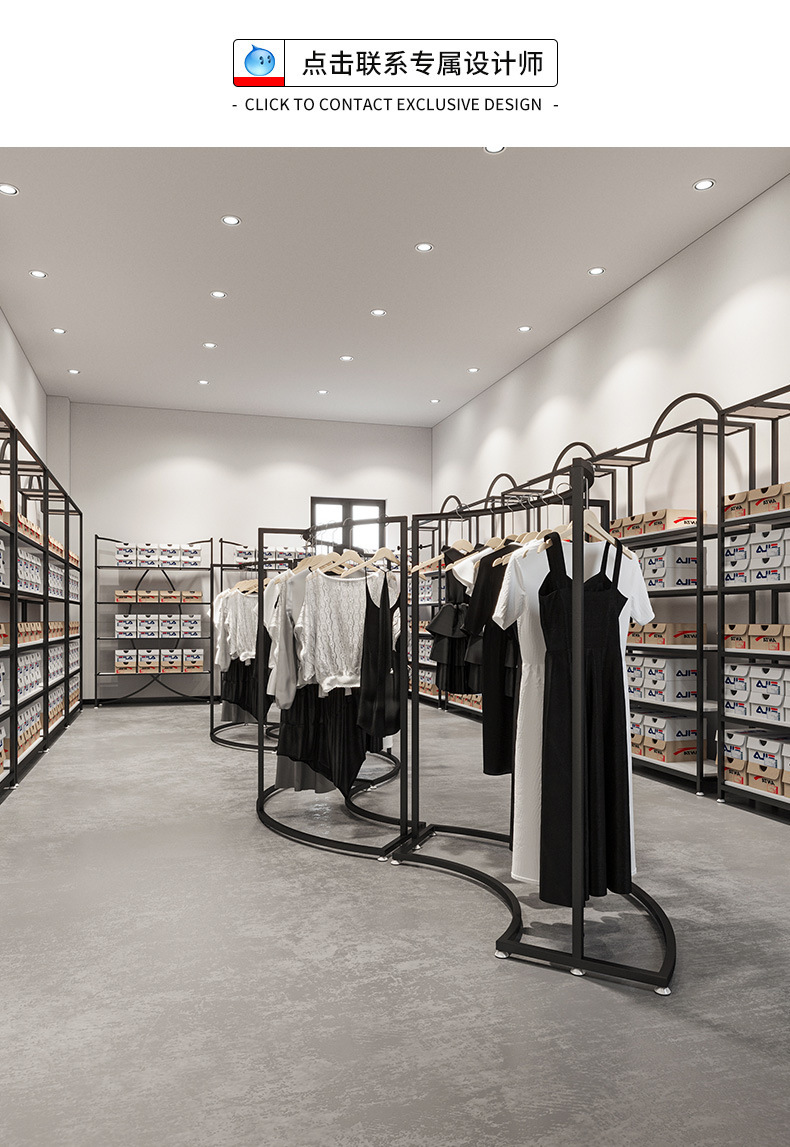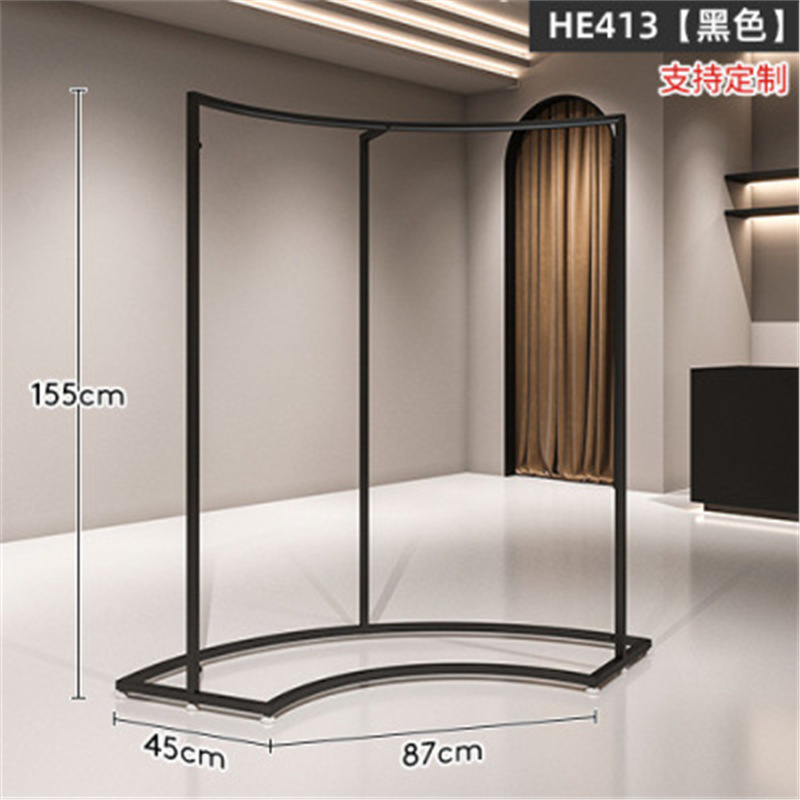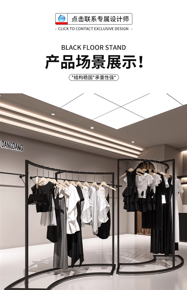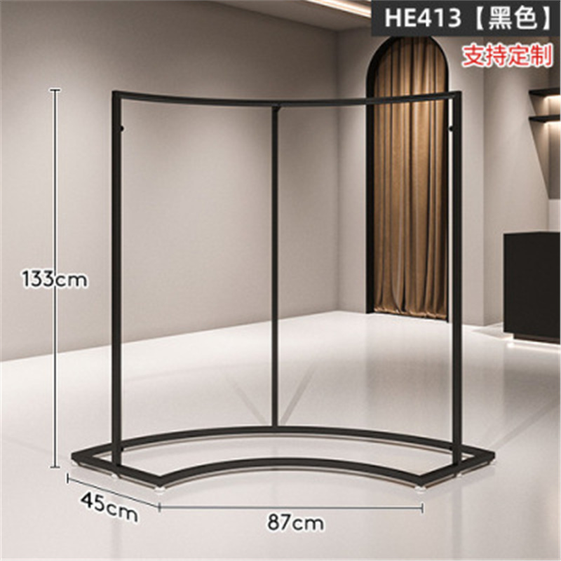 의류 매장 센터 콘솔 디스플레이 랙 블랙 철 아트 곡선 의류 디스플레이 랙 조합 남성 및 여성 의류 매장 선반 옷걸이스토어 가기