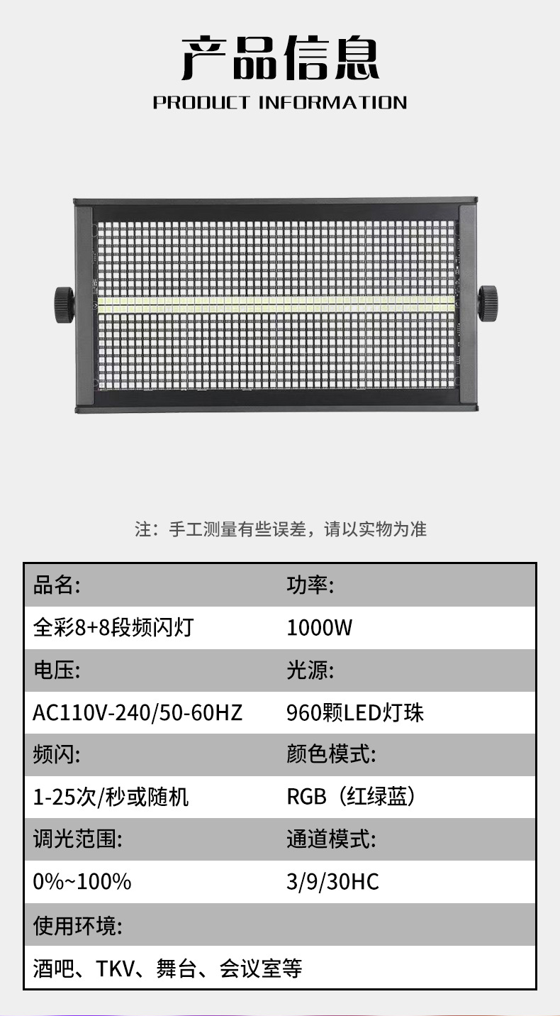 LED8 8 섹션 스트로브 빛 1000W 라이브 룸 무대 콘서트 바 KTV 말 풀 컬러 염색 분위기 빛