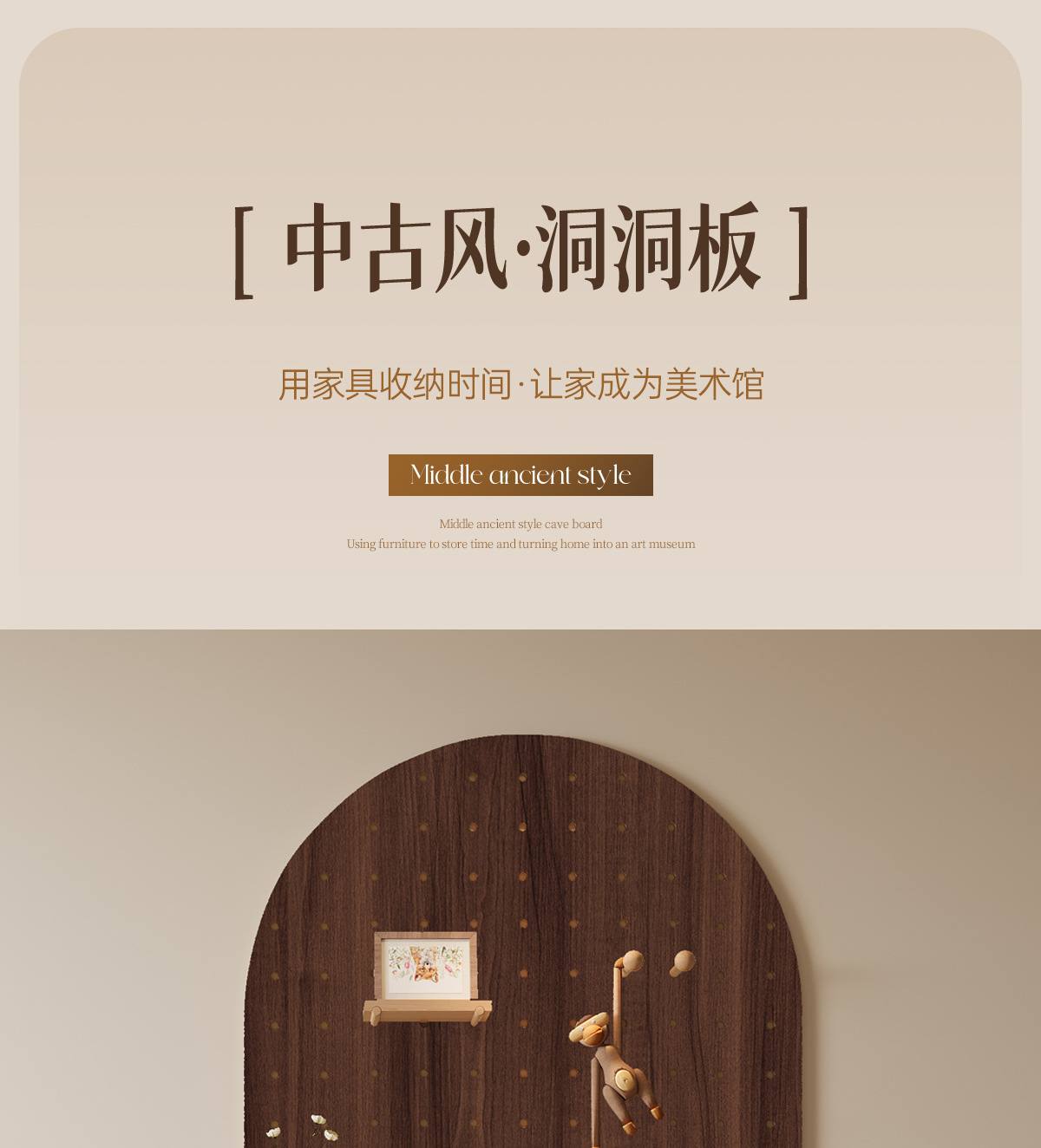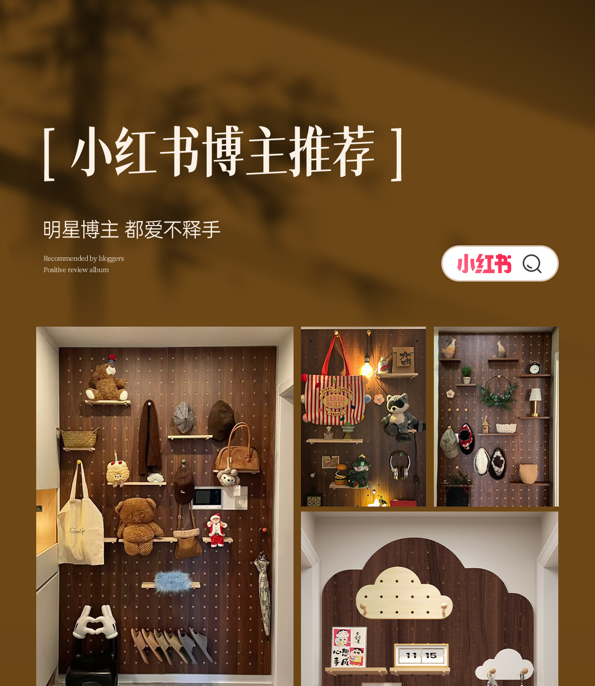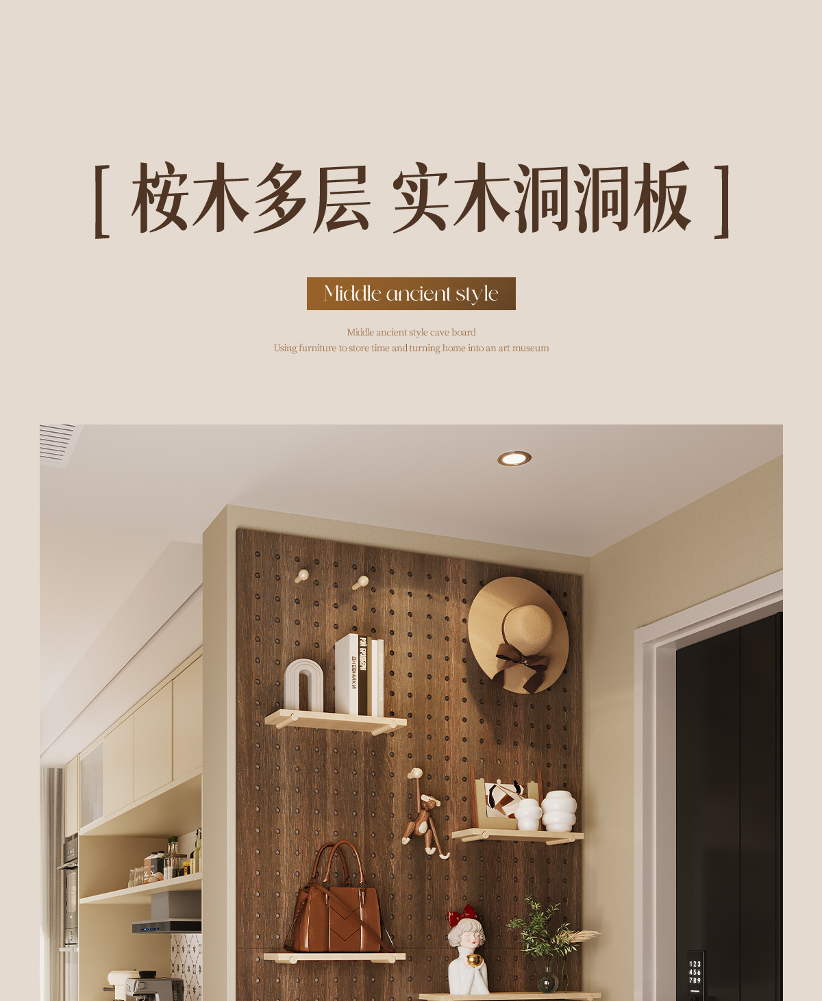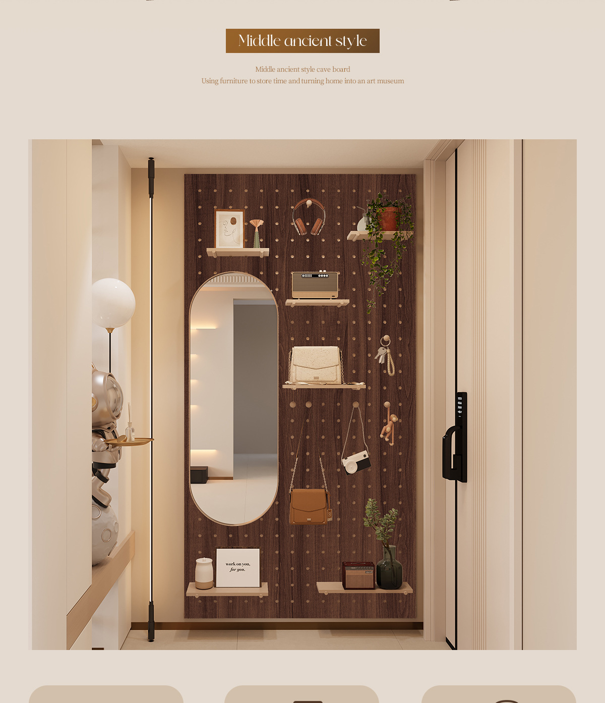 중세 스타일 단단한 나무 구멍 보드 벽 선반 액세서리 파티션 벽 디스플레이 스토리지 랙 도매 공급스토어 가기