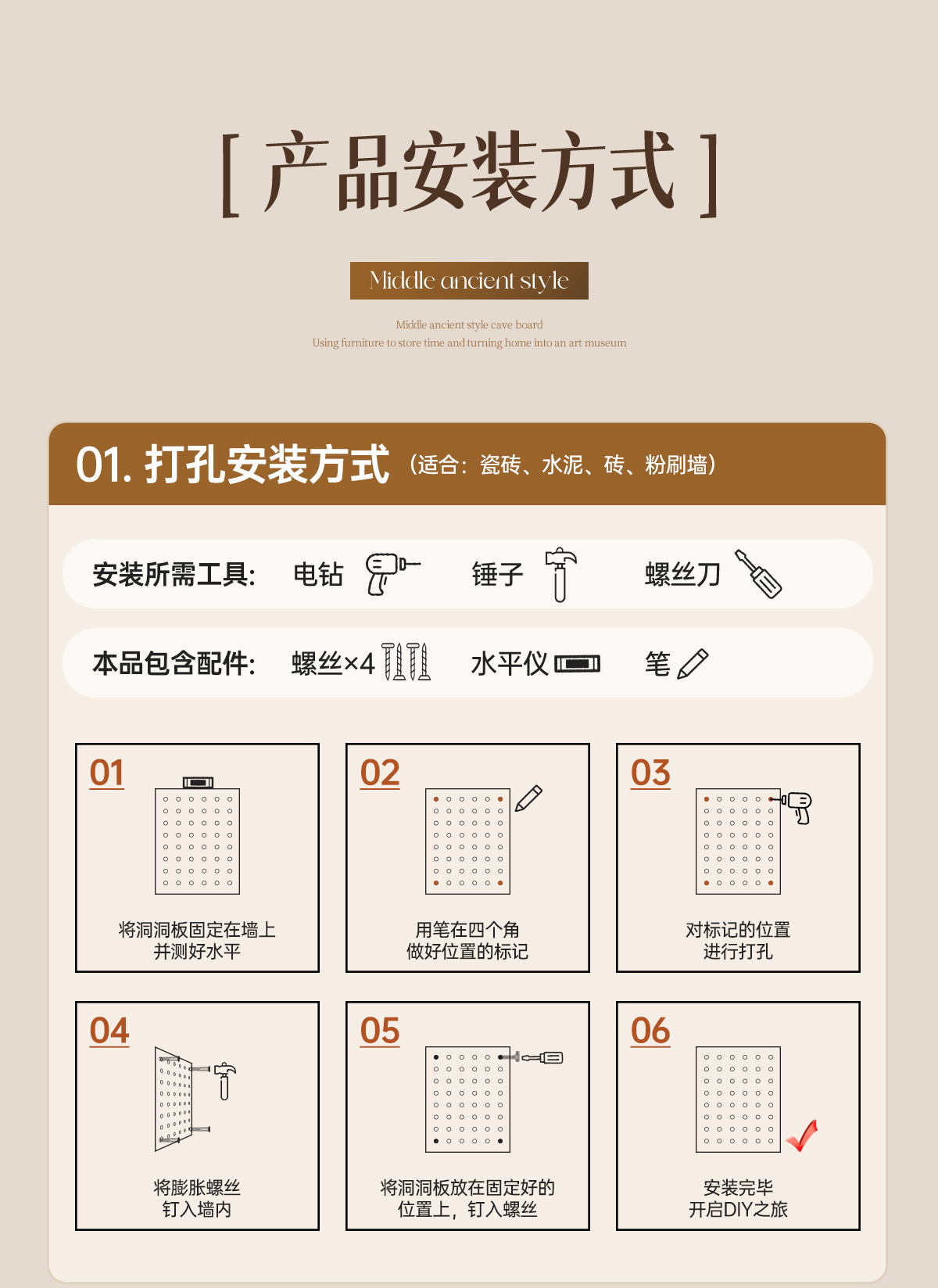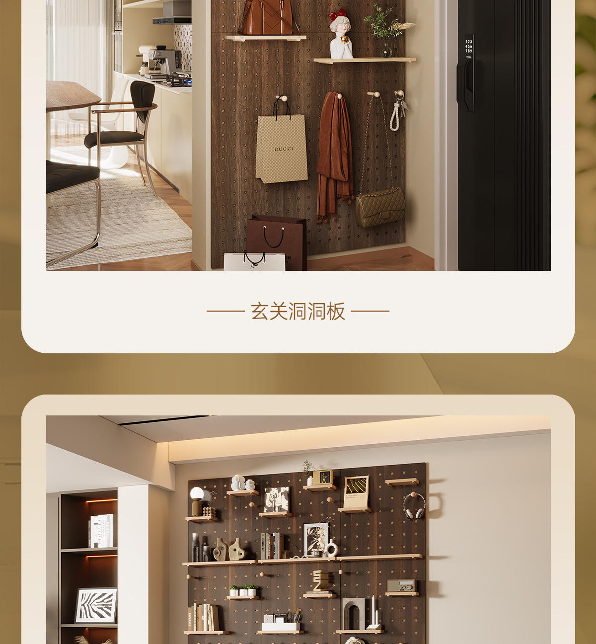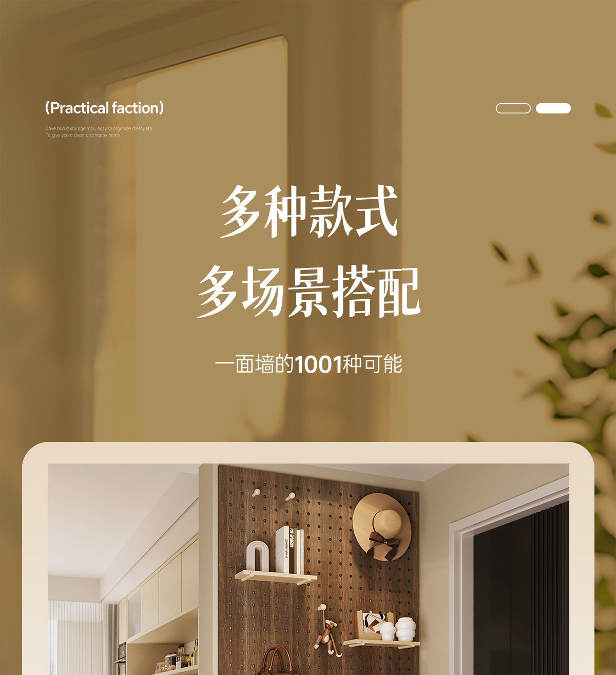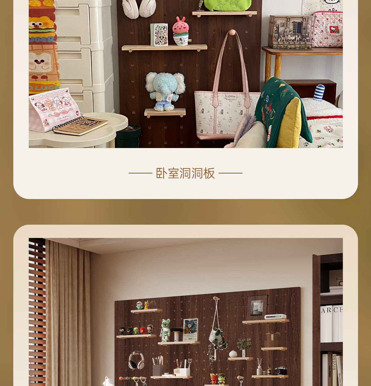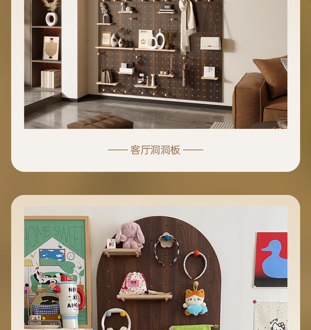 중세 스타일 단단한 나무 구멍 보드 벽 선반 액세서리 파티션 벽 디스플레이 스토리지 랙 도매 공급스토어 가기