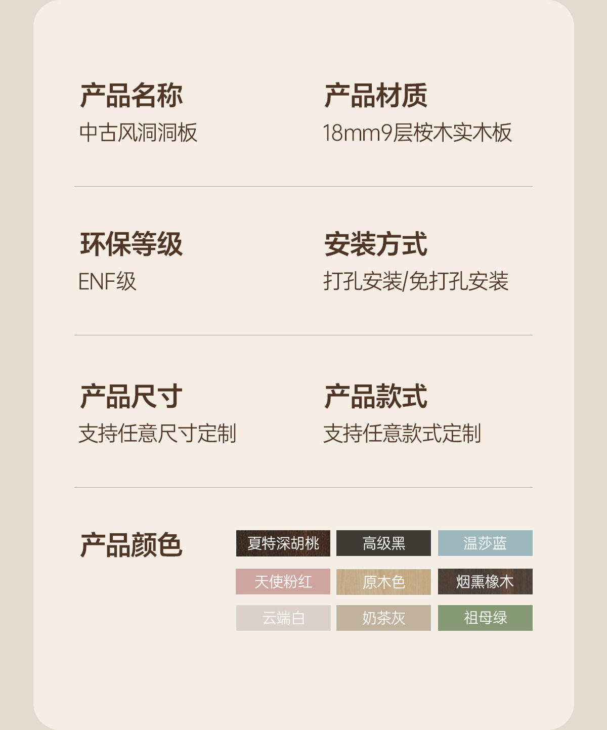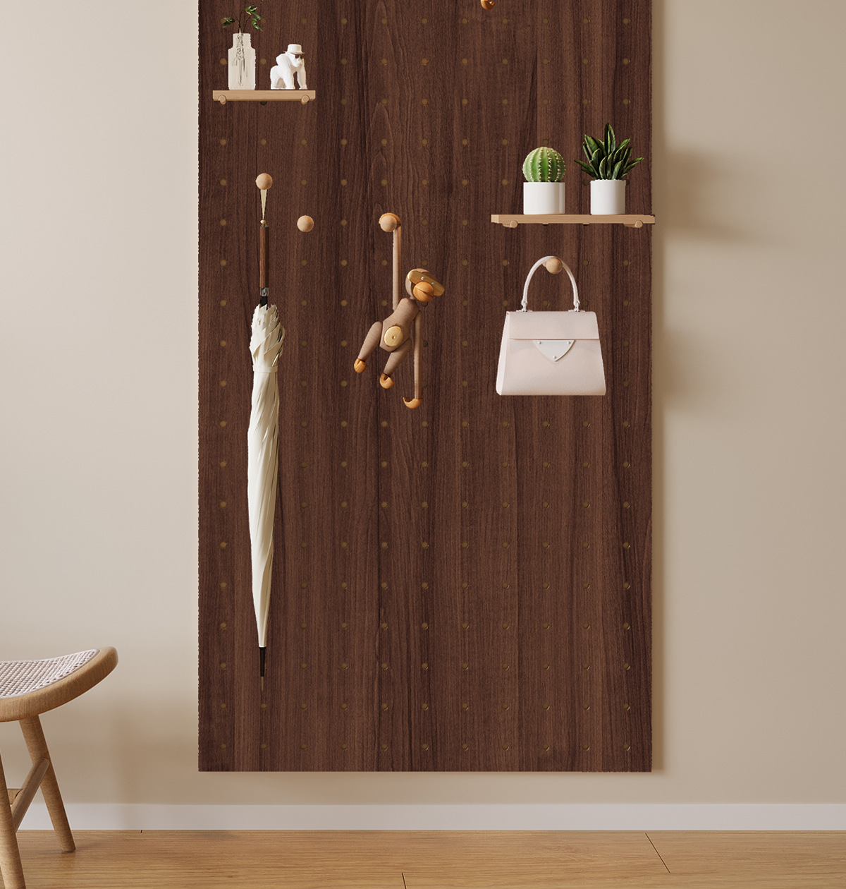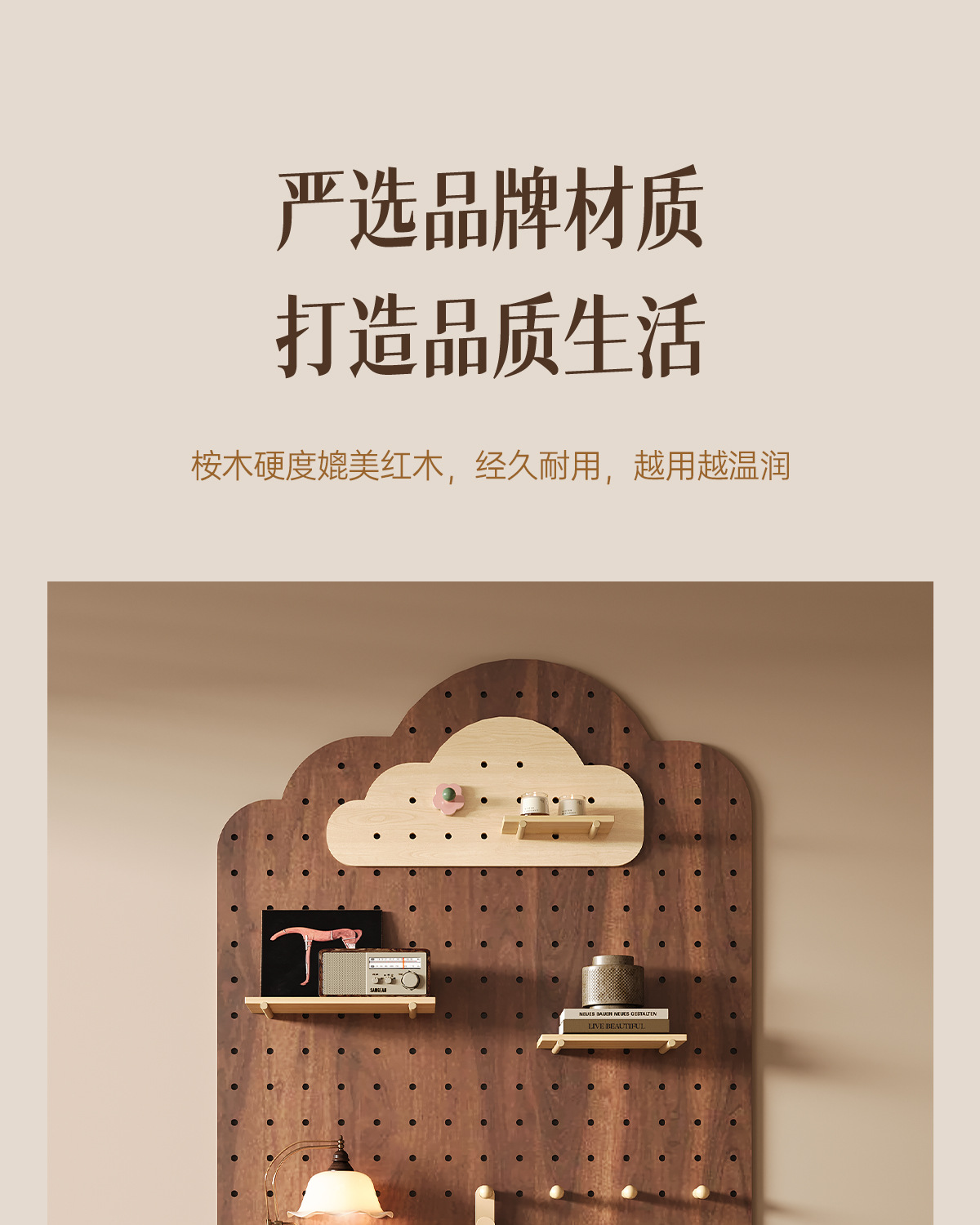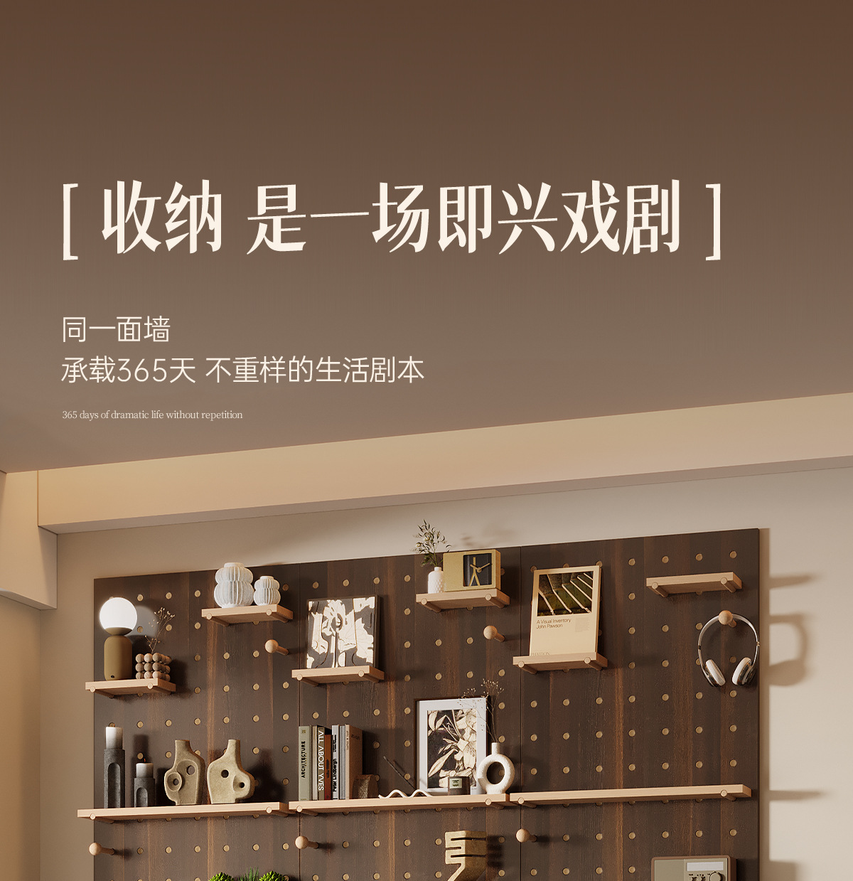 중세 스타일 단단한 나무 구멍 보드 벽 선반 액세서리 파티션 벽 디스플레이 스토리지 랙 도매 공급