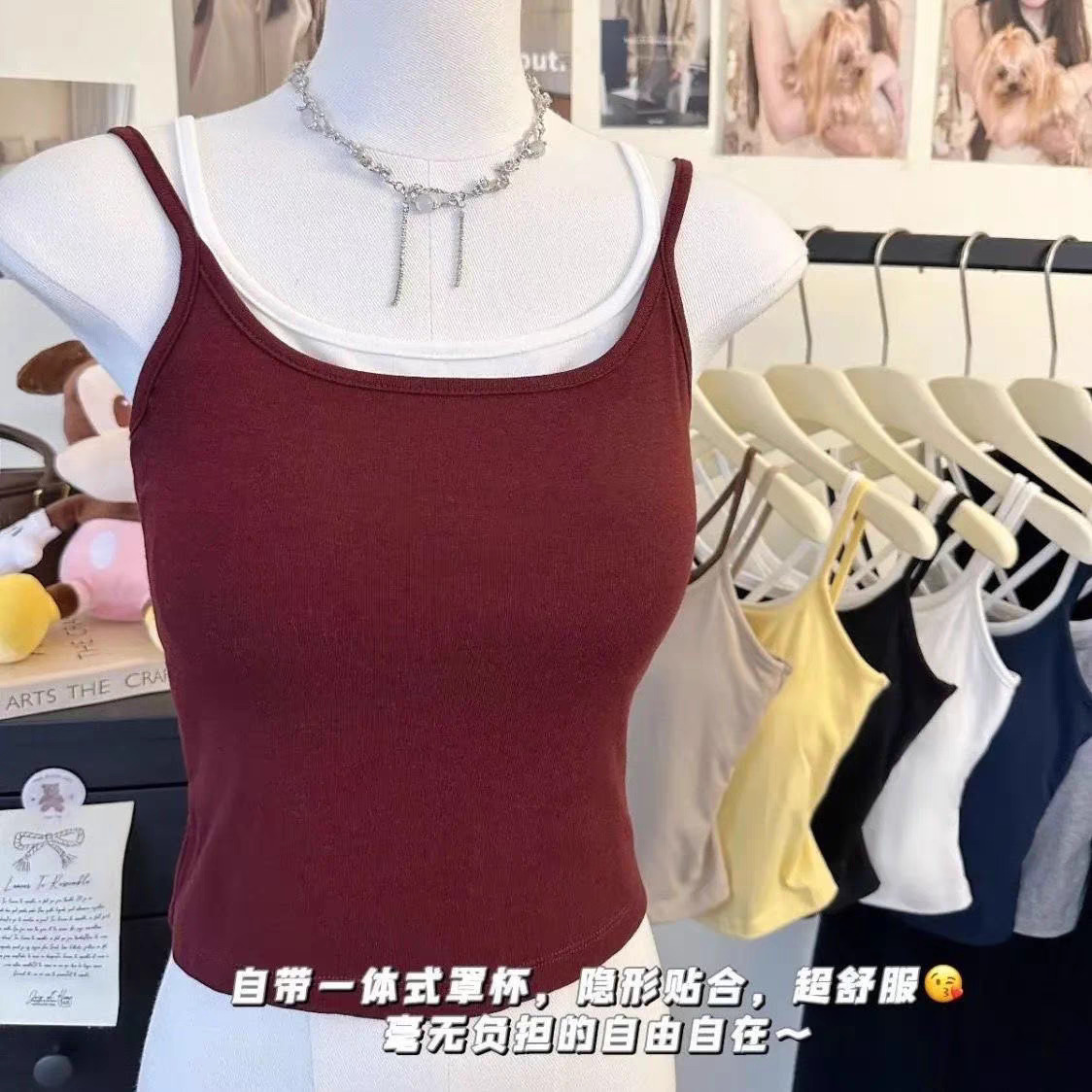 夏季性感纯欲辣妹交叉美背固定杯修身显瘦聚拢防走光无痕裸感无钢圈一体杯无袖上衣休闲百搭瑜伽运动
