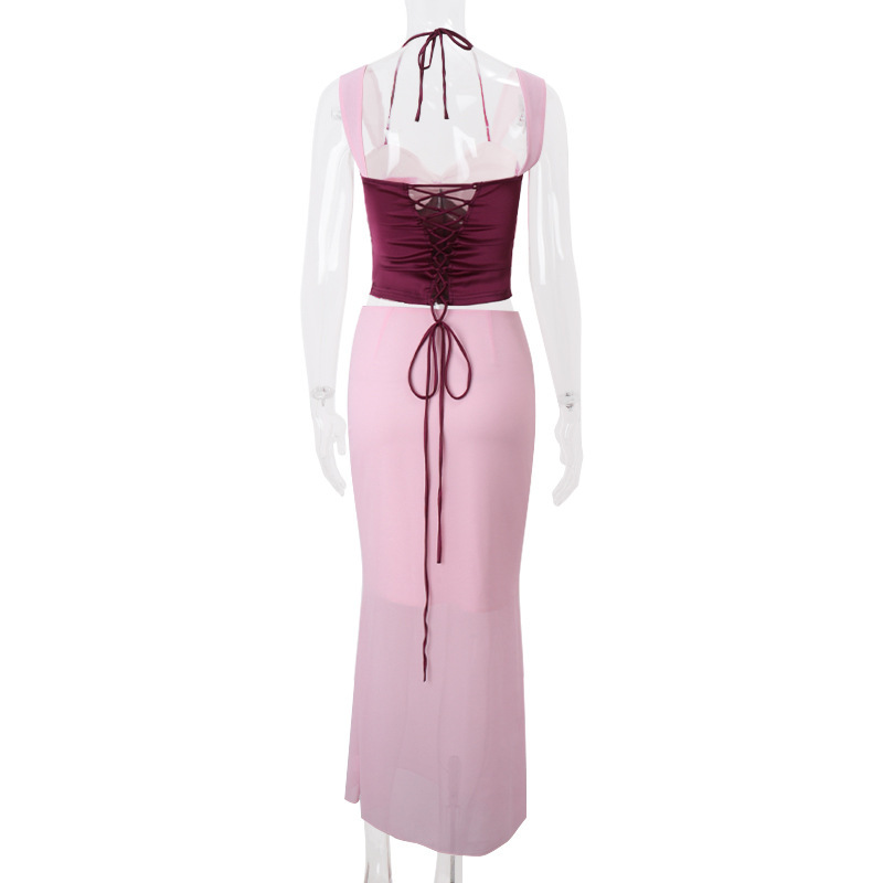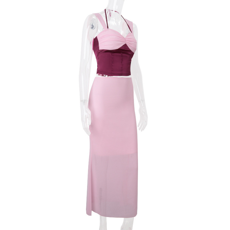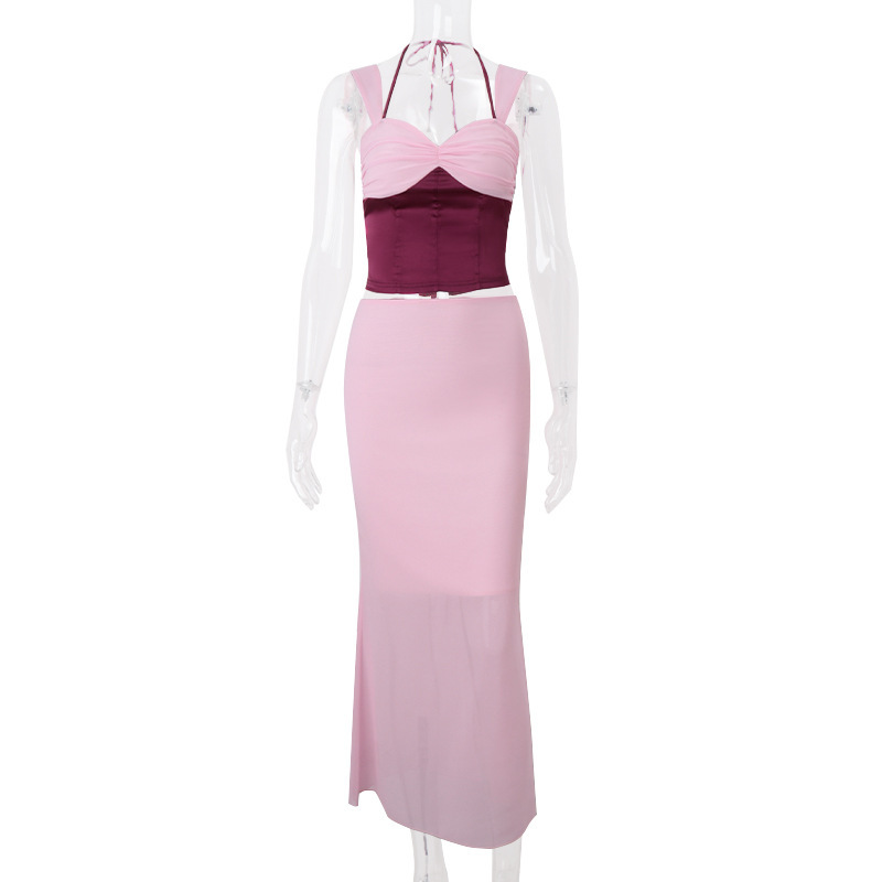 국경 간 유럽과 미국 의류 2025 봄 새로운 섹시한 뜨거운 소녀 배꼽 노출 캐미솔 탑 슬림 피트 힙 스커트 정장 여성