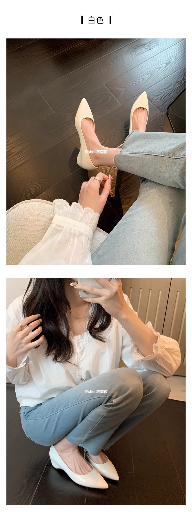 포도엄마와 같은 스타일~ 레드솔 하이힐~ 3cm 이내 키높이 클래식 포인티드 토 로우힐 얕은 굽 여성용 통근화스토어 가기