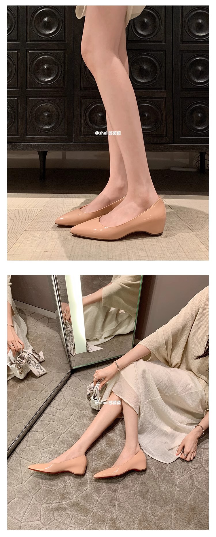 포도엄마와 같은 스타일~ 레드솔 하이힐~ 3cm 이내 키높이 클래식 포인티드 토 로우힐 얕은 굽 여성용 통근화