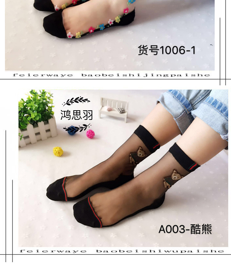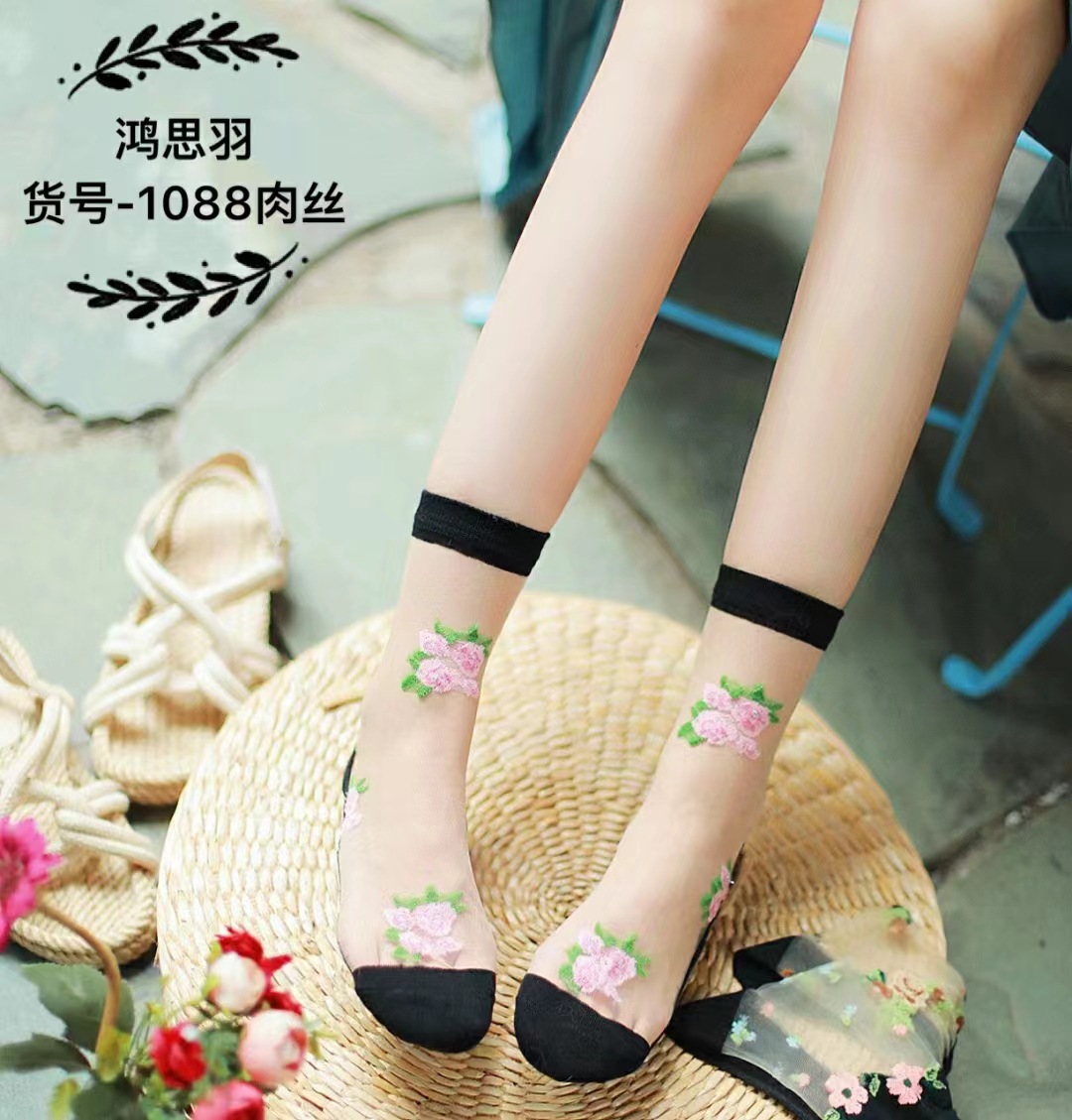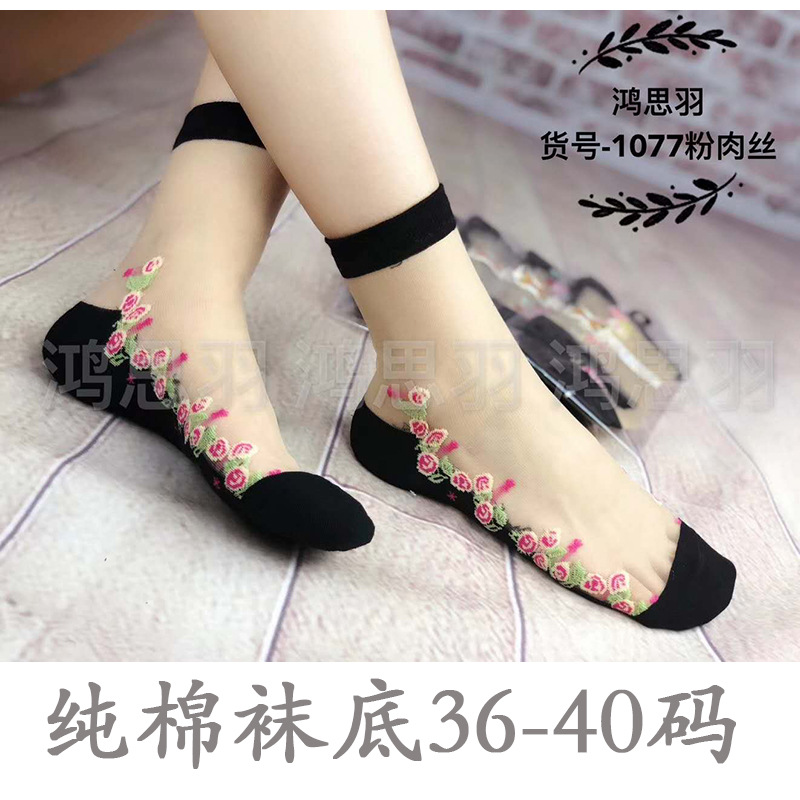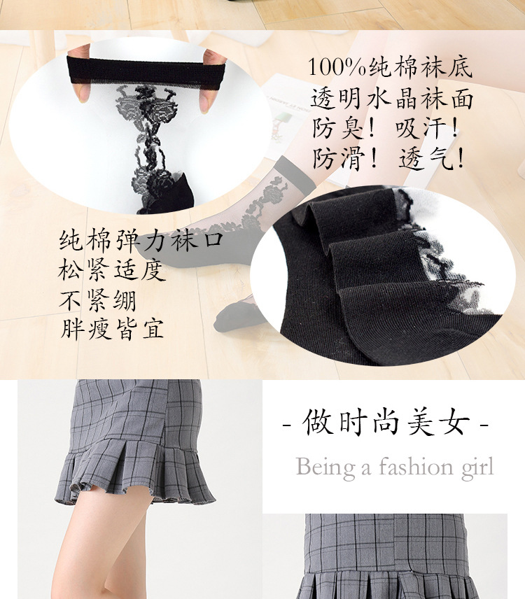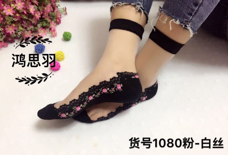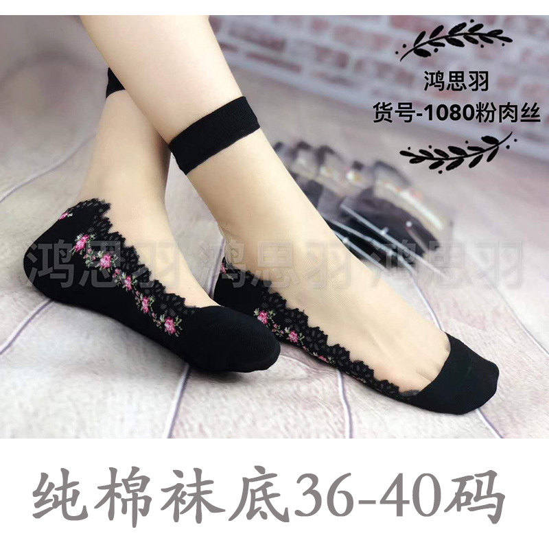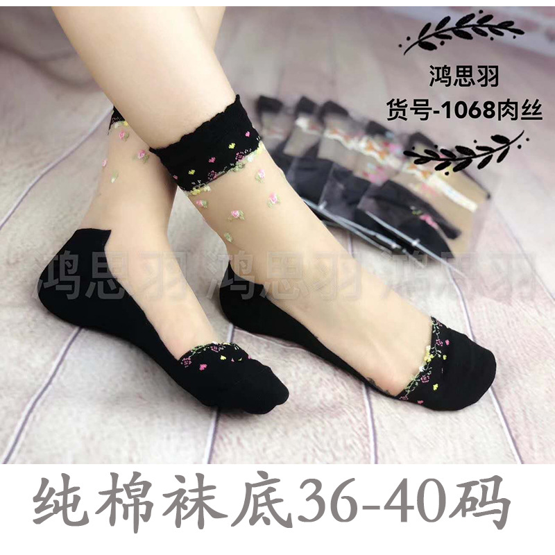 정품 보장 100% 순면 양말 밑창 여성용 Hongsiyu 유리 실크 중간 튜브 초박형 크리스탈 안티 걸림 대형 양말스토어 가기