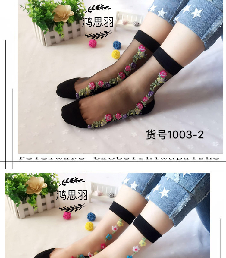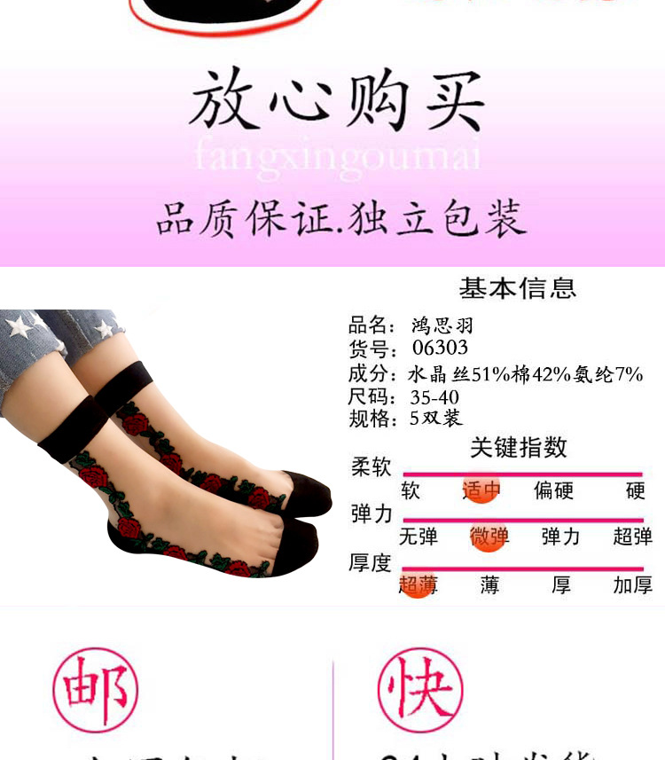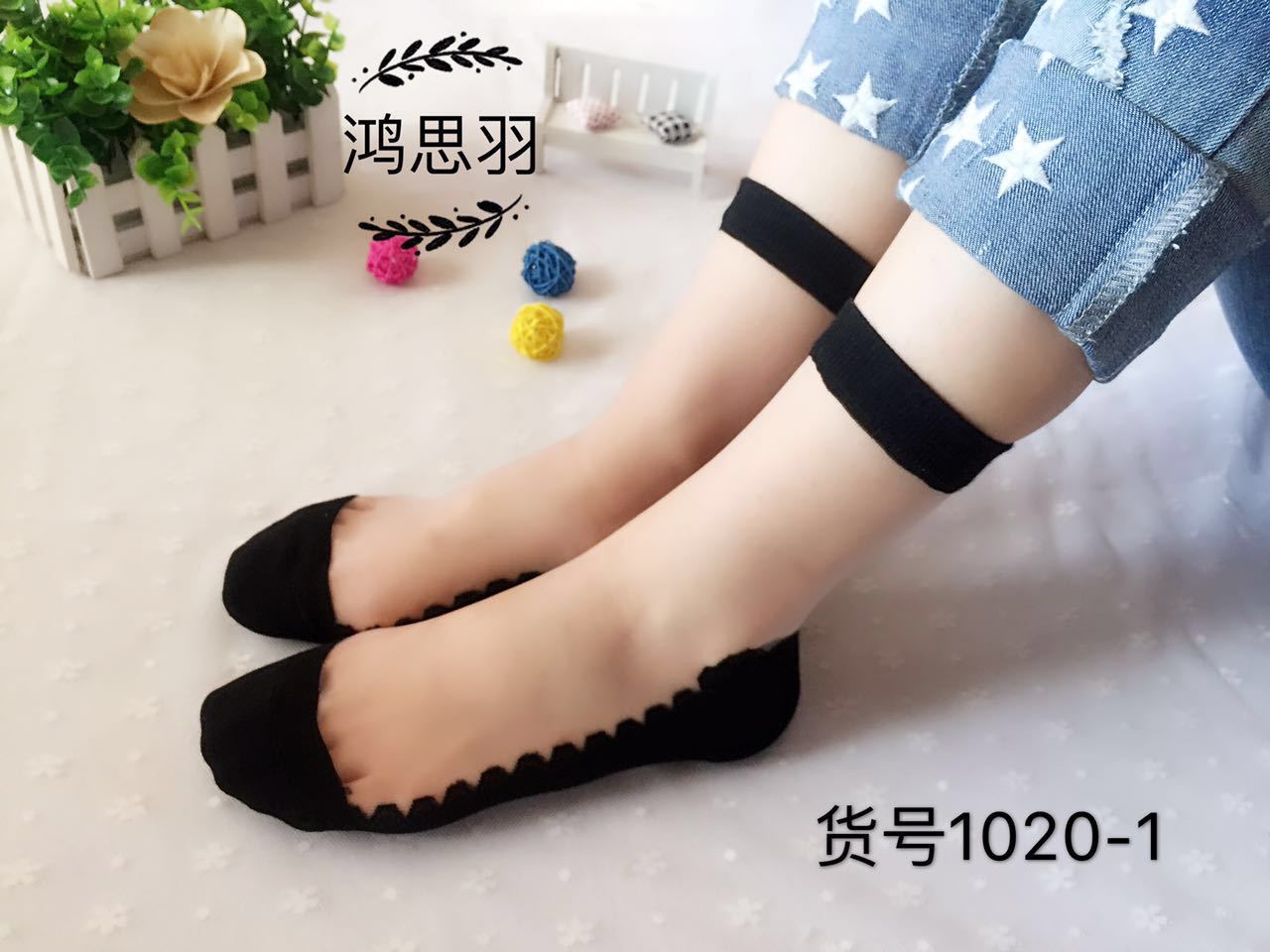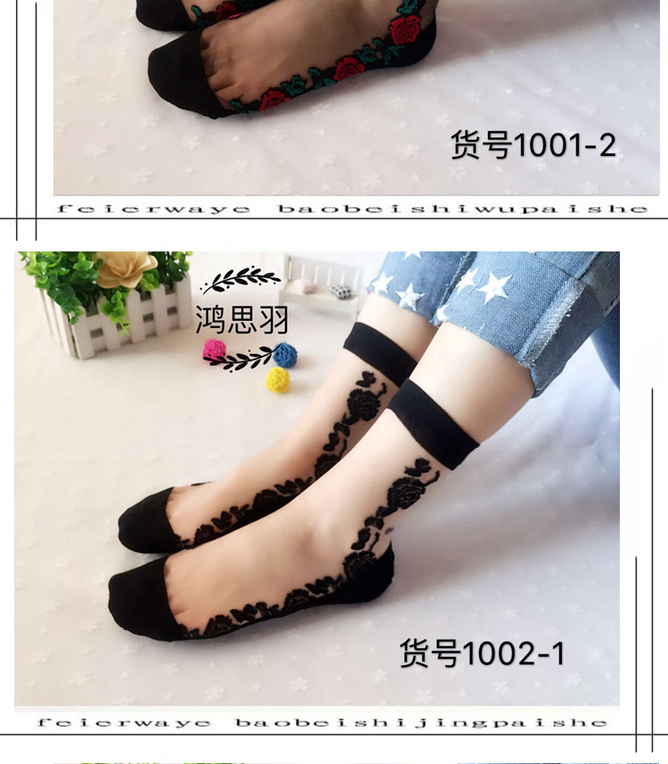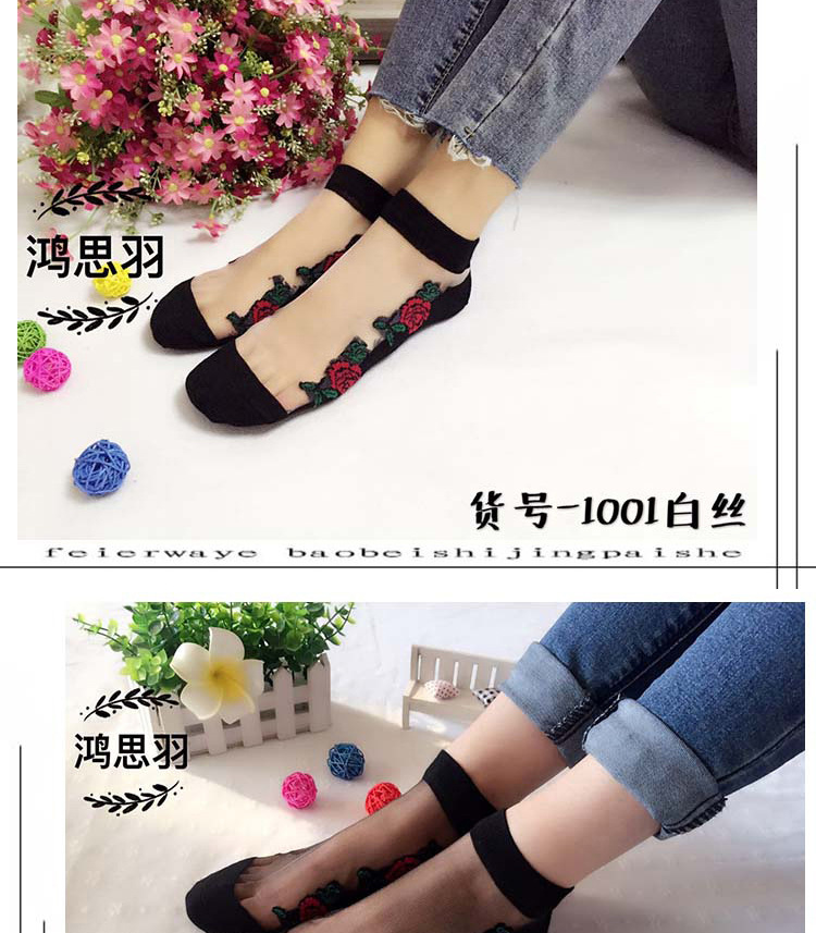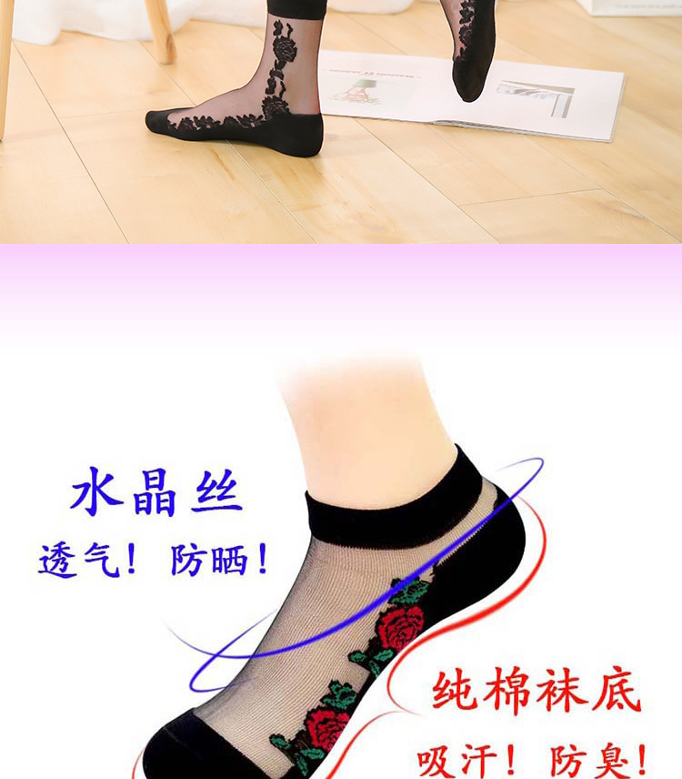 정품 보장 100% 순면 양말 밑창 여성용 Hongsiyu 유리 실크 중간 튜브 초박형 크리스탈 안티 걸림 대형 양말스토어 가기