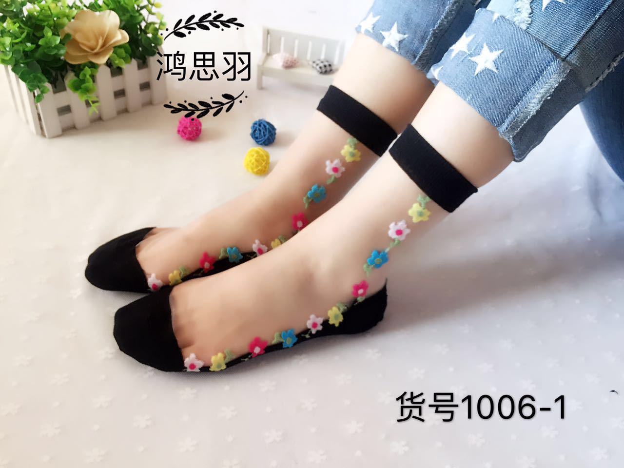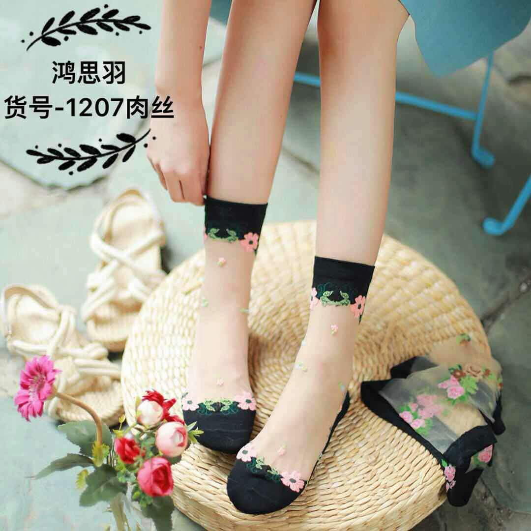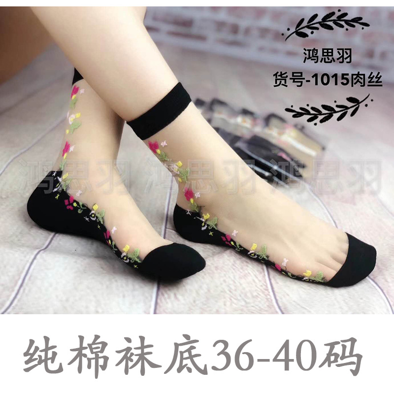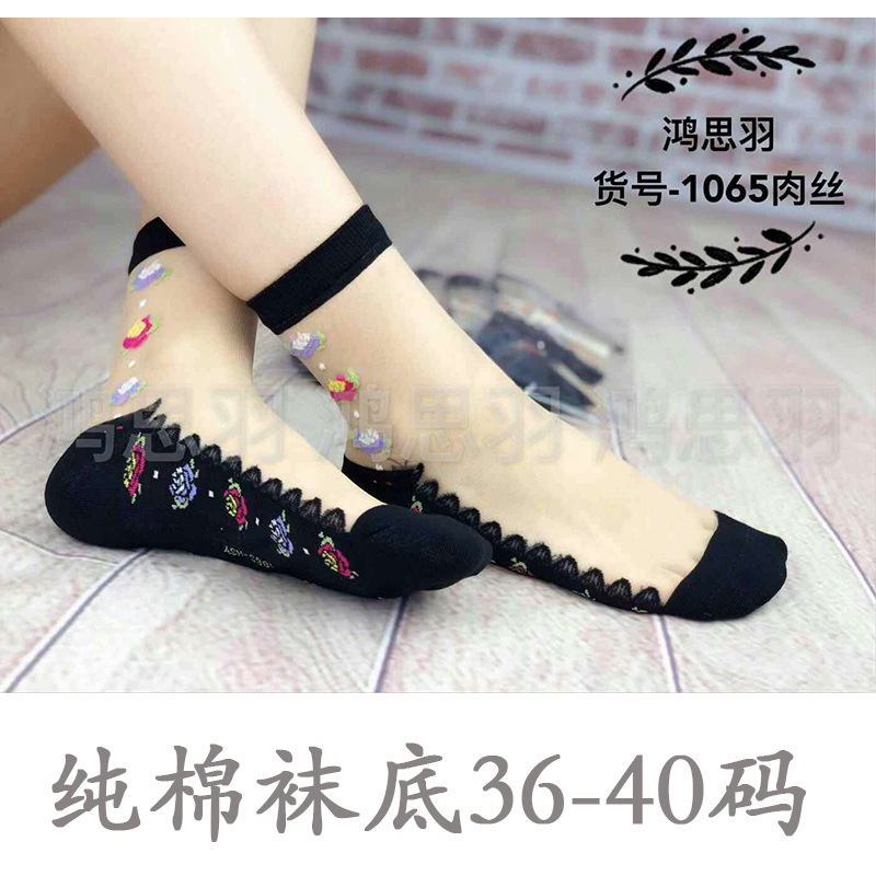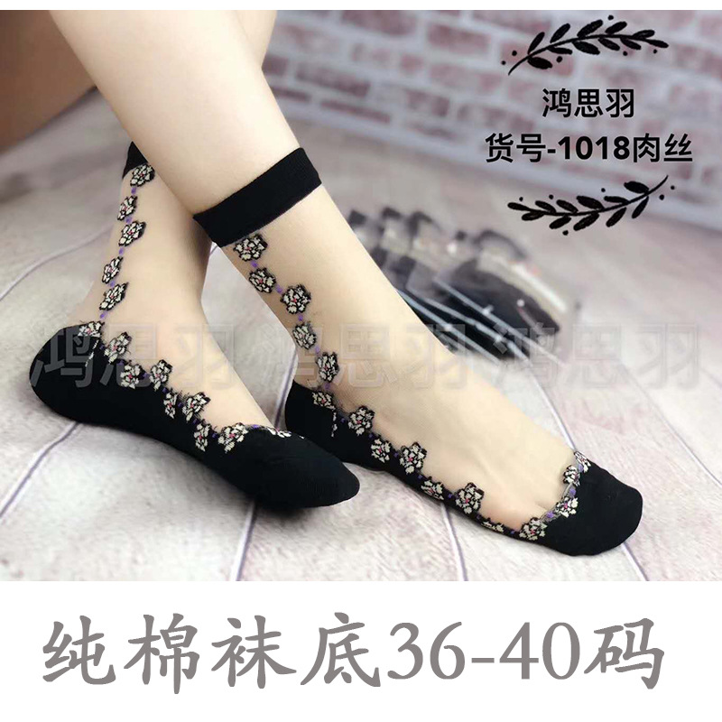 정품 보장 100% 순면 양말 밑창 여성용 Hongsiyu 유리 실크 중간 튜브 초박형 크리스탈 안티 걸림 대형 양말