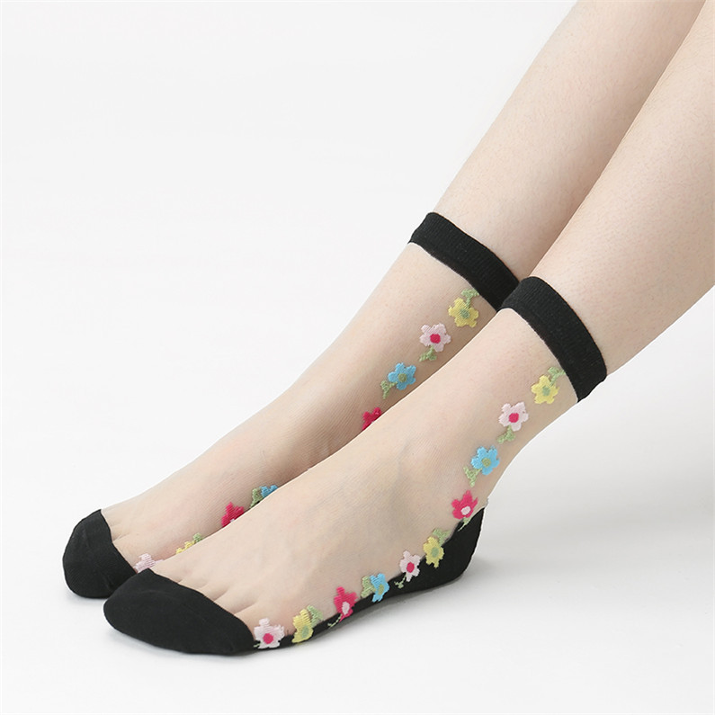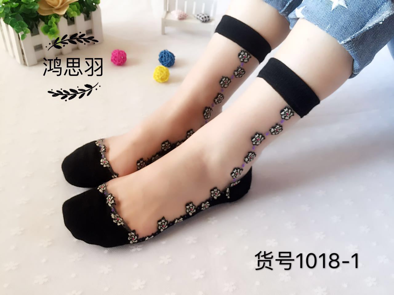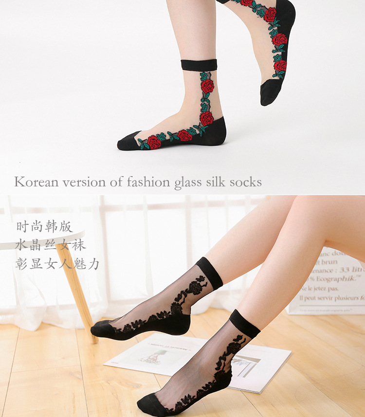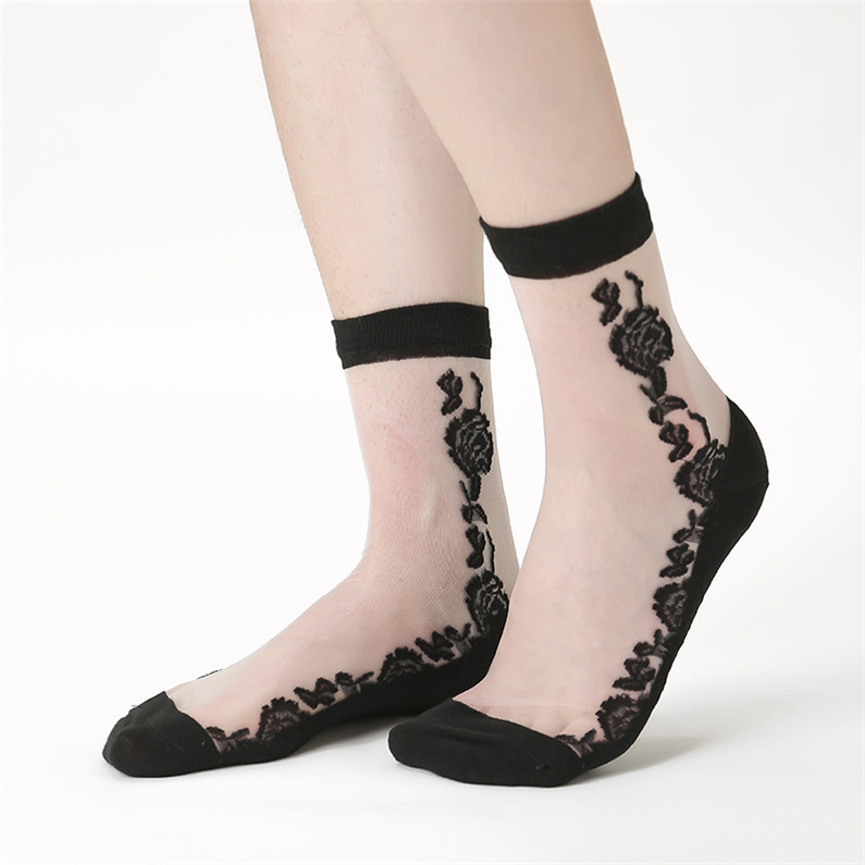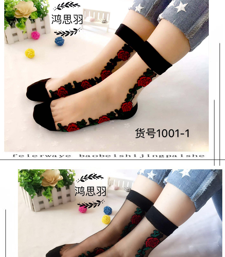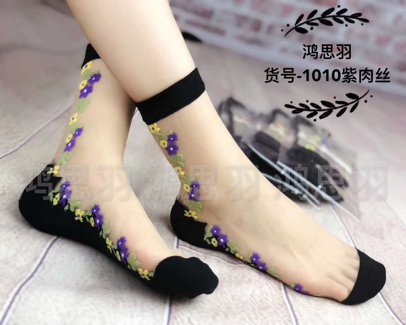 정품 보장 100% 순면 양말 밑창 여성용 Hongsiyu 유리 실크 중간 튜브 초박형 크리스탈 안티 걸림 대형 양말