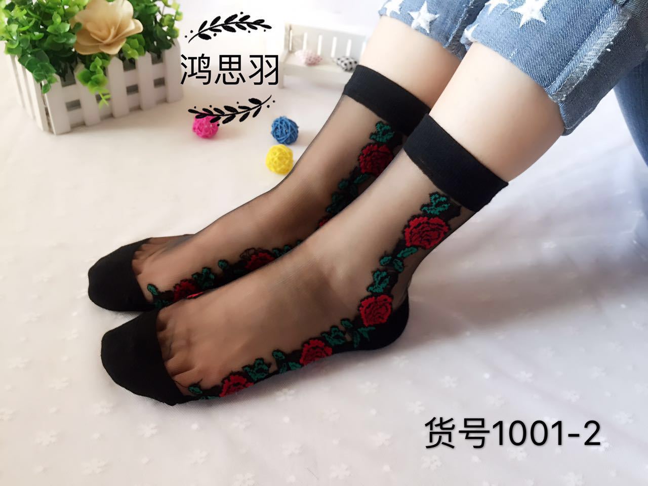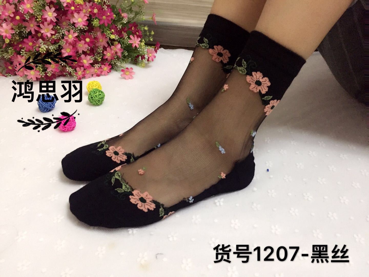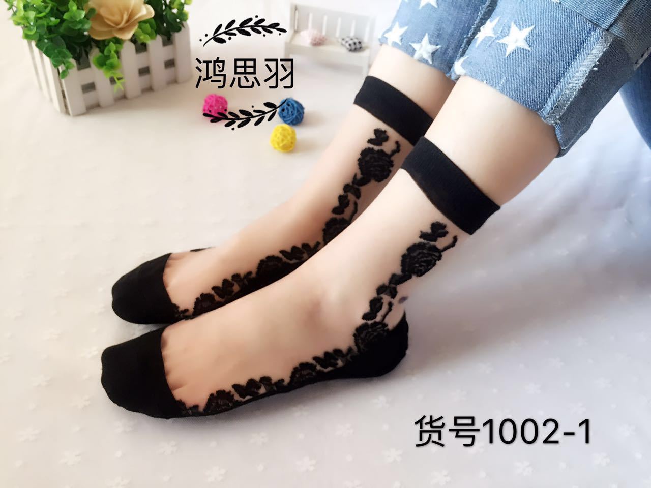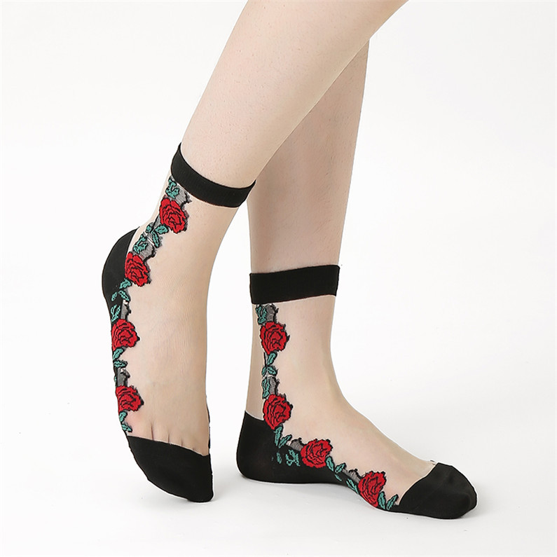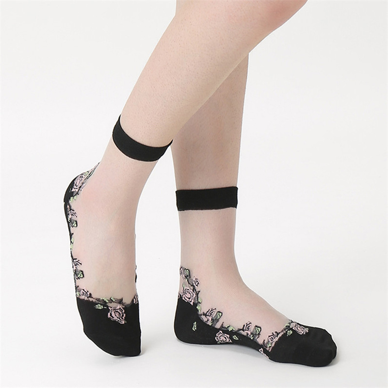 정품 보장 100% 순면 양말 밑창 여성용 Hongsiyu 유리 실크 중간 튜브 초박형 크리스탈 안티 걸림 대형 양말