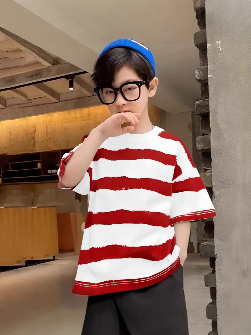 남학생 반팔 줄무늬 어린이 티셔츠 여름 얇은 순면 2025 유행 아동복 올매치 베이비여름복스토어 가기