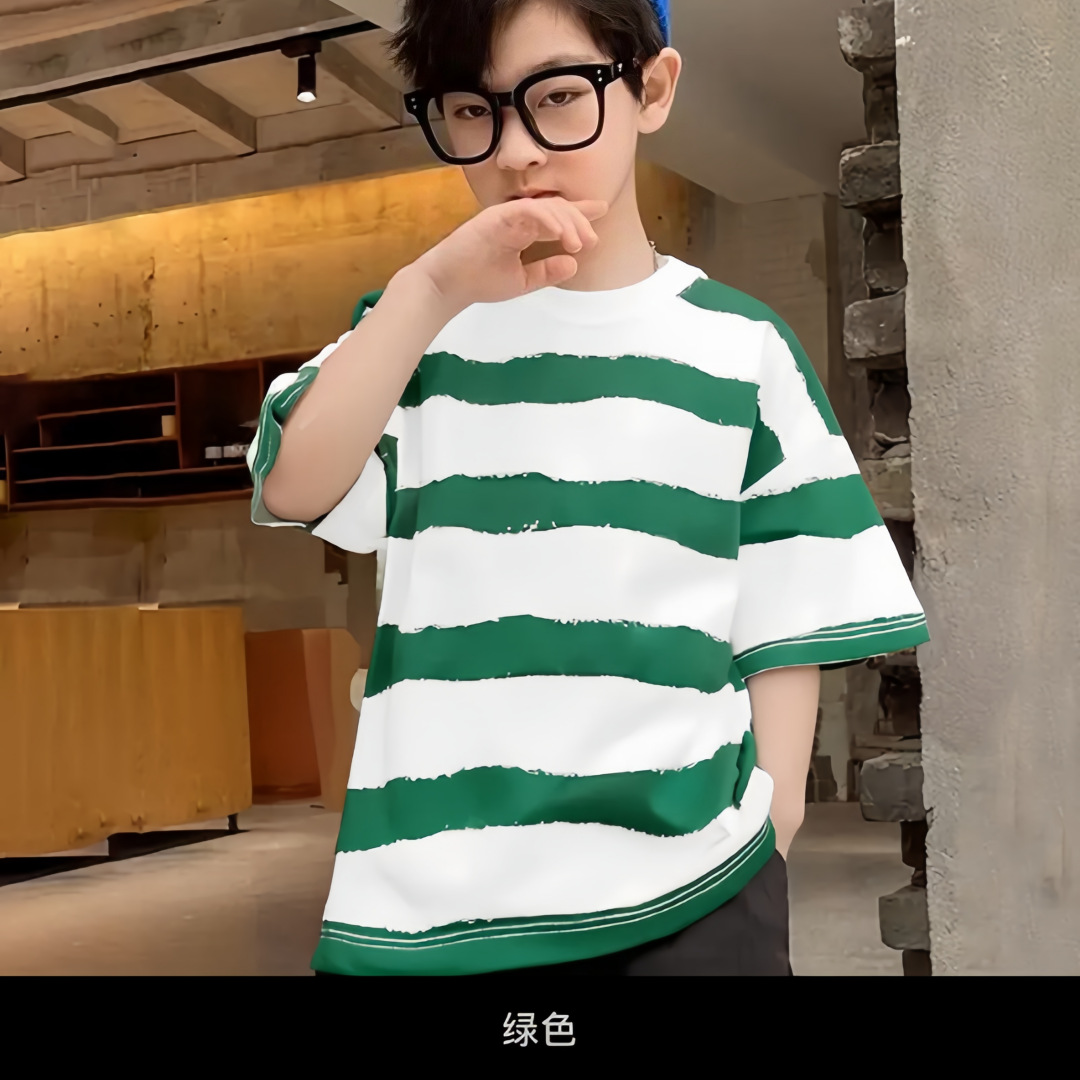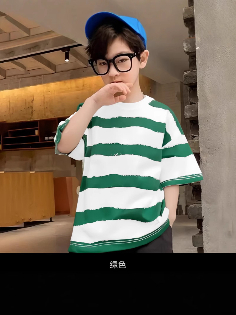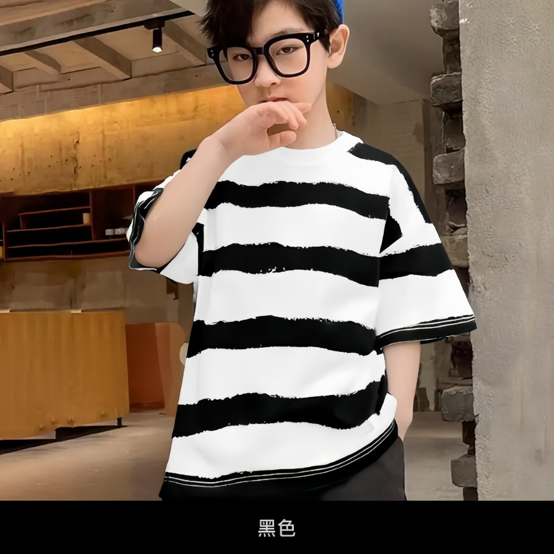남학생 반팔 줄무늬 어린이 티셔츠 여름 얇은 순면 2025 유행 아동복 올매치 베이비여름복