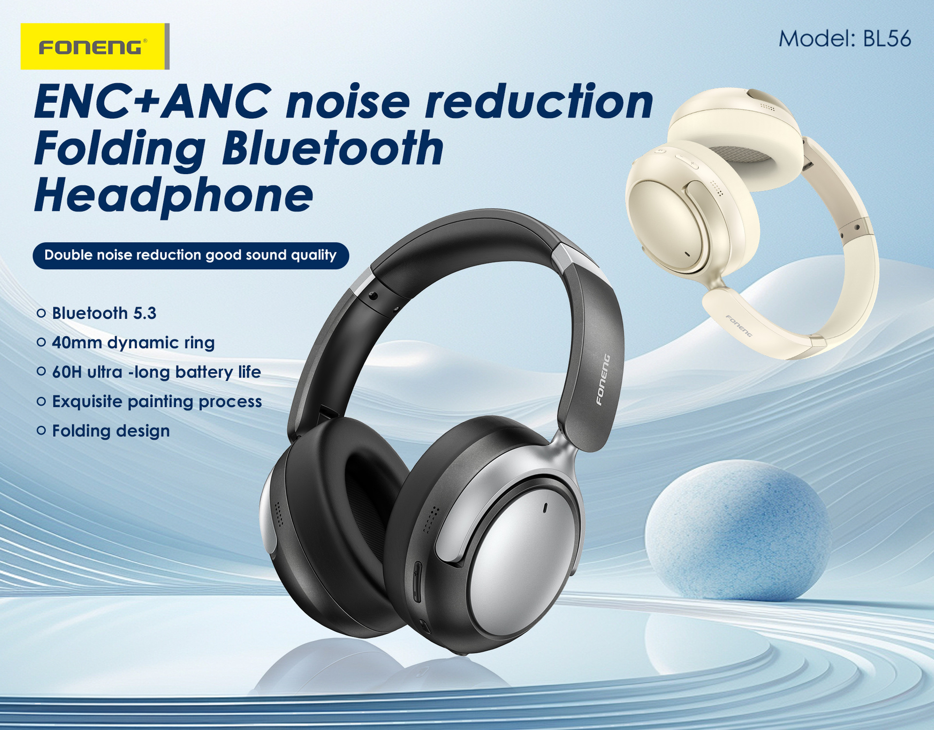 Fengneng BL56 헤드 장착형 이중 소음 감소 헤드셋 무선 Bluetooth 능동형 소음 감소 스포츠 게임 e-스포츠 음악