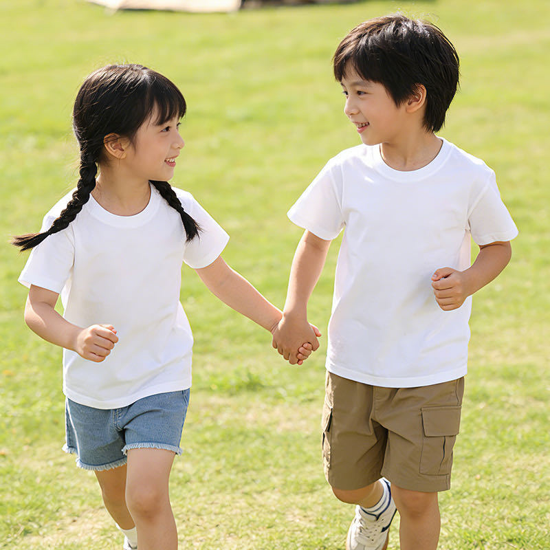 200g 순면 라운드넥 아동용 티셔츠 남녀공용 반팔 티셔츠 이너웨어 캐주얼 반팔 팀복
