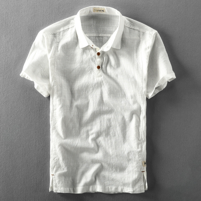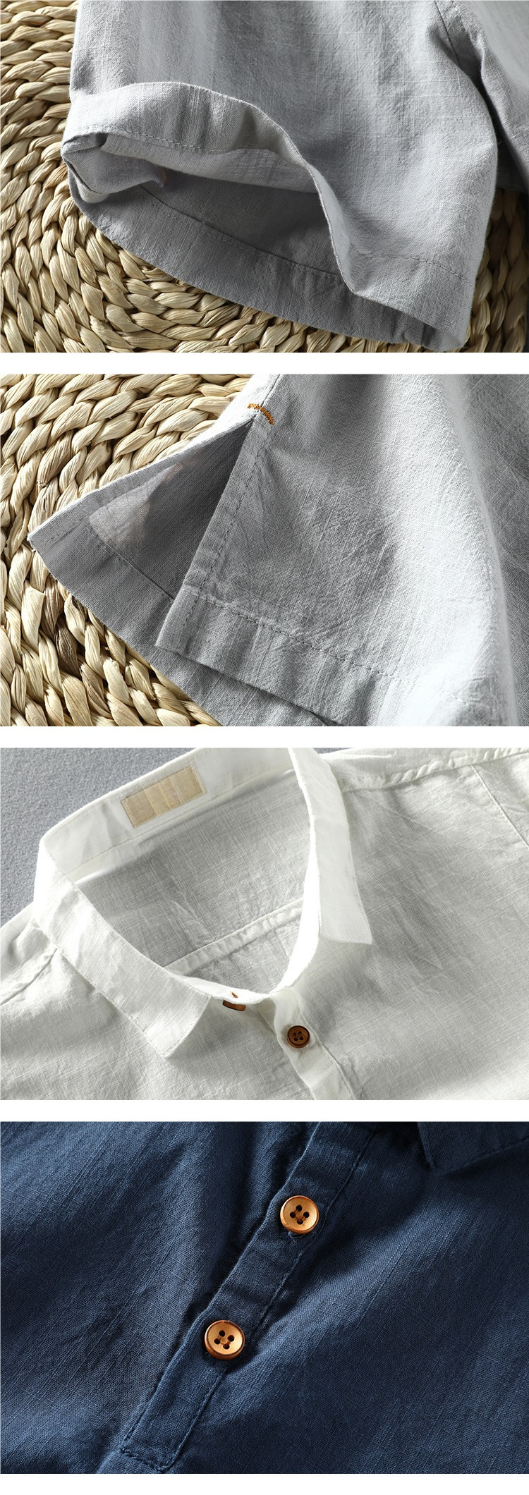 2024 여름 신작 남성 린넨 셔츠 얇은 루즈 라펠 반팔 캐주얼 코튼 린넨 셔츠-화이트 없음