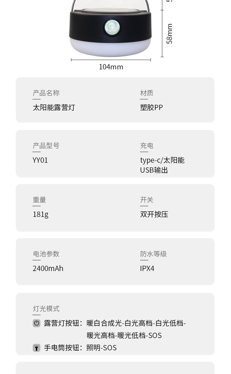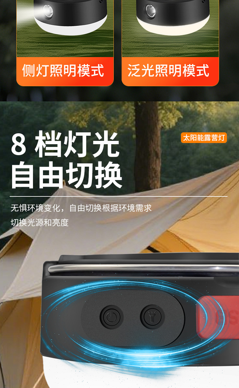 야외 조명, 태양광 캠핑 조명, 매우 긴 배터리 수명, 다기능 충전식 조명, 텐트 조명, 캠핑, 긴 배터리 수명, 휴대용스토어 가기