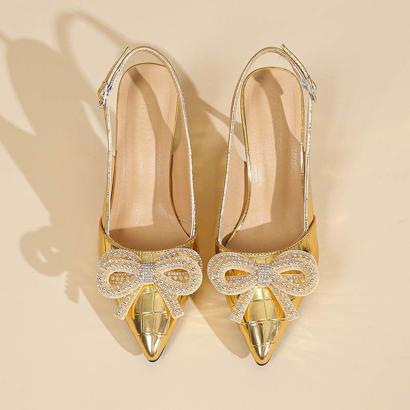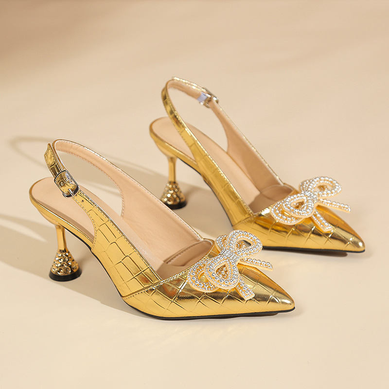 2025 여름 새로운 스타일 스틸레토 포인티드 토 패션 바오터우 여성 샌들 보우 하이힐 패션 여성 신발