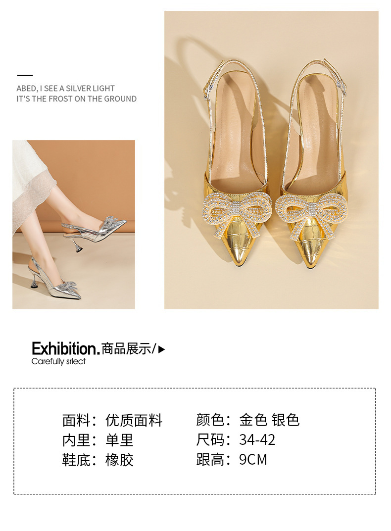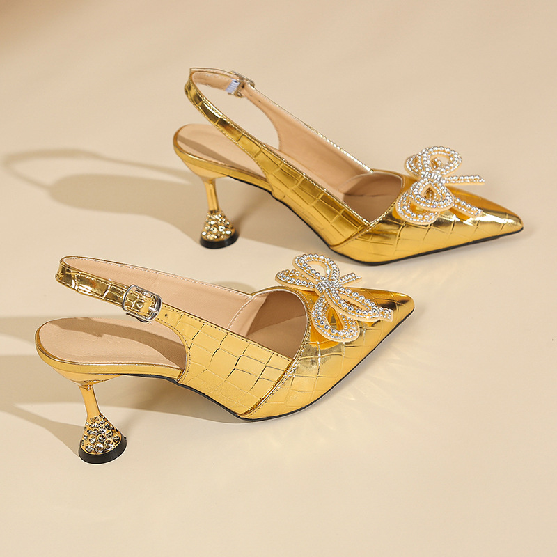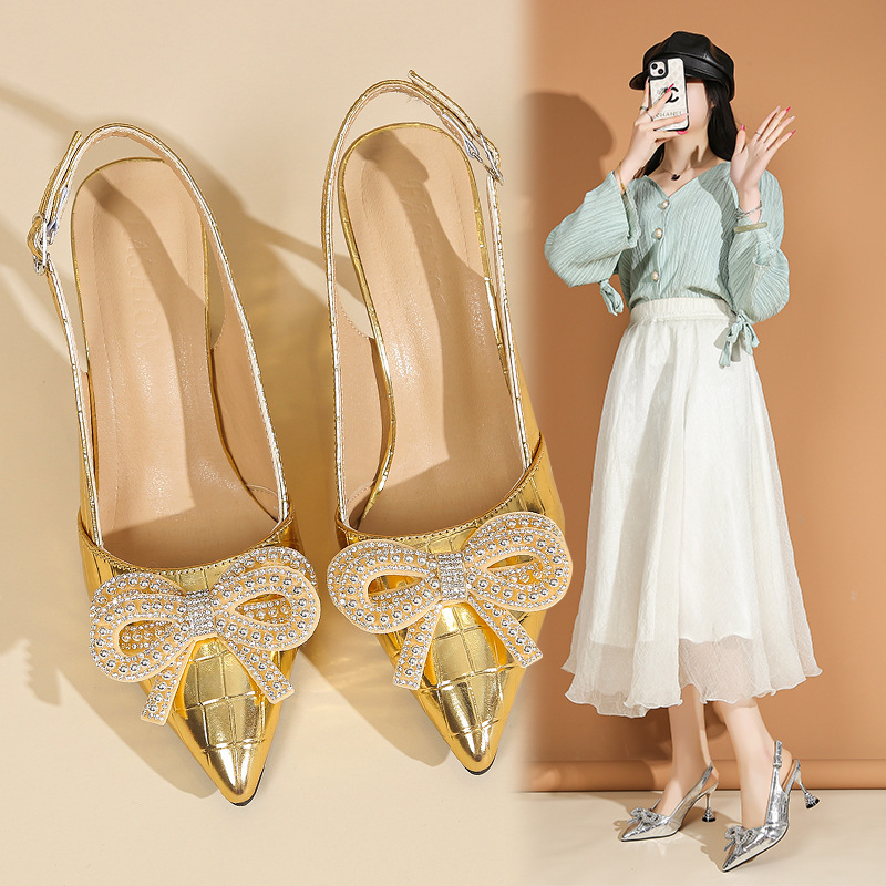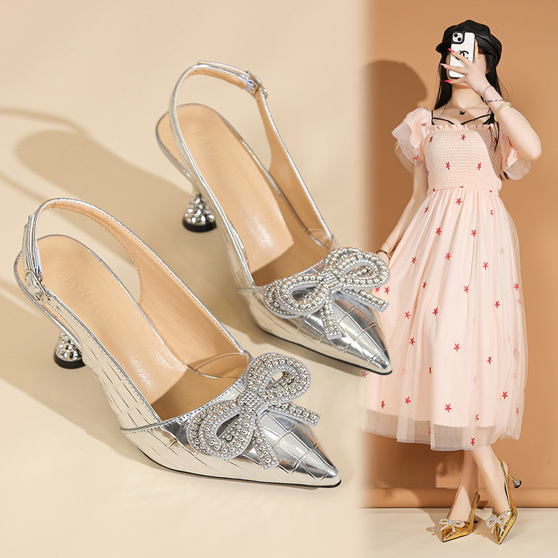 2025 여름 새로운 스타일 스틸레토 포인티드 토 패션 바오터우 여성 샌들 보우 하이힐 패션 여성 신발스토어 가기