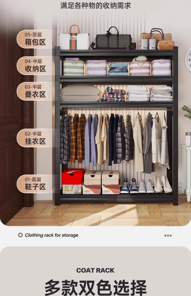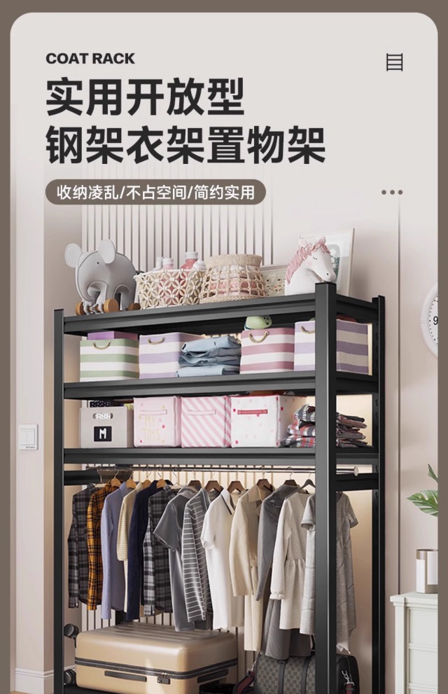 가정용 코트 랙 바닥에서 천장까지 다층 개방형 옷걸이 침실 임대 간단한 옷장 다기능 옷걸이스토어 가기