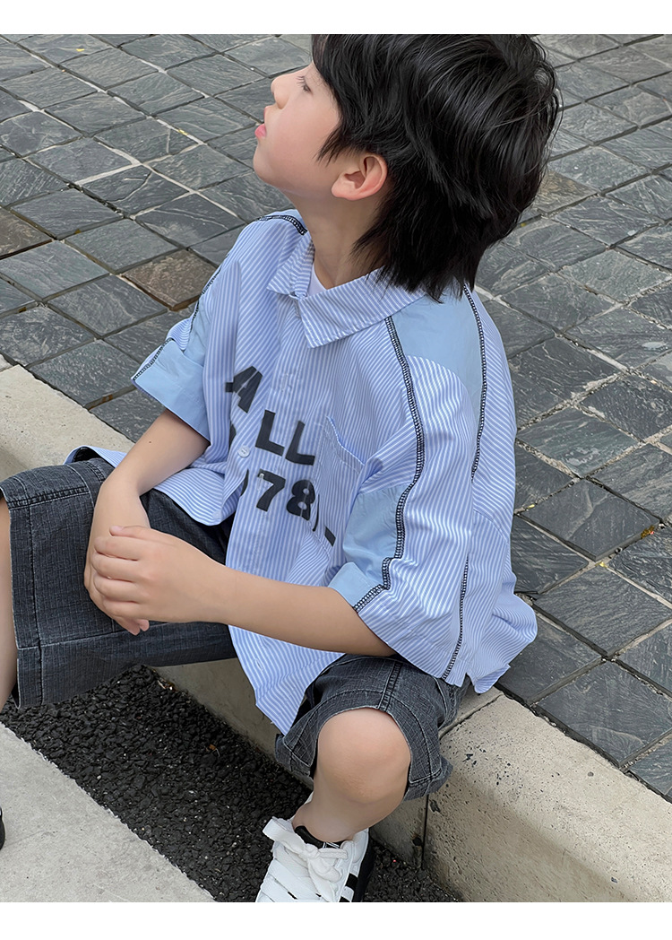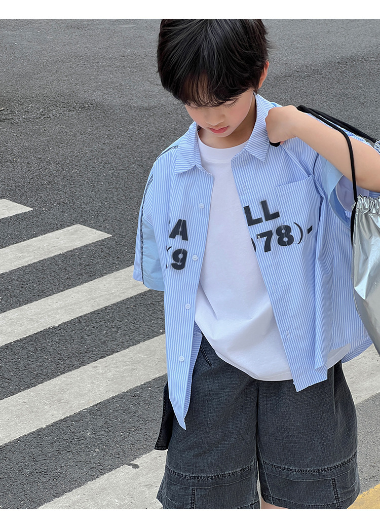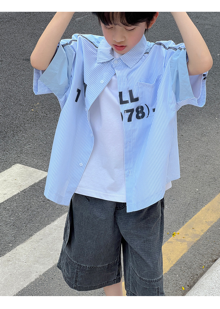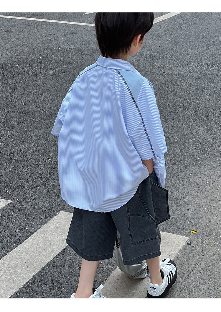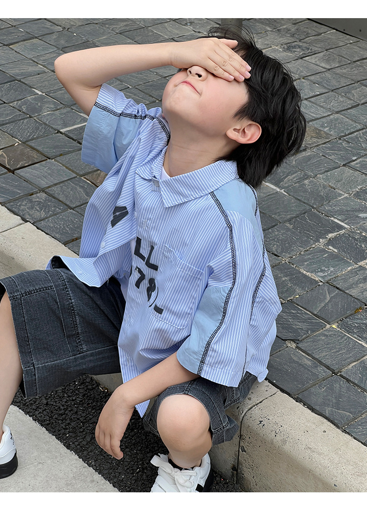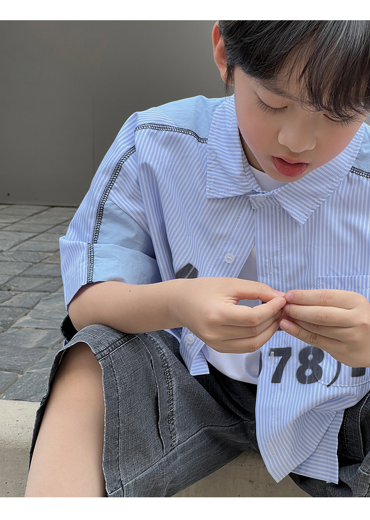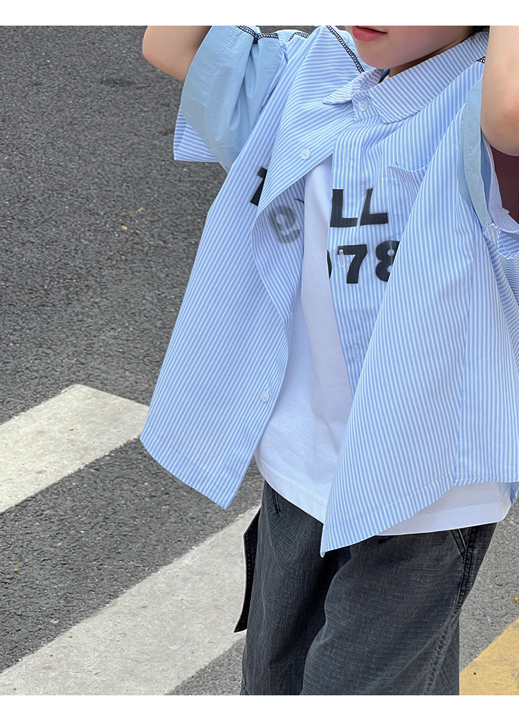 여름 셔츠 2026 신상 아동 여름 반팔 셔츠 아기 스트라이프 한국 스타일 트렌디 캐주얼 셔츠스토어 가기