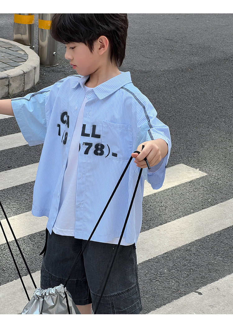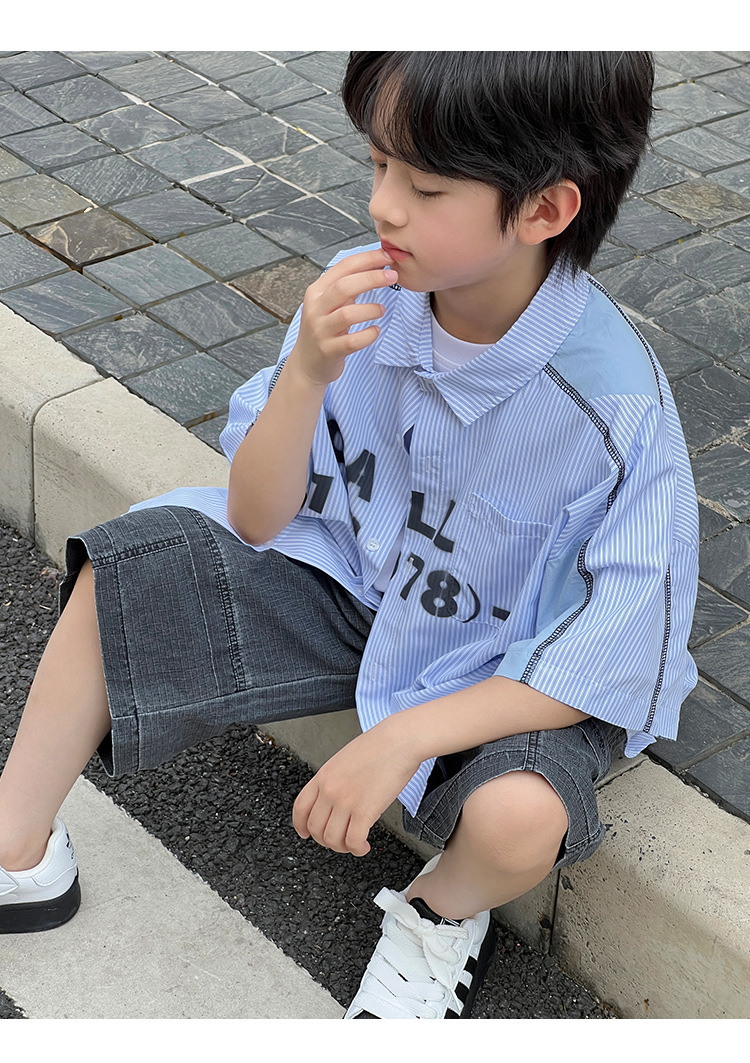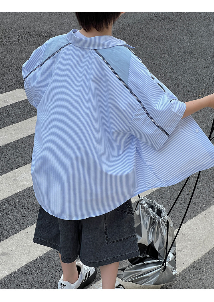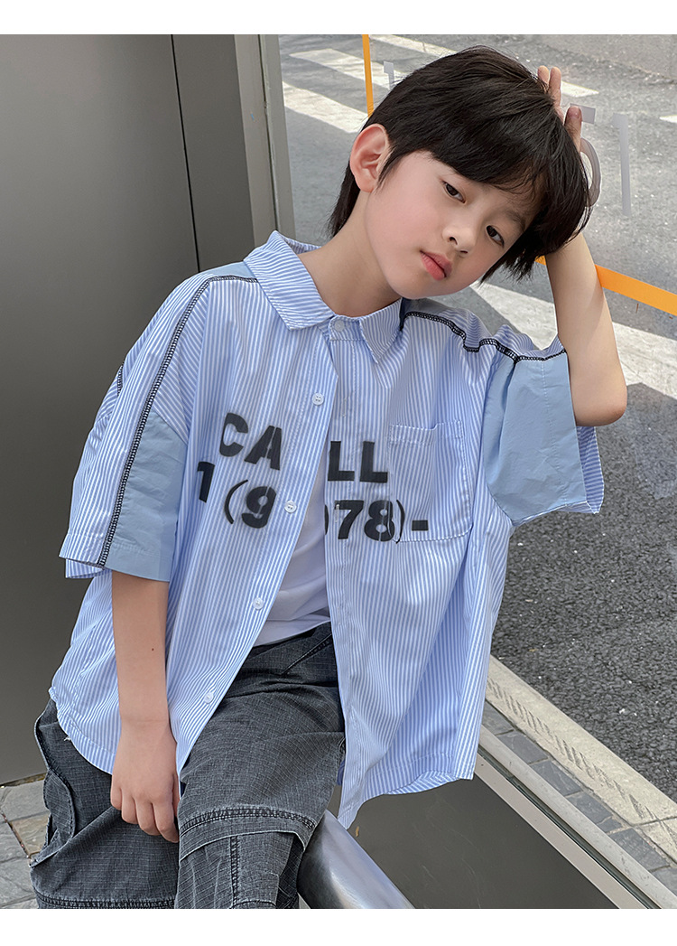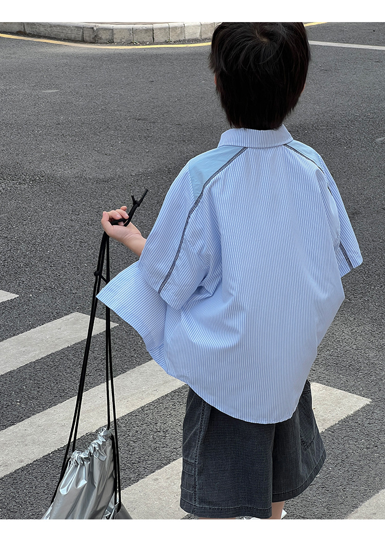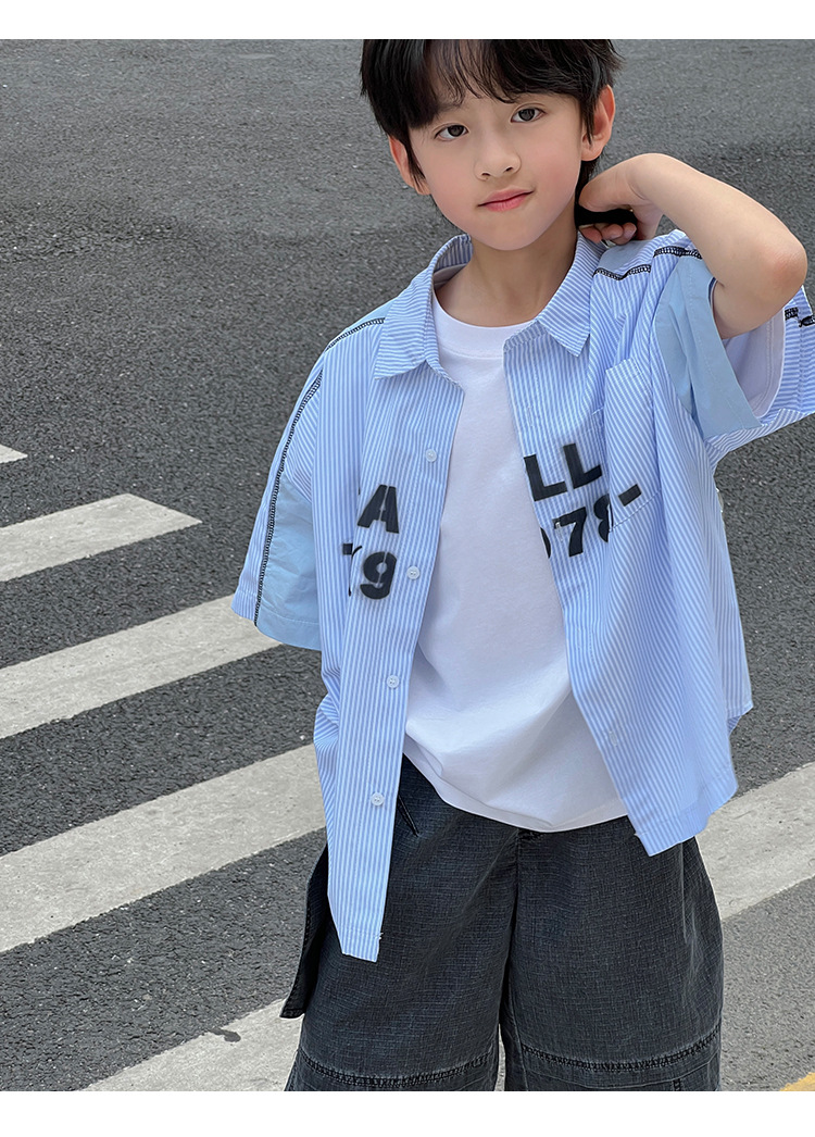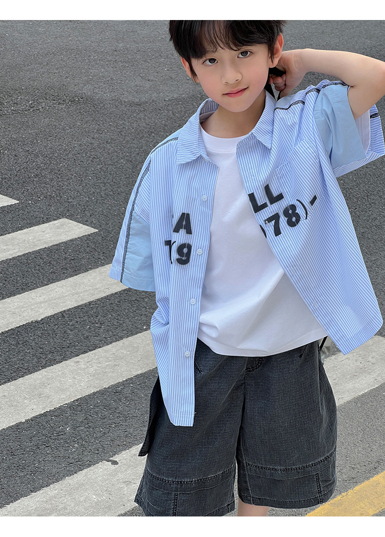 여름 셔츠 2026 신상 아동 여름 반팔 셔츠 아기 스트라이프 한국 스타일 트렌디 캐주얼 셔츠스토어 가기