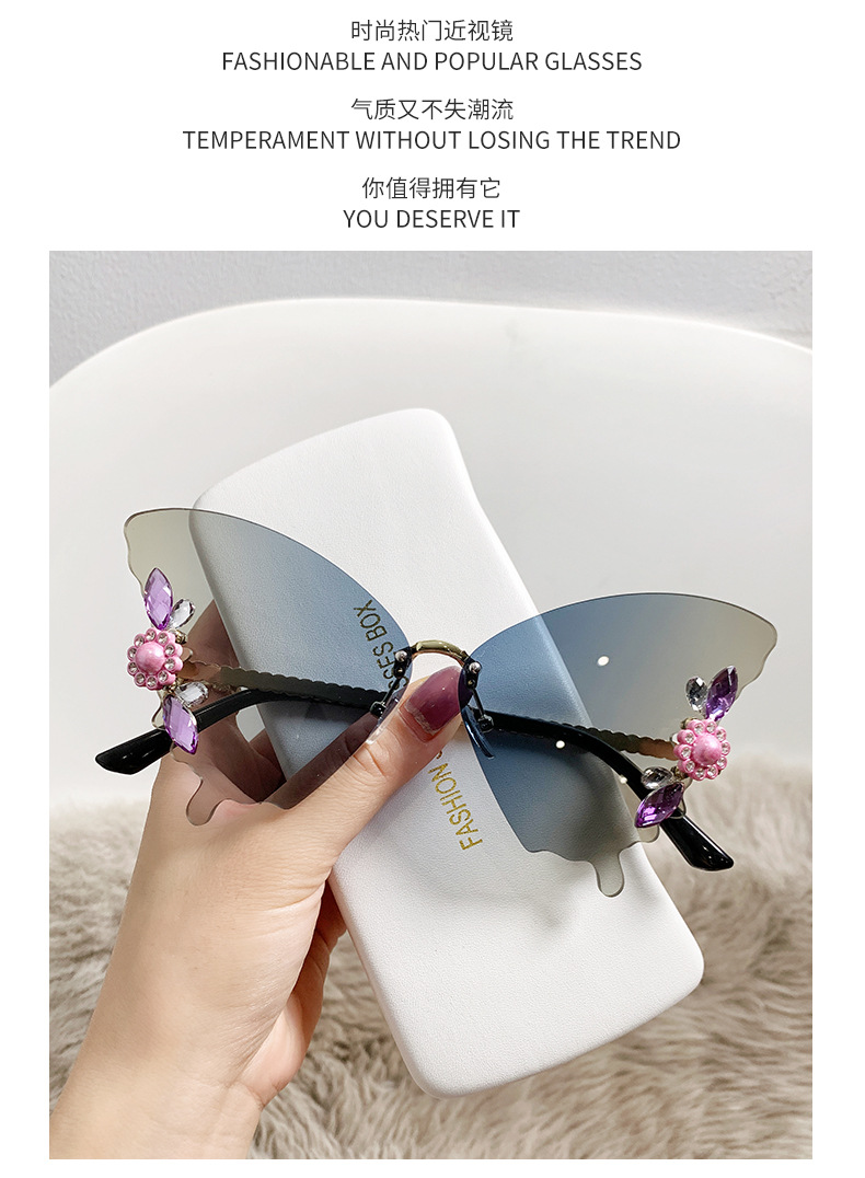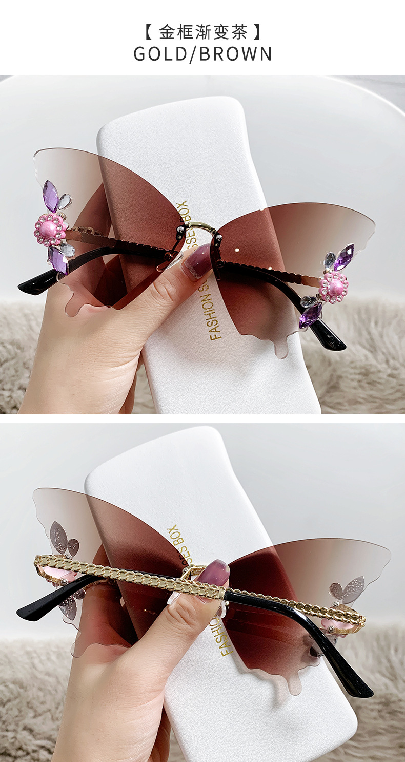 국경을 넘는 선글라스, 프레임리스 엣지 컷, 패셔너블한 나비 스타일, 그라데이션 선글라스, 인터넷 연예인 같은 스타일의 선글라스, 헤비 다이아몬드스토어 가기