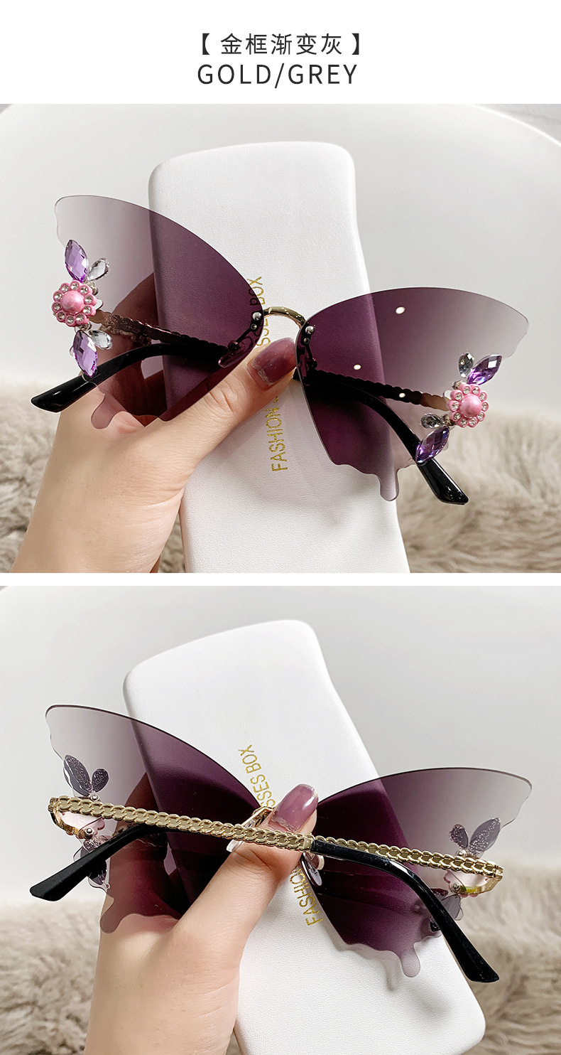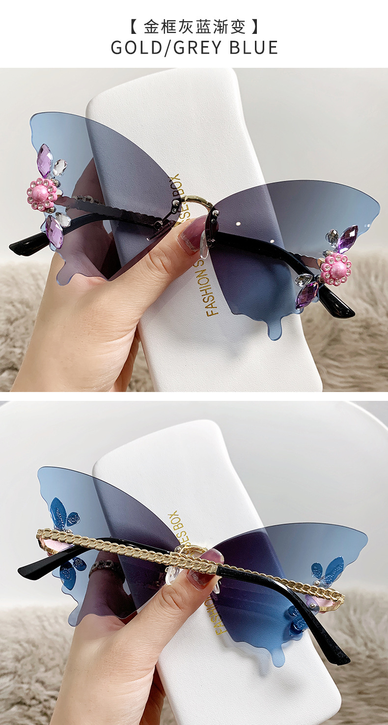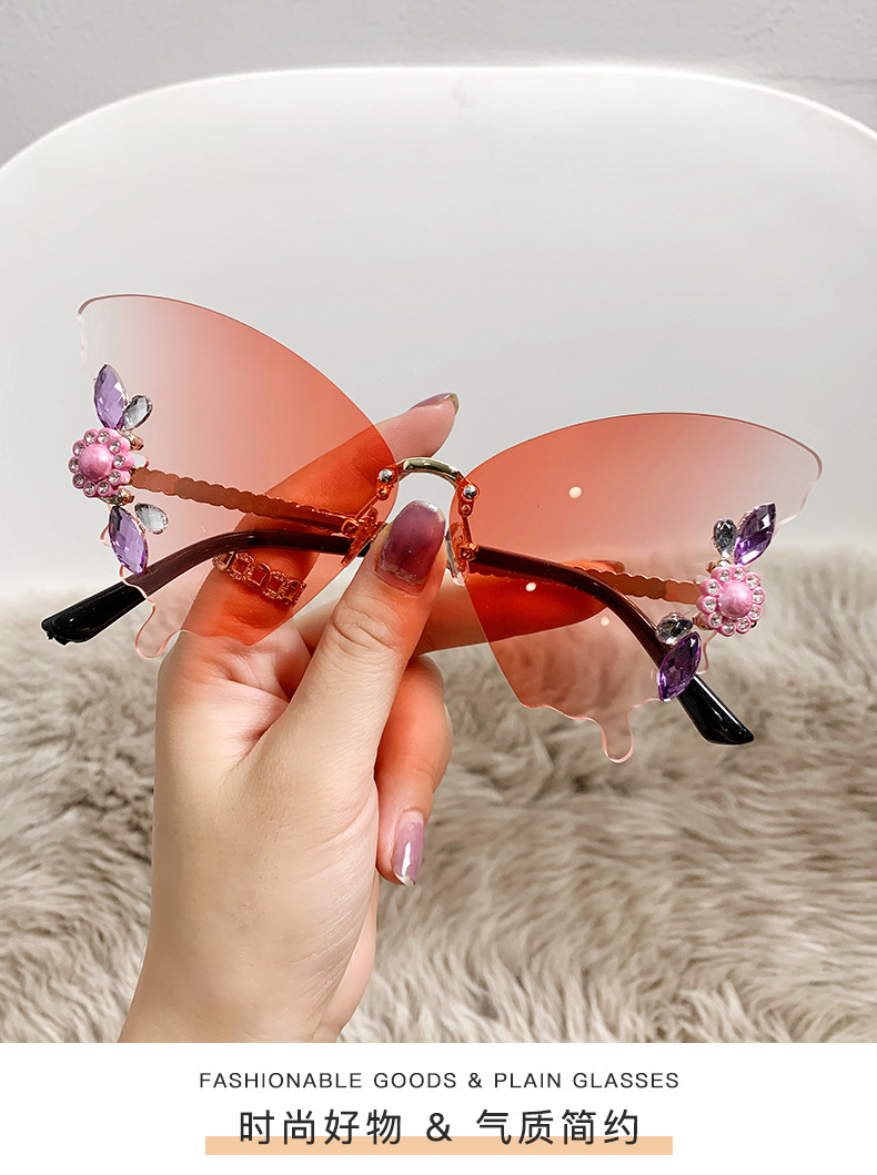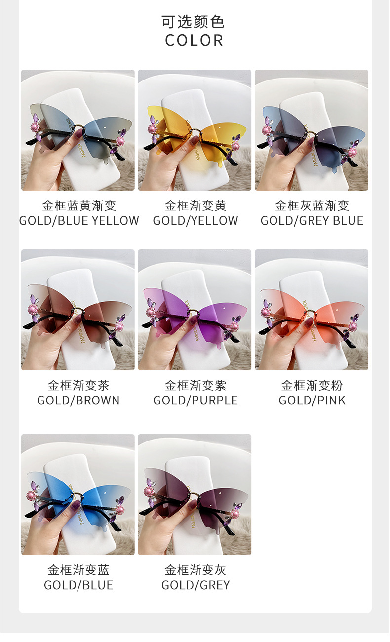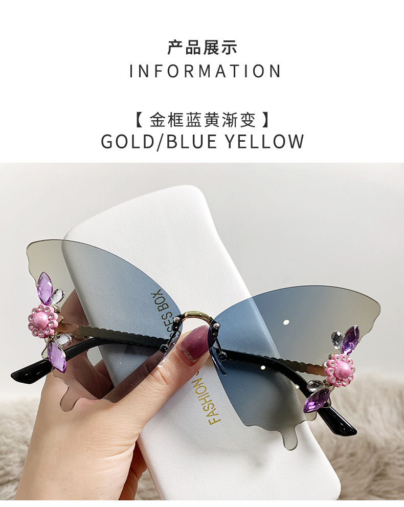 국경을 넘는 선글라스, 프레임리스 엣지 컷, 패셔너블한 나비 스타일, 그라데이션 선글라스, 인터넷 연예인 같은 스타일의 선글라스, 헤비 다이아몬드