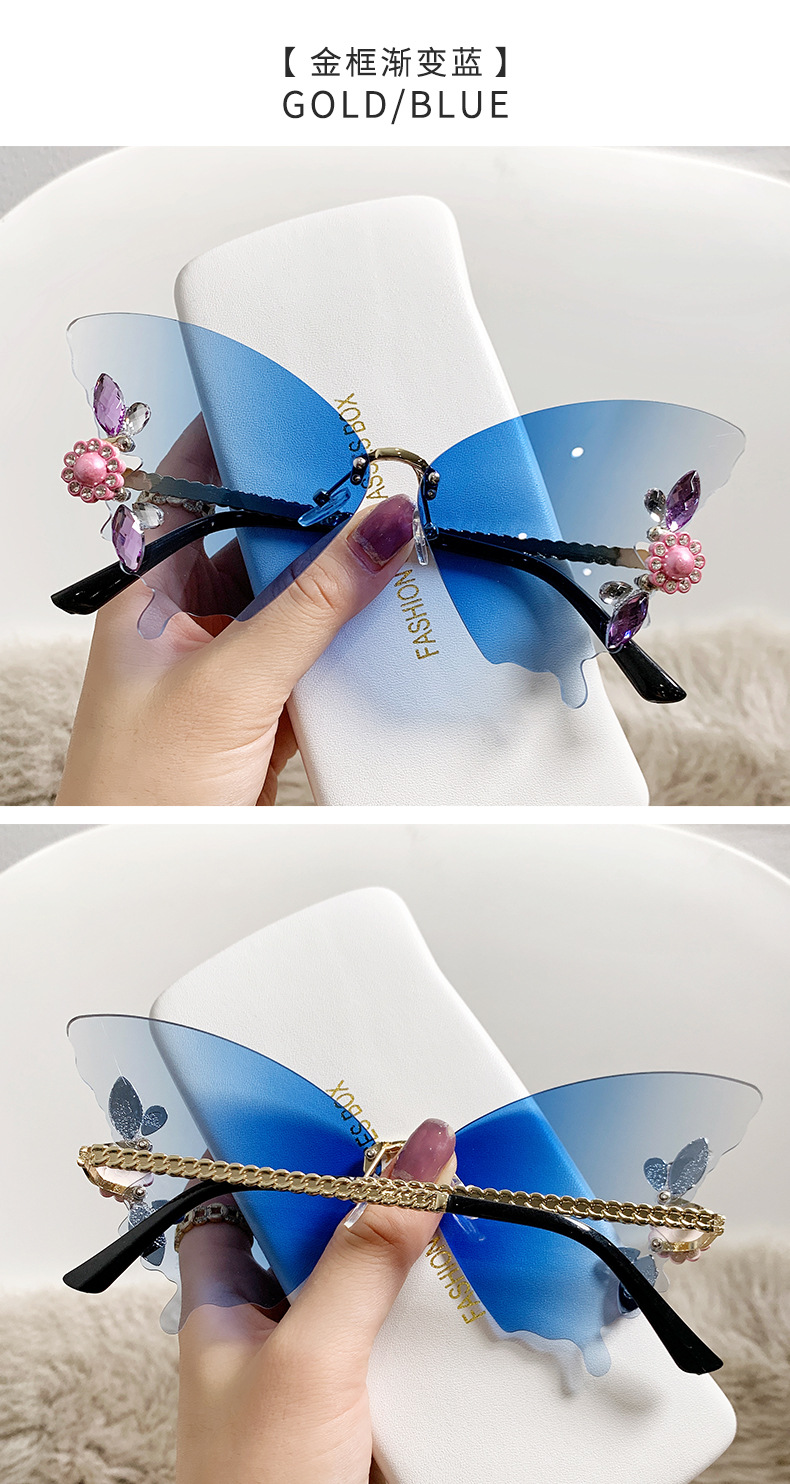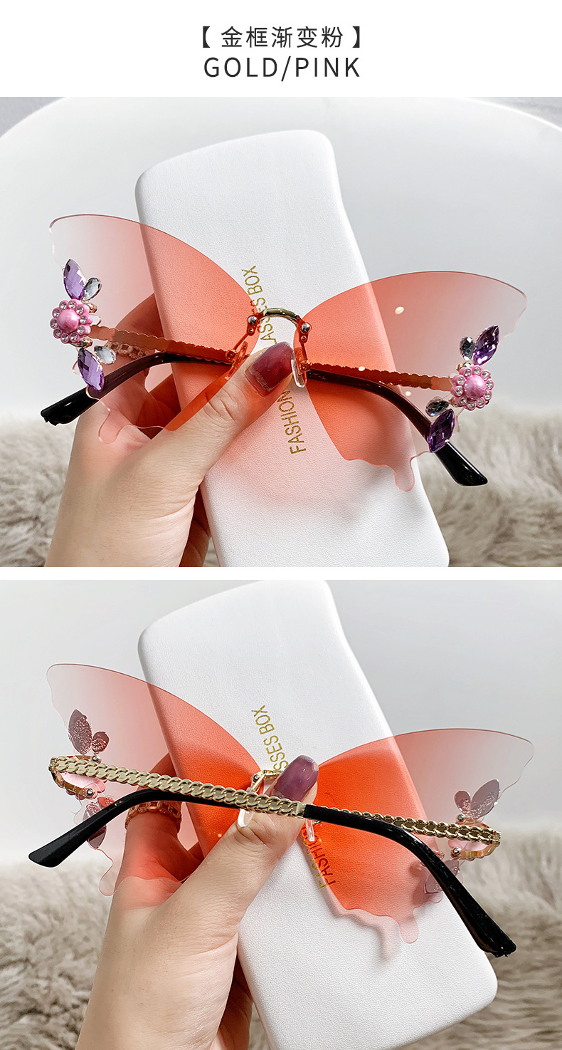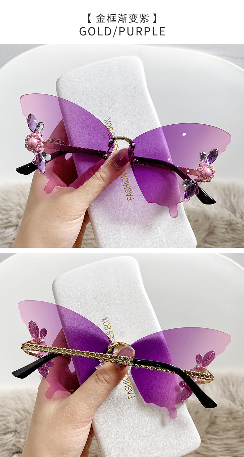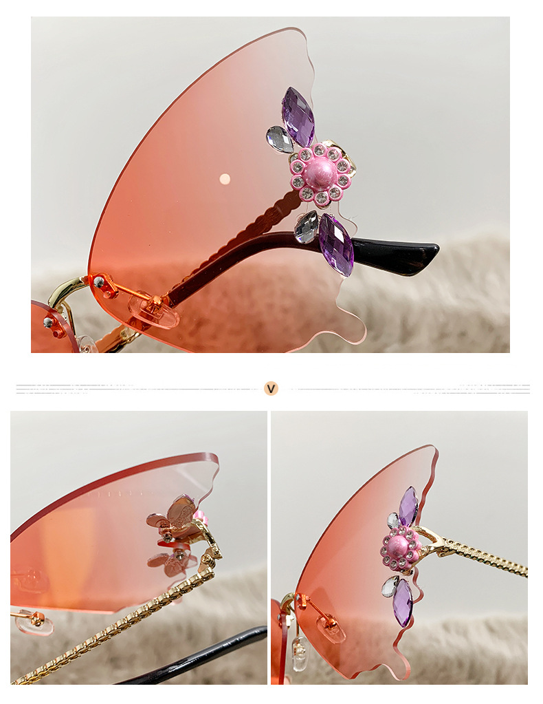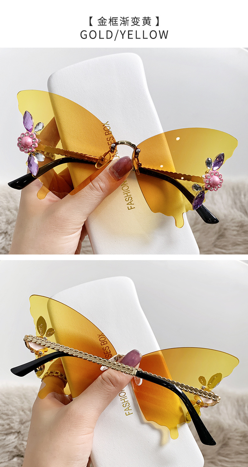 국경을 넘는 선글라스, 프레임리스 엣지 컷, 패셔너블한 나비 스타일, 그라데이션 선글라스, 인터넷 연예인 같은 스타일의 선글라스, 헤비 다이아몬드