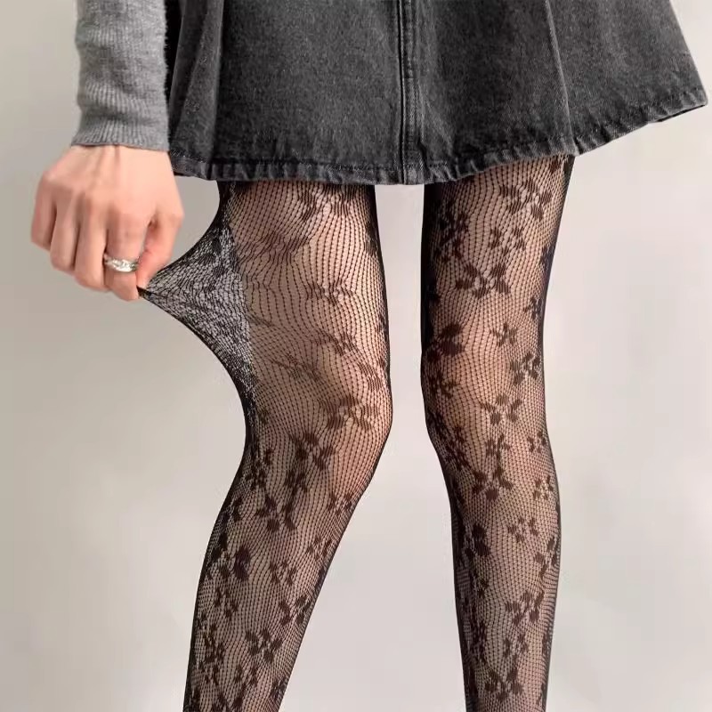 여성용 갈색 스타킹 봄, 가을 로리타 안티 후크 스타킹 여성용 레이스 작은 꽃 흰색 스타킹 섹시한 뜨거운 소녀 양말스토어 가기