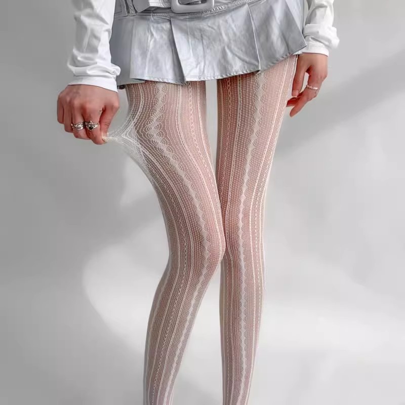 여성용 갈색 스타킹 봄, 가을 로리타 안티 후크 스타킹 여성용 레이스 작은 꽃 흰색 스타킹 섹시한 뜨거운 소녀 양말