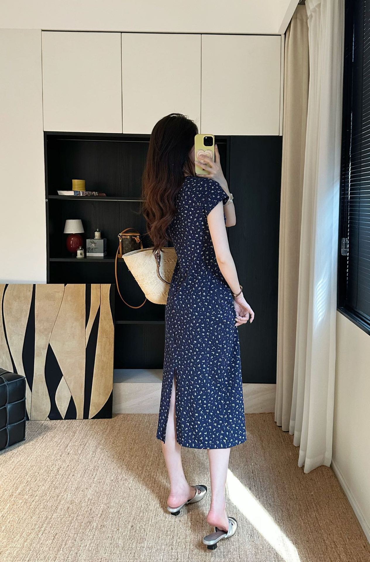 裙摆后开叉设计别具一格,行走间若隐若现地露出腿部线条